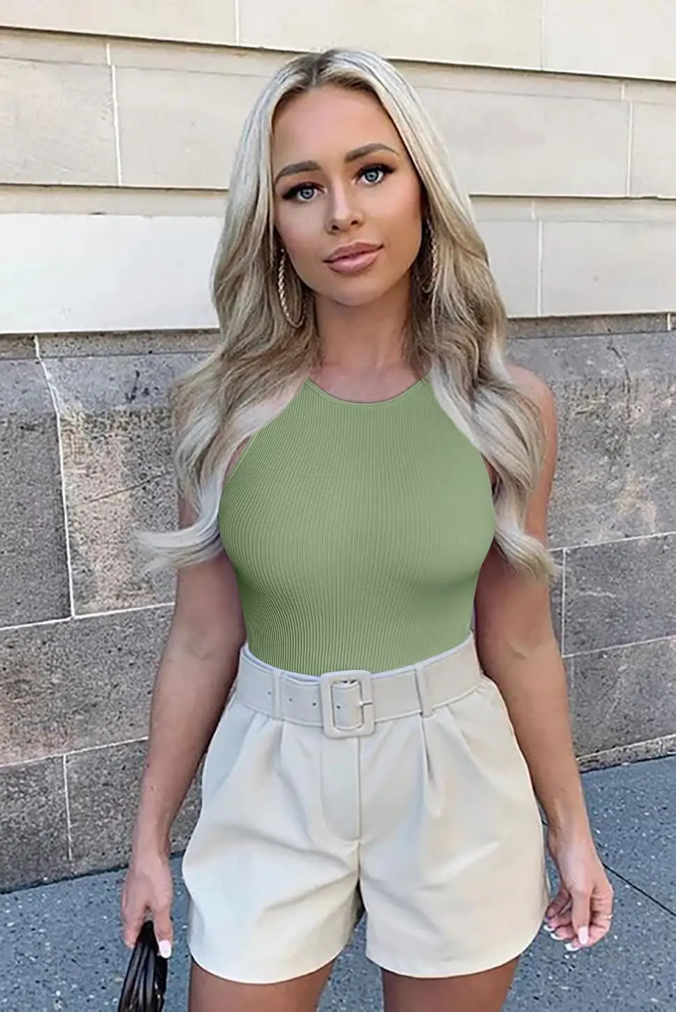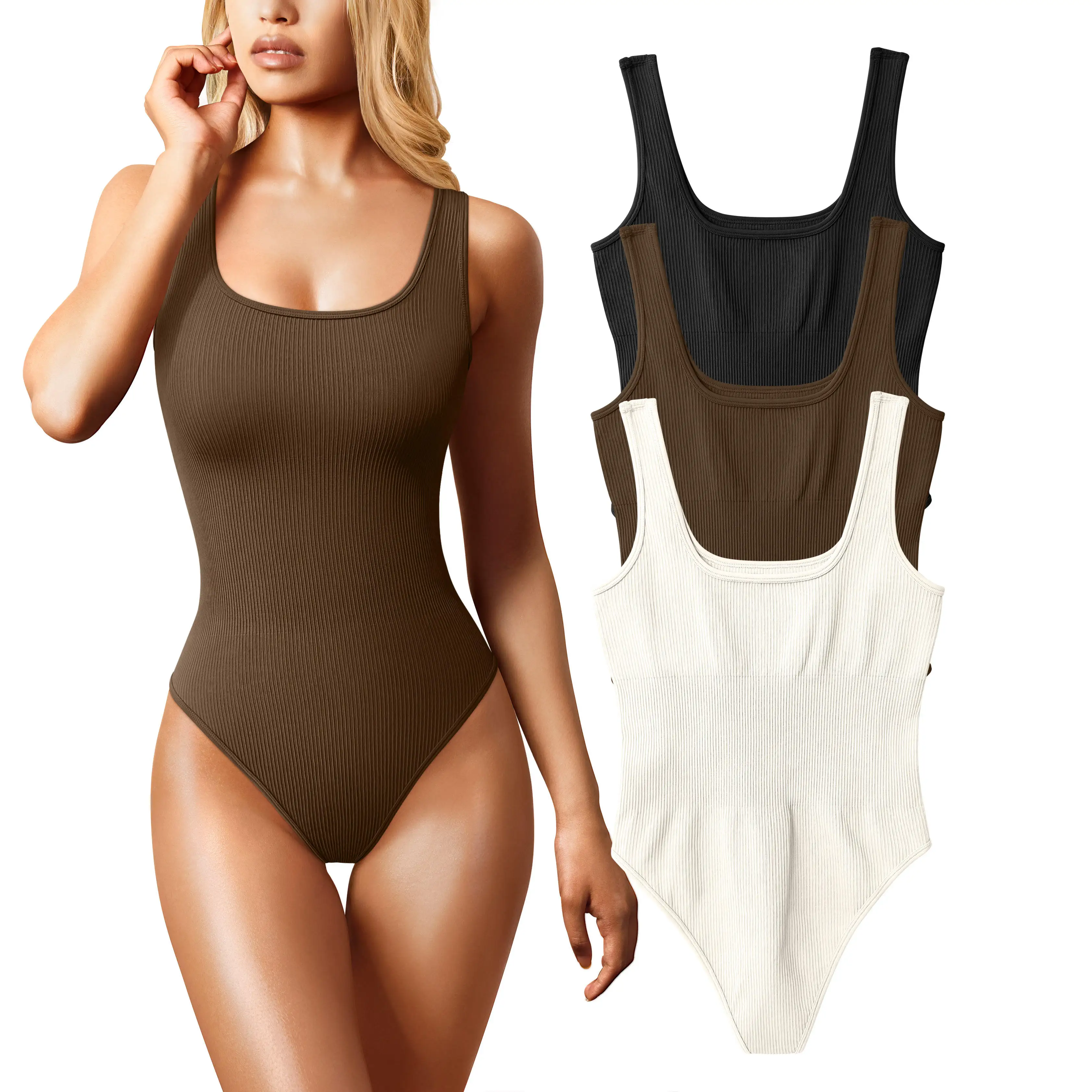 Hot Sale Women's Sexy Ribbed Sleeveless Sports Bodysuits Tight Fitting Yoga Jumpsuits Breathable Four-Way Stretch Lightweight