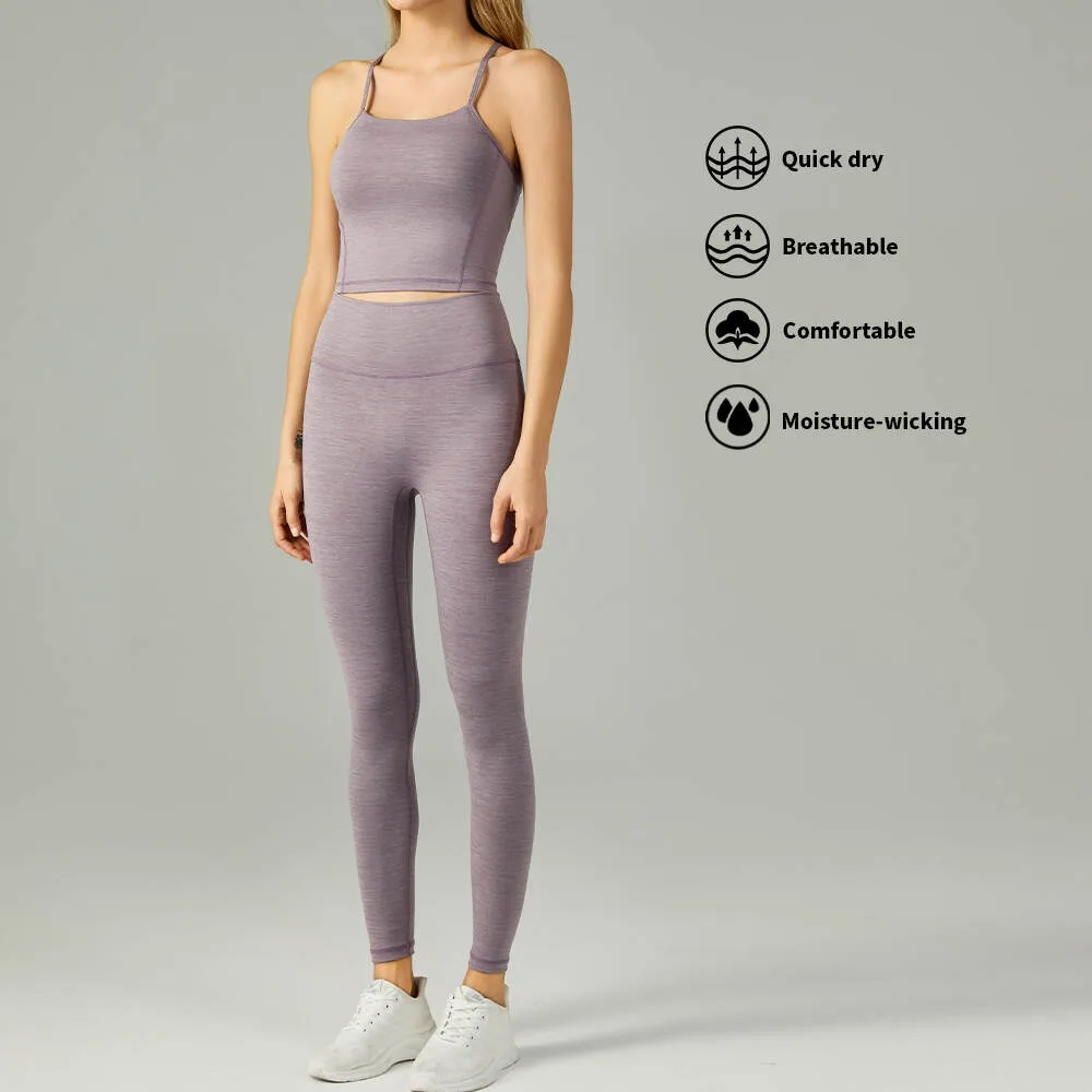 Hot Selling Factory Custom Logo Yogawear Set Sexy Sports Bra with Front Logo and Leggings Solid Pattern