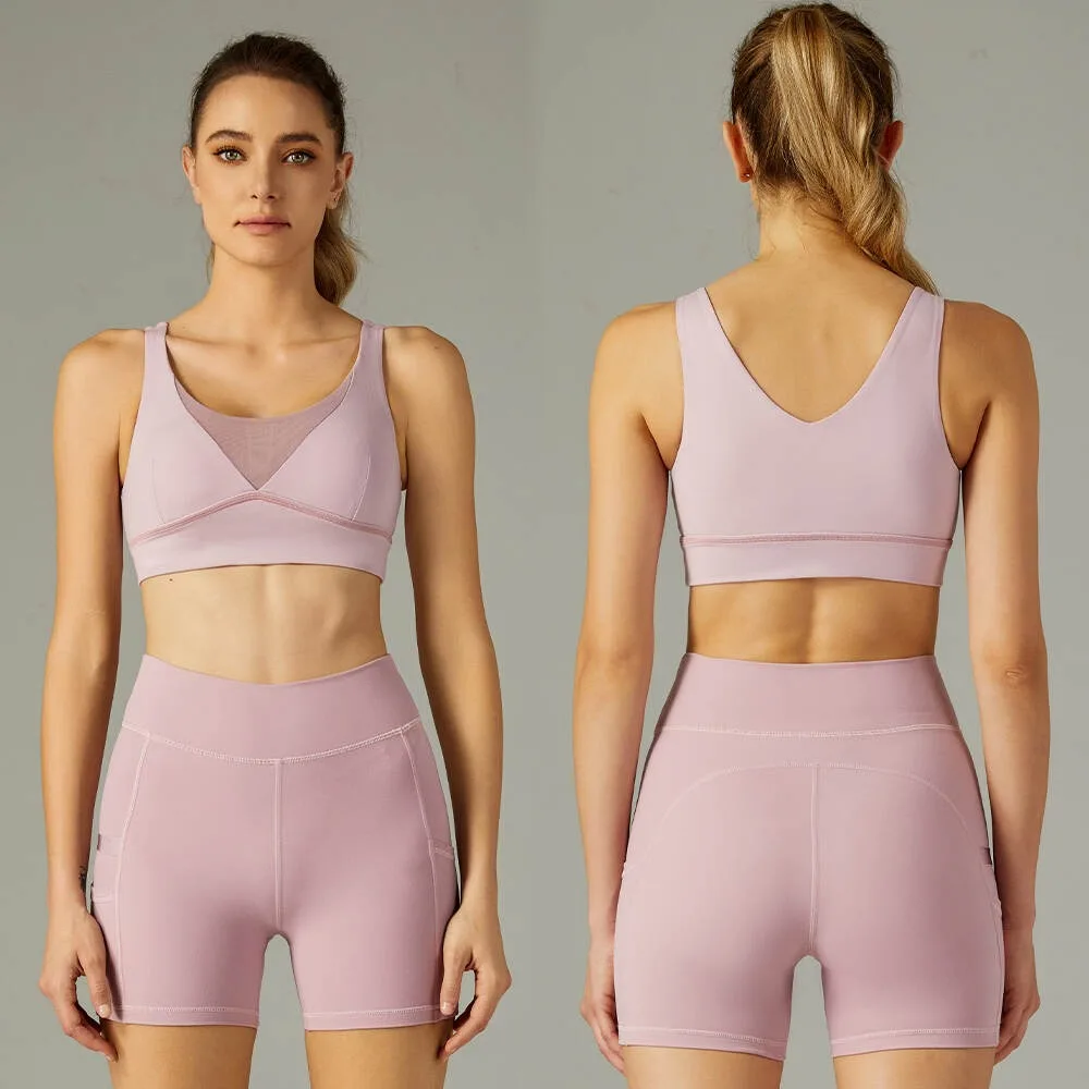 Hot Selling Sleeveless Yoga Wear Set Sports Bra Biker Short Custom Logo