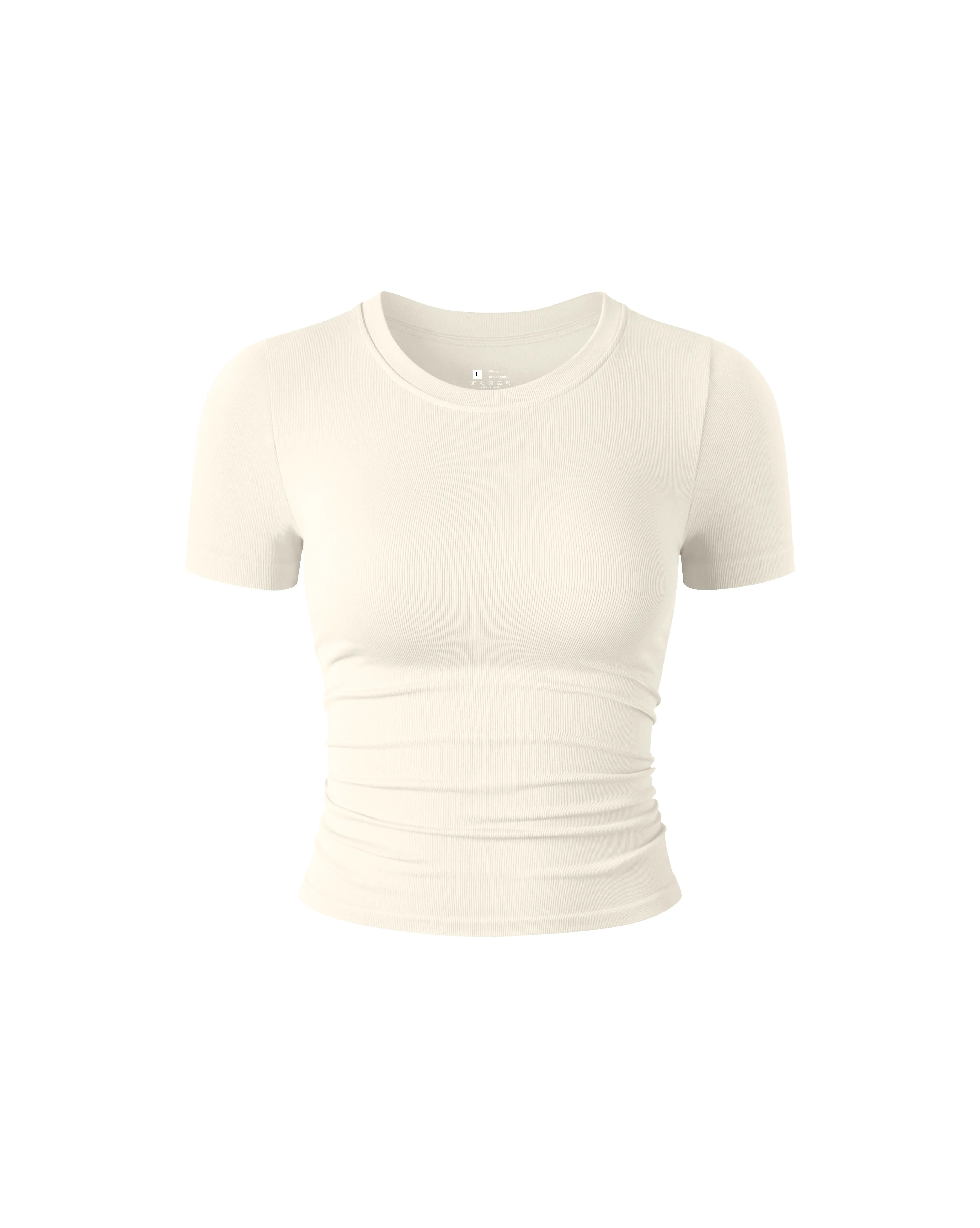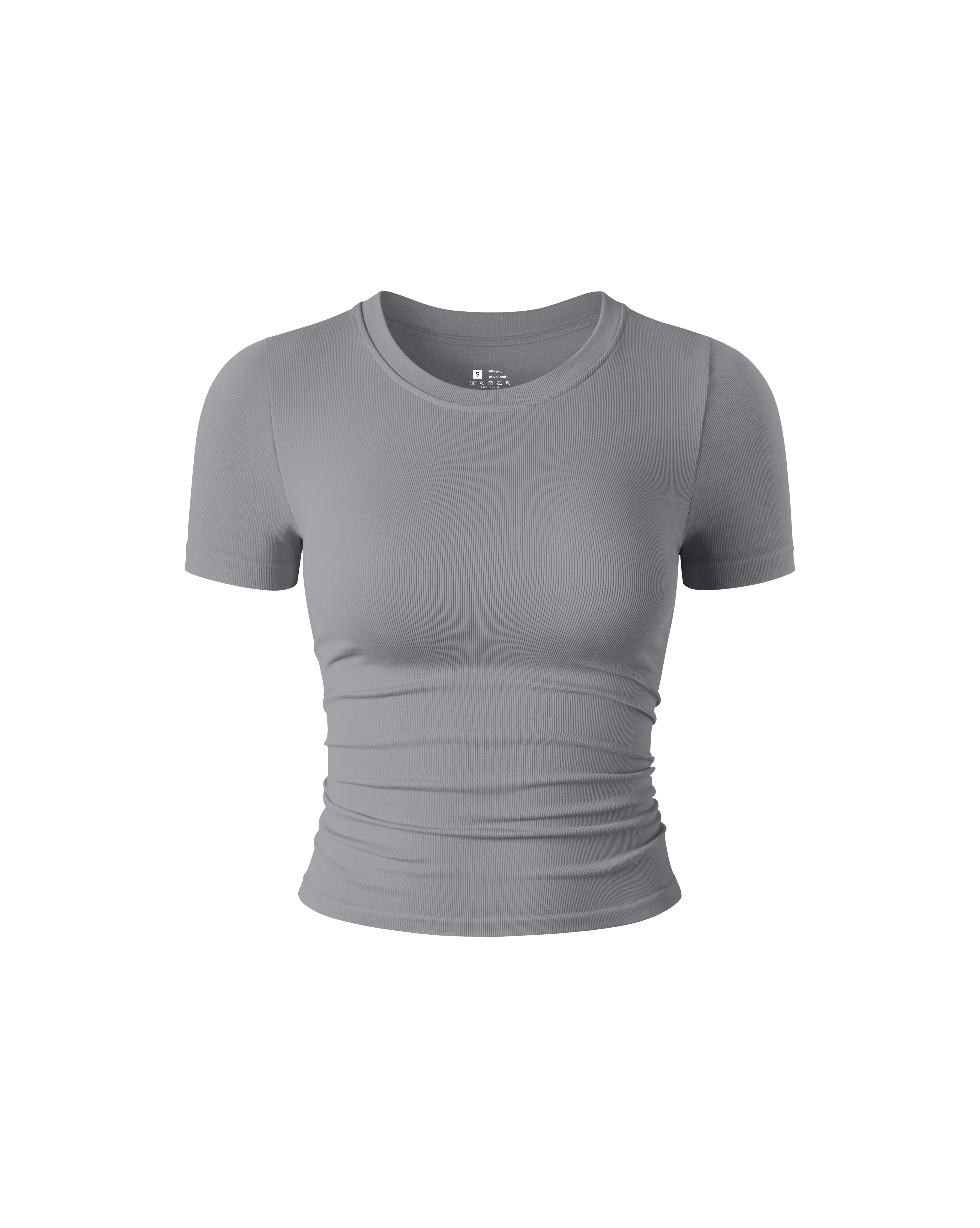 Direct Factory Sale Plus Size Women's Breathable Seamless Ribbed Yoga Top Short Sleeved Four Sided Elastic Round Neck Yoga Top