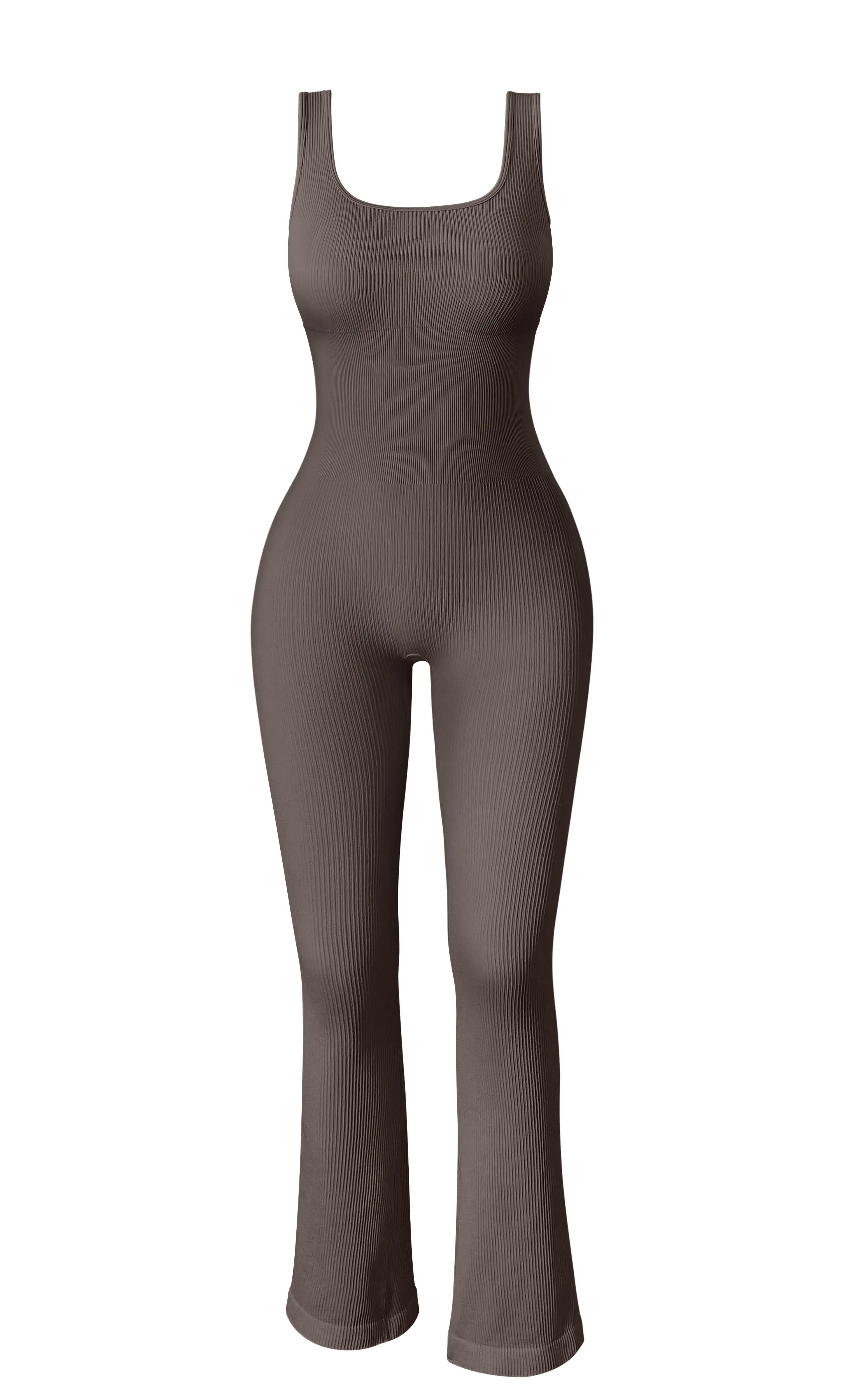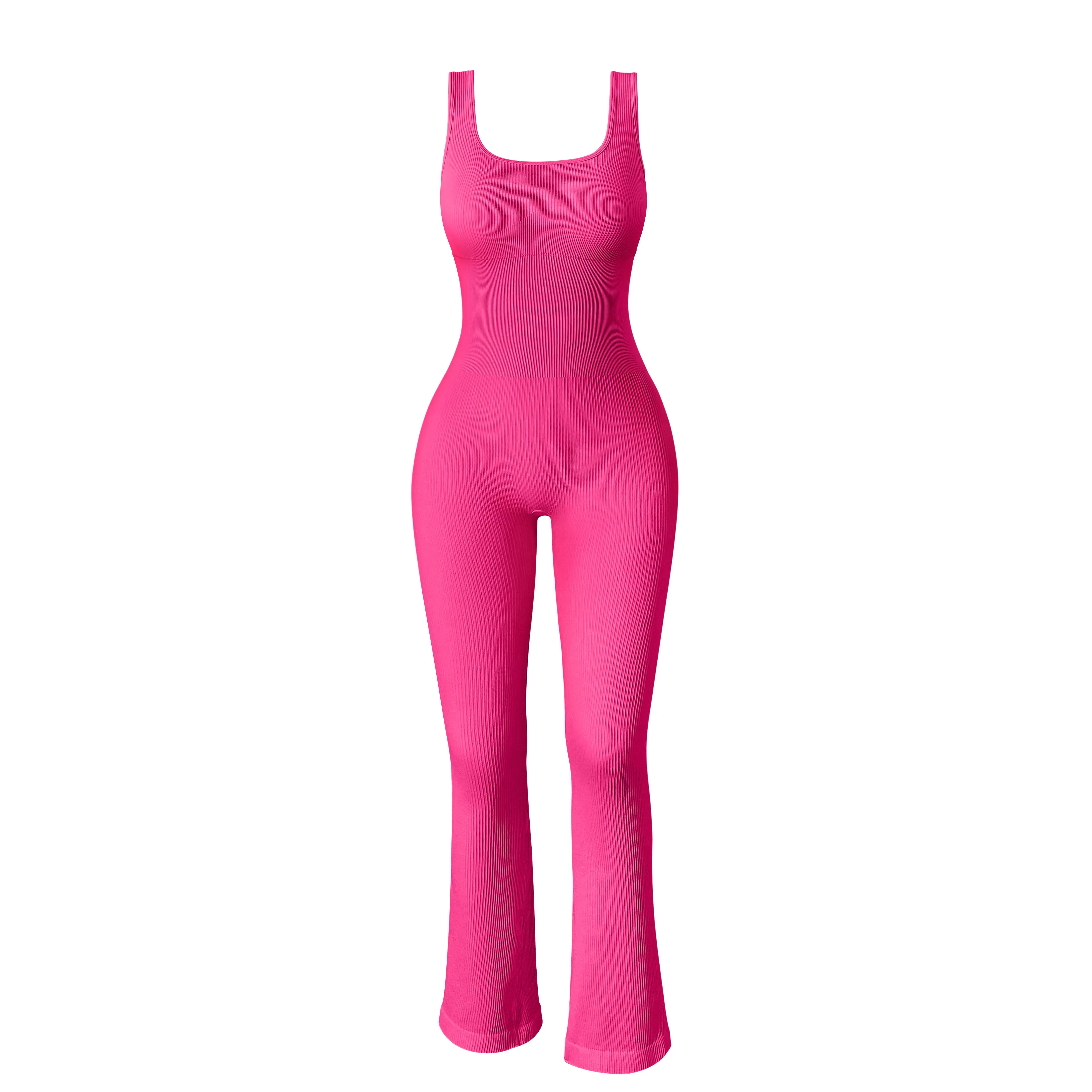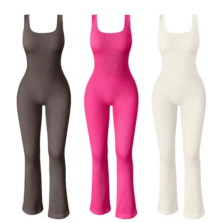 Women's High Quality Breathable Spandex/Nylon Solid Heat-Transfer Printed Sleeveless Ribbed Fitness Yoga Bodysuit Tight Sports