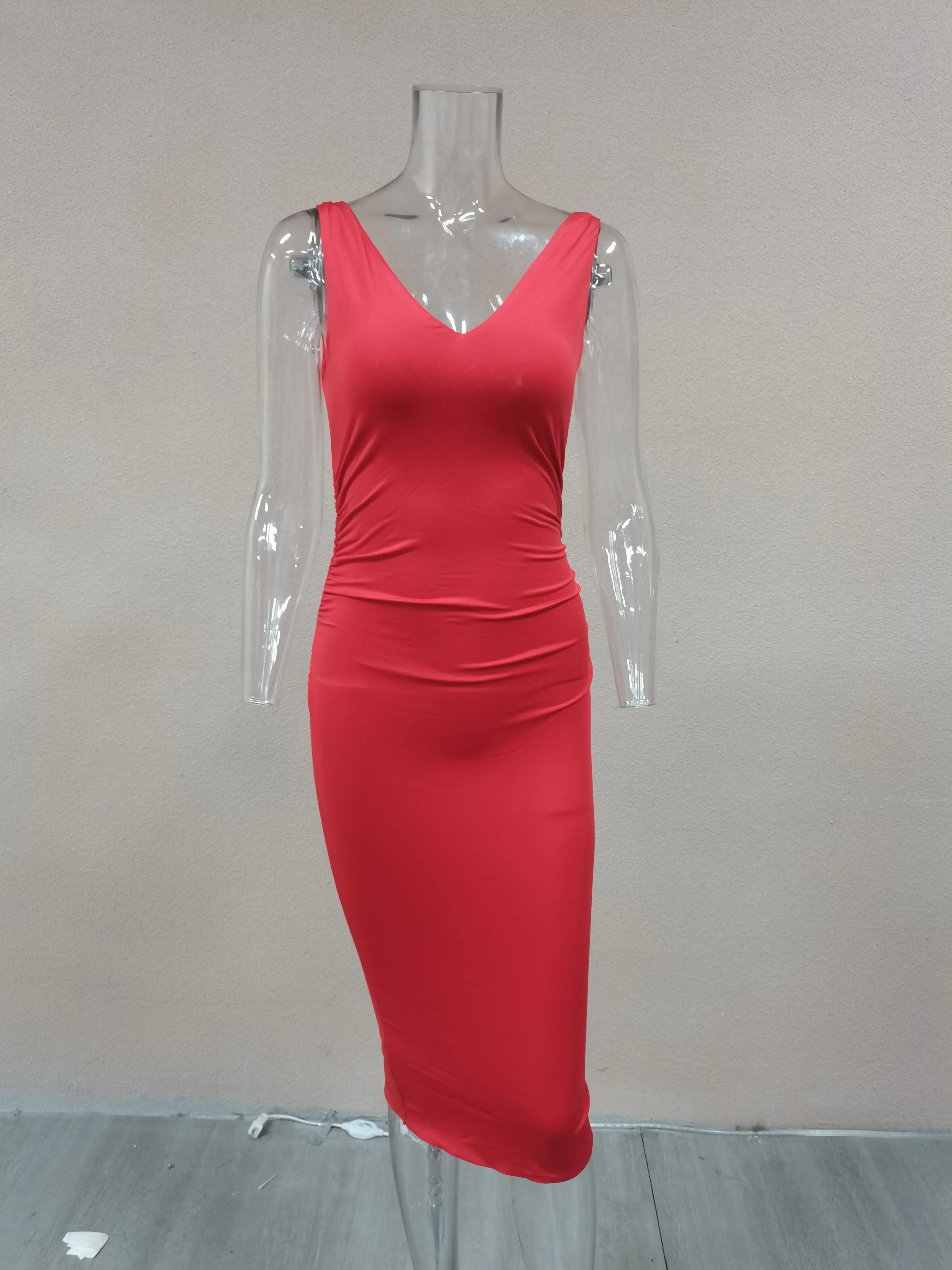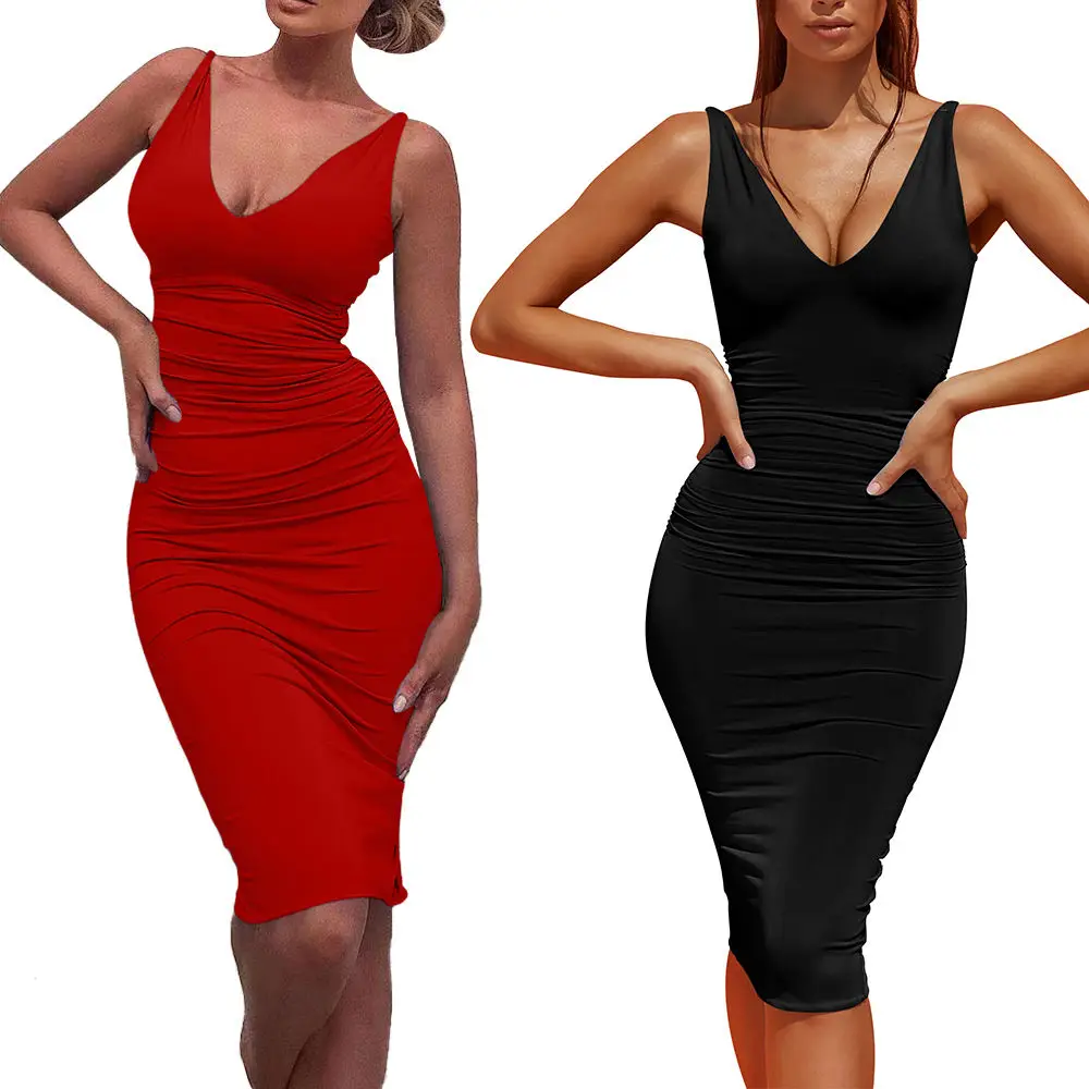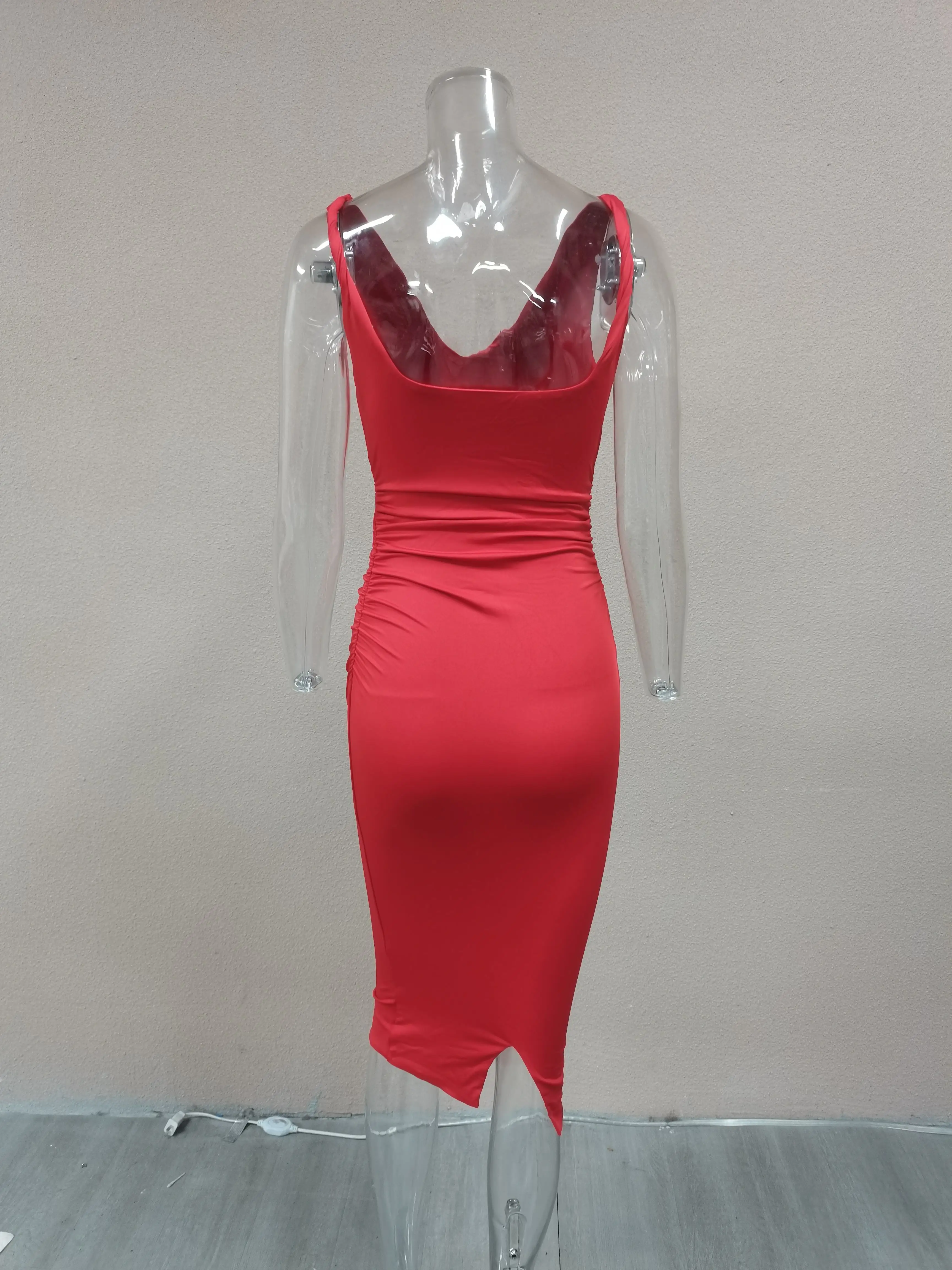 Hot Selling Women's Formal Empire Waistline Evening Dress with Square Neck Low Cut High Slit Ruched Decoration for Club Events