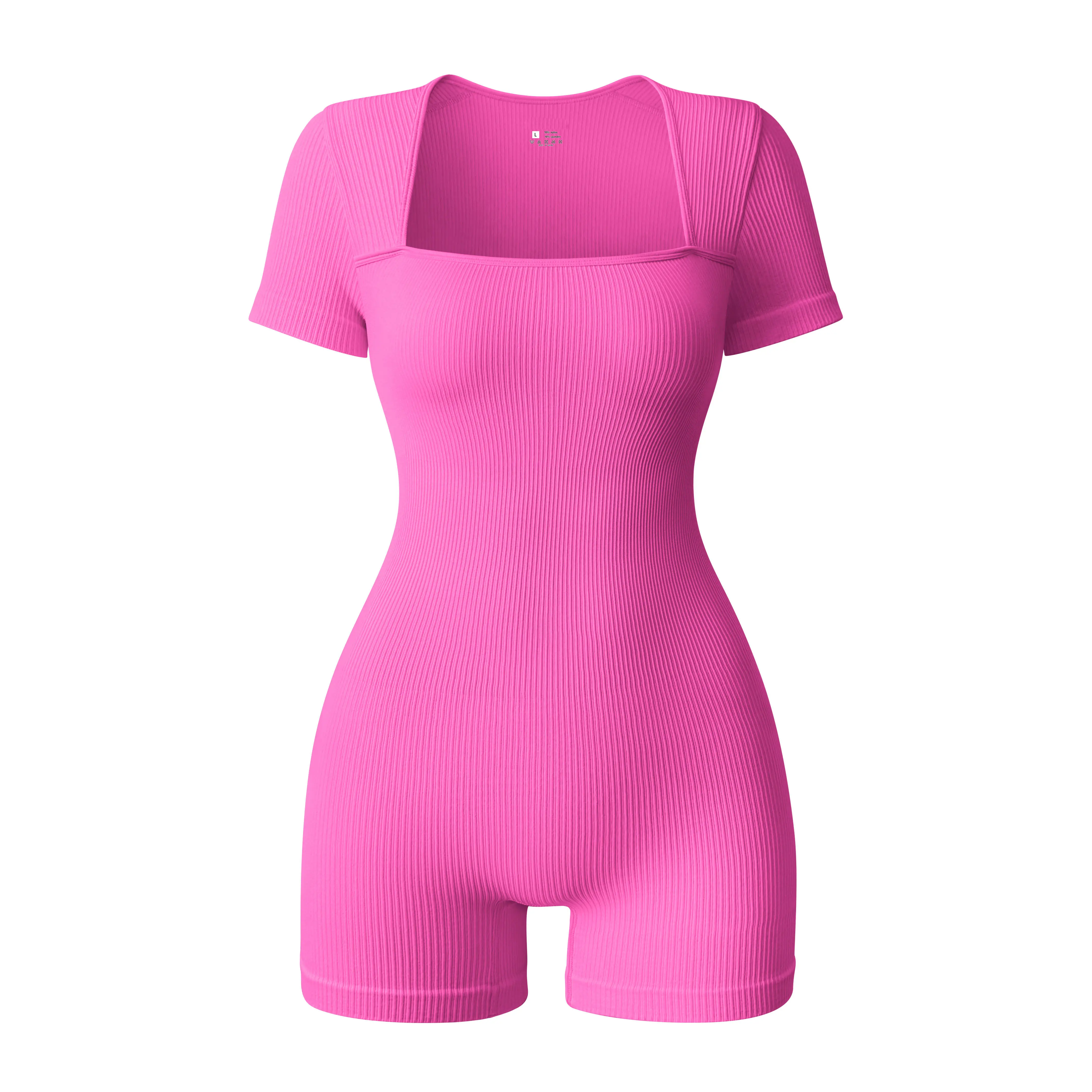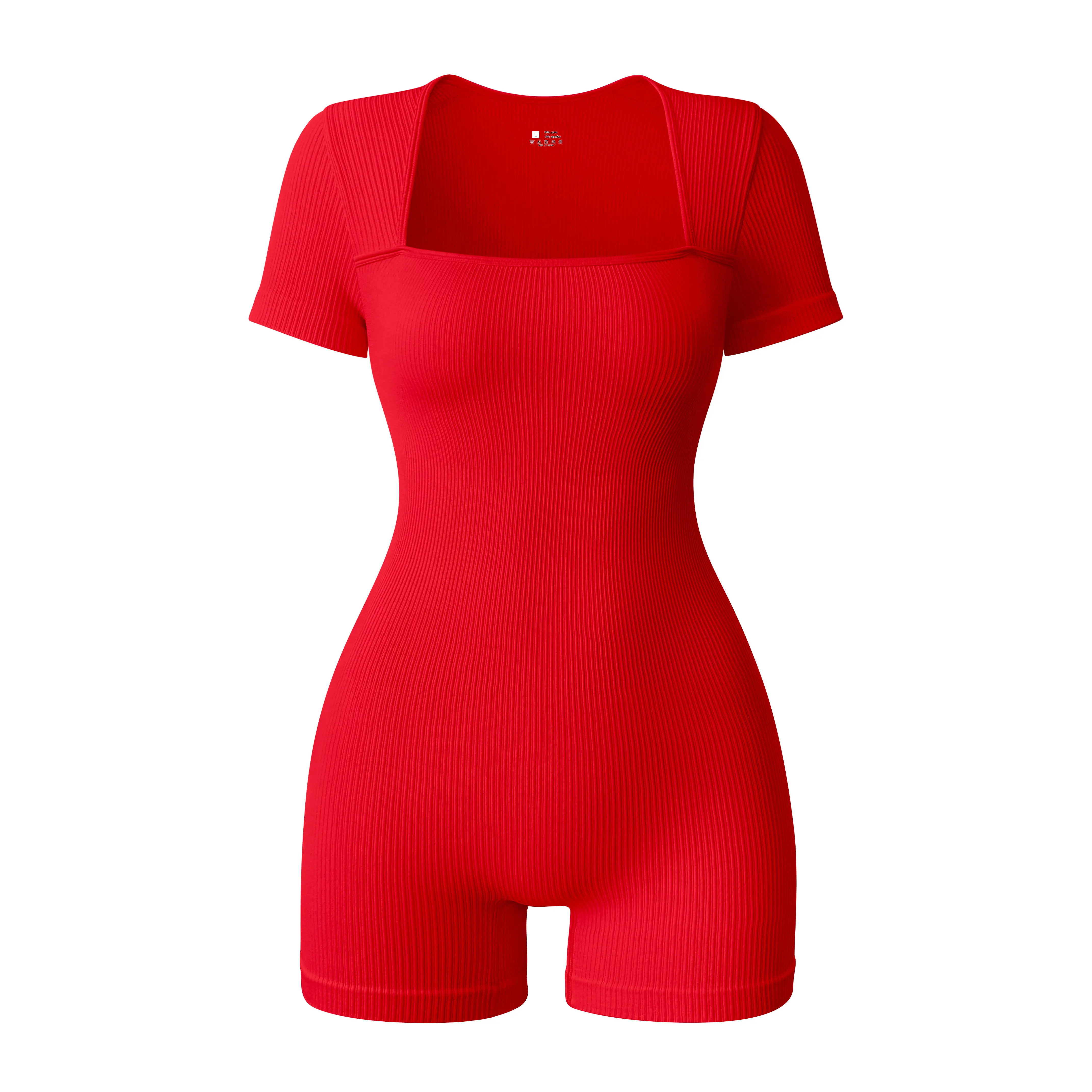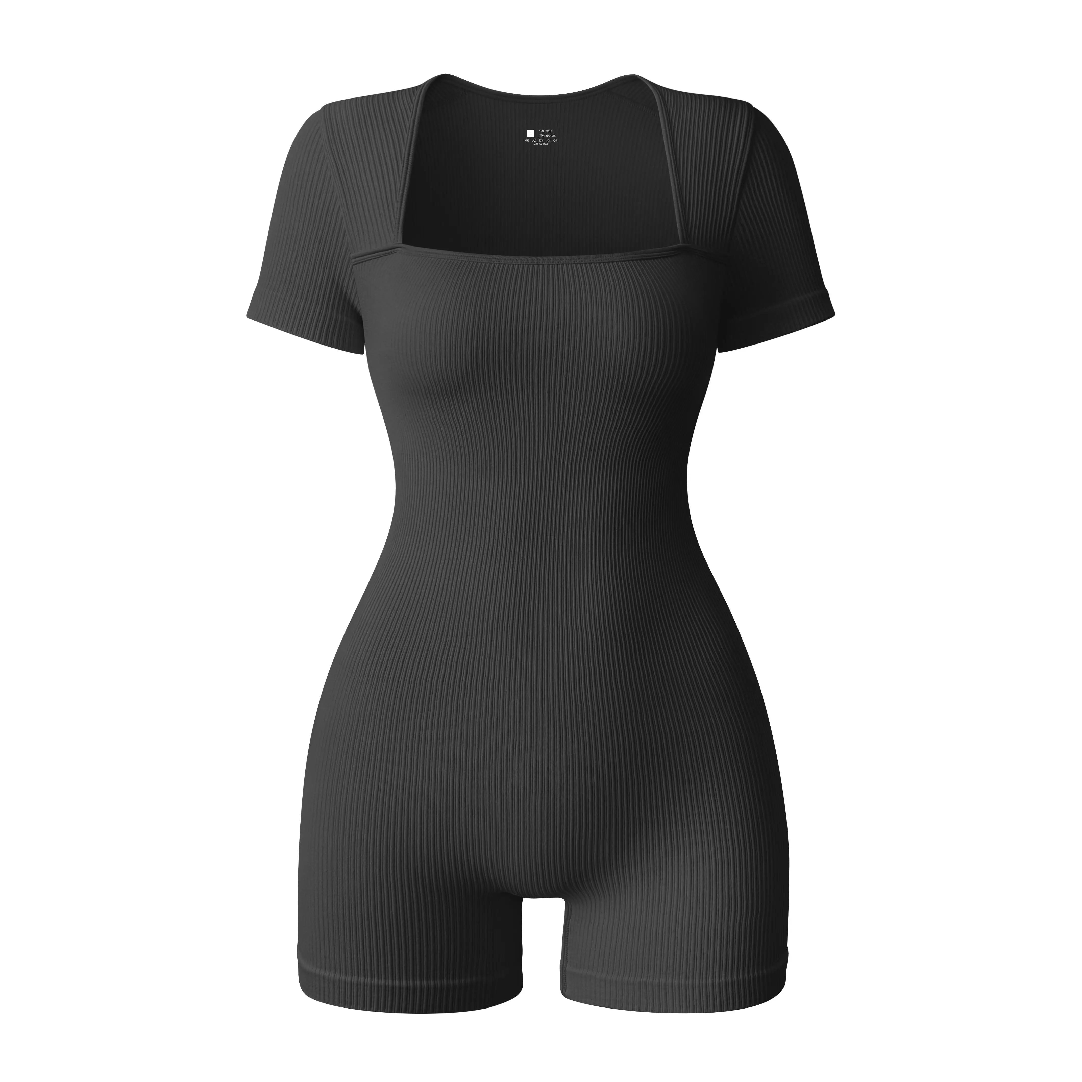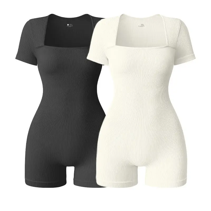 Hot Selling Seamless Sports Bodysuit for Women Square Neck Ribbed Yoga Jumpsuit for Outdoor Cycling & Exercise