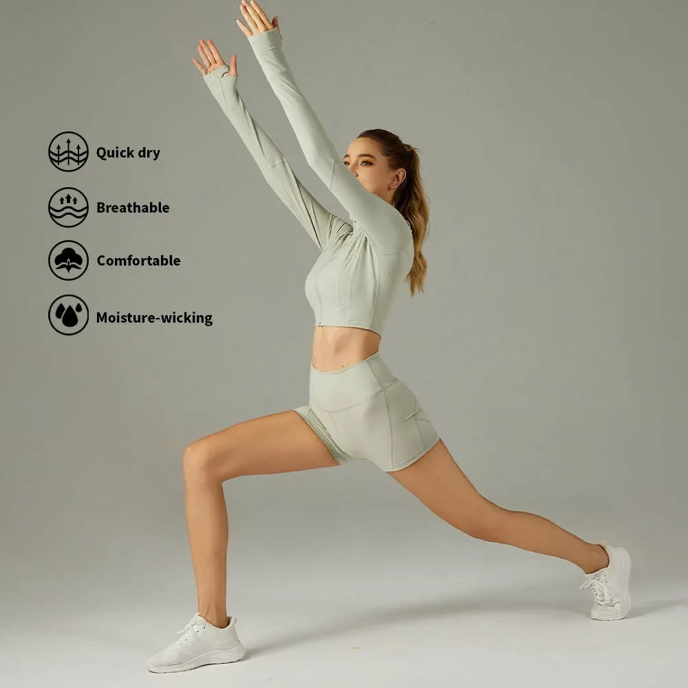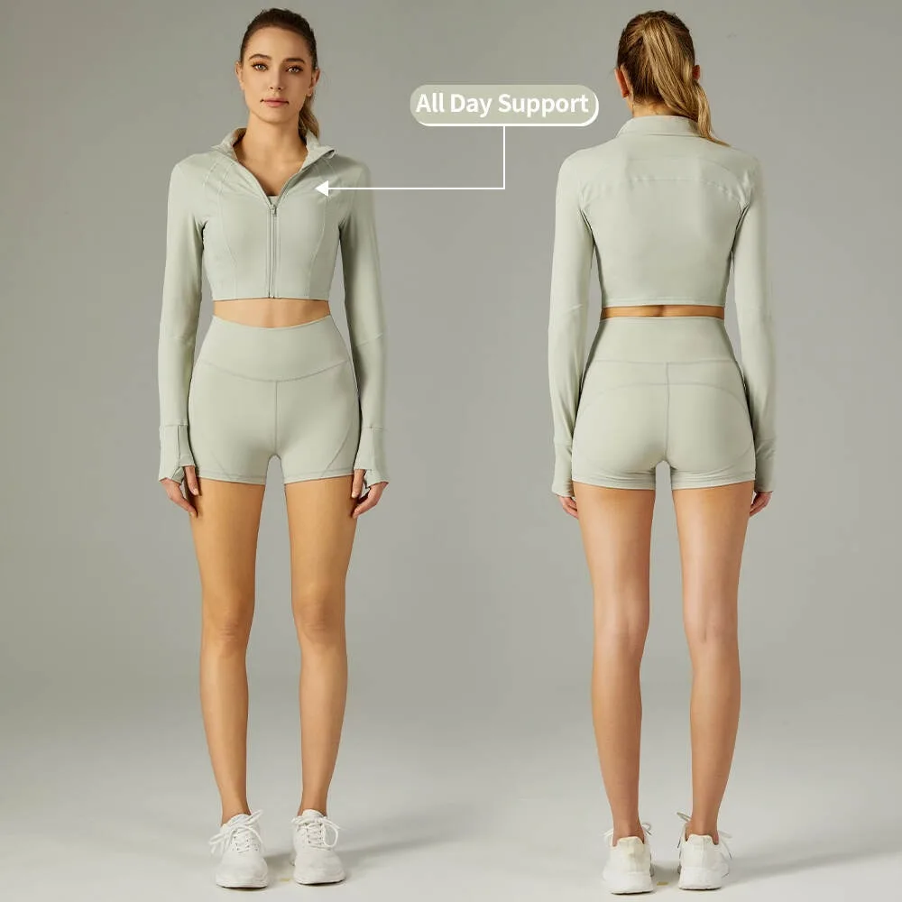 New Hot Selling Yoga Wear Set Crop Zip Jacket Biker Shorts Custom Logo