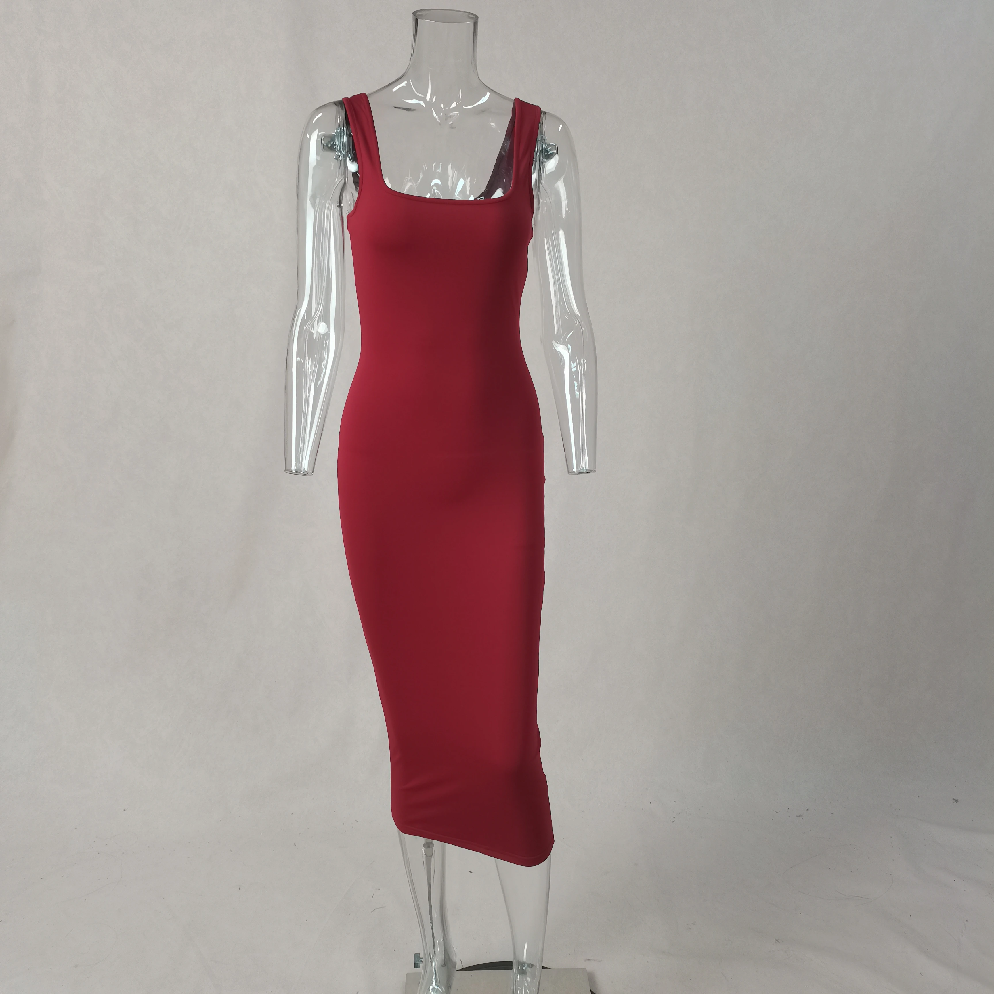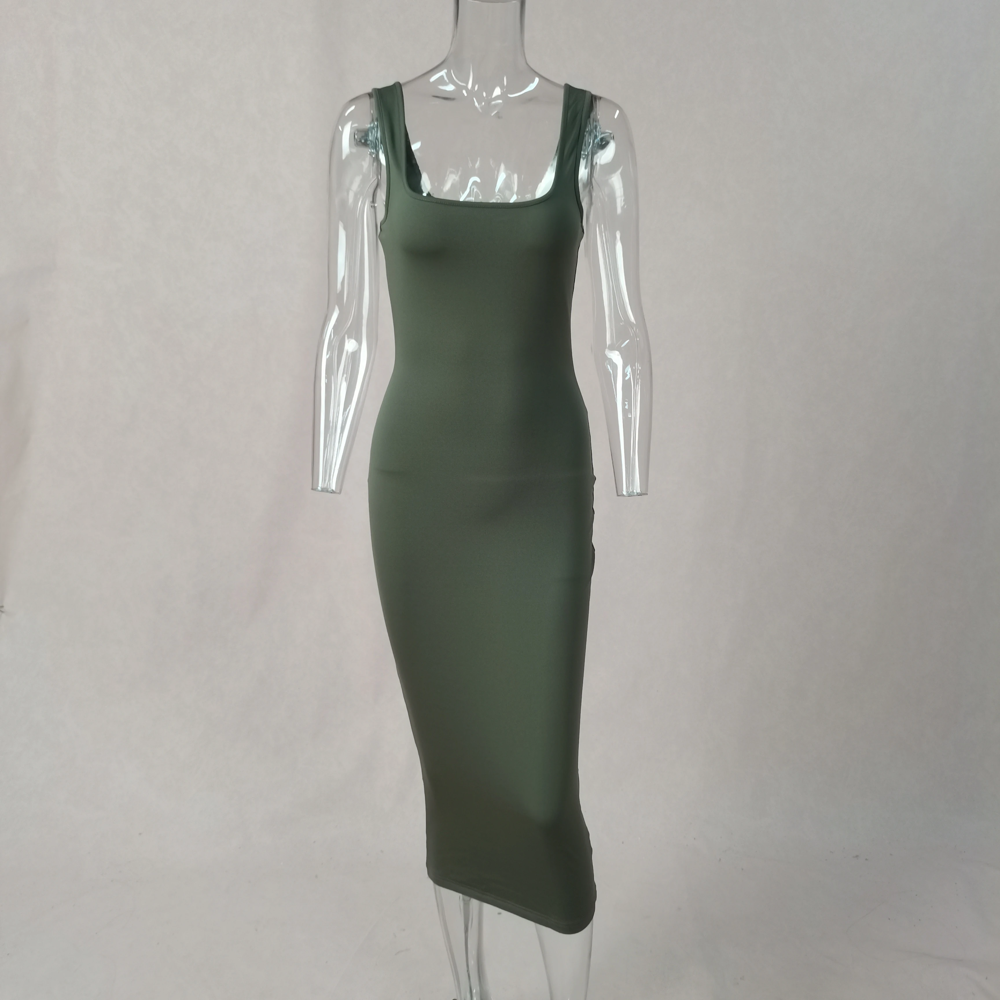 Open Front Bodycon Maxi Party Dress for Women Custom Clothing Bandage Tank Top with Ruched Decoration Low MOQ Natural Waistline