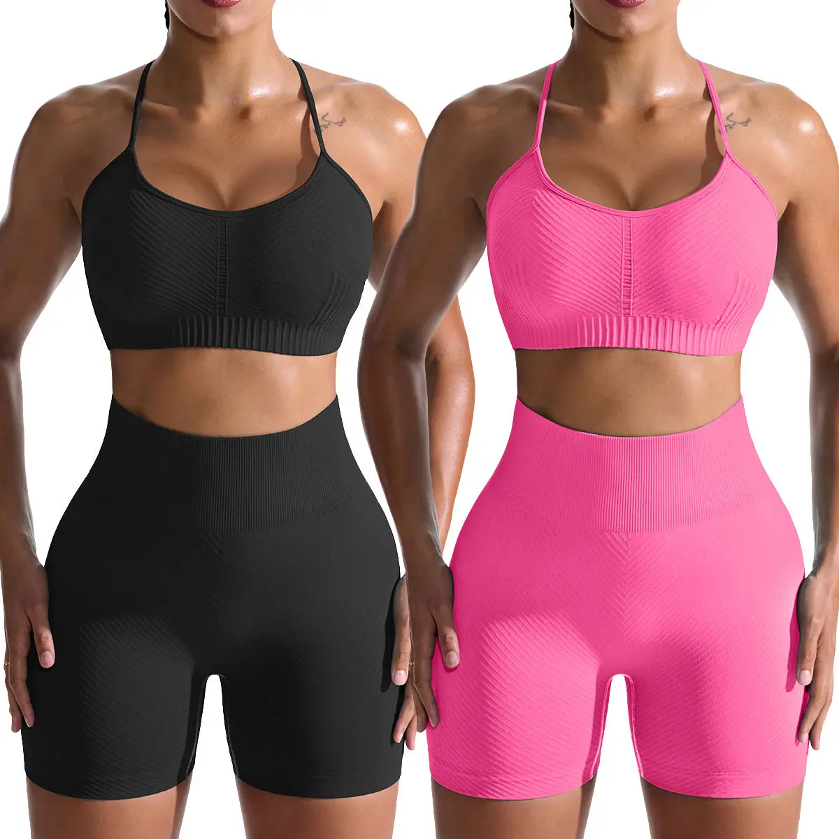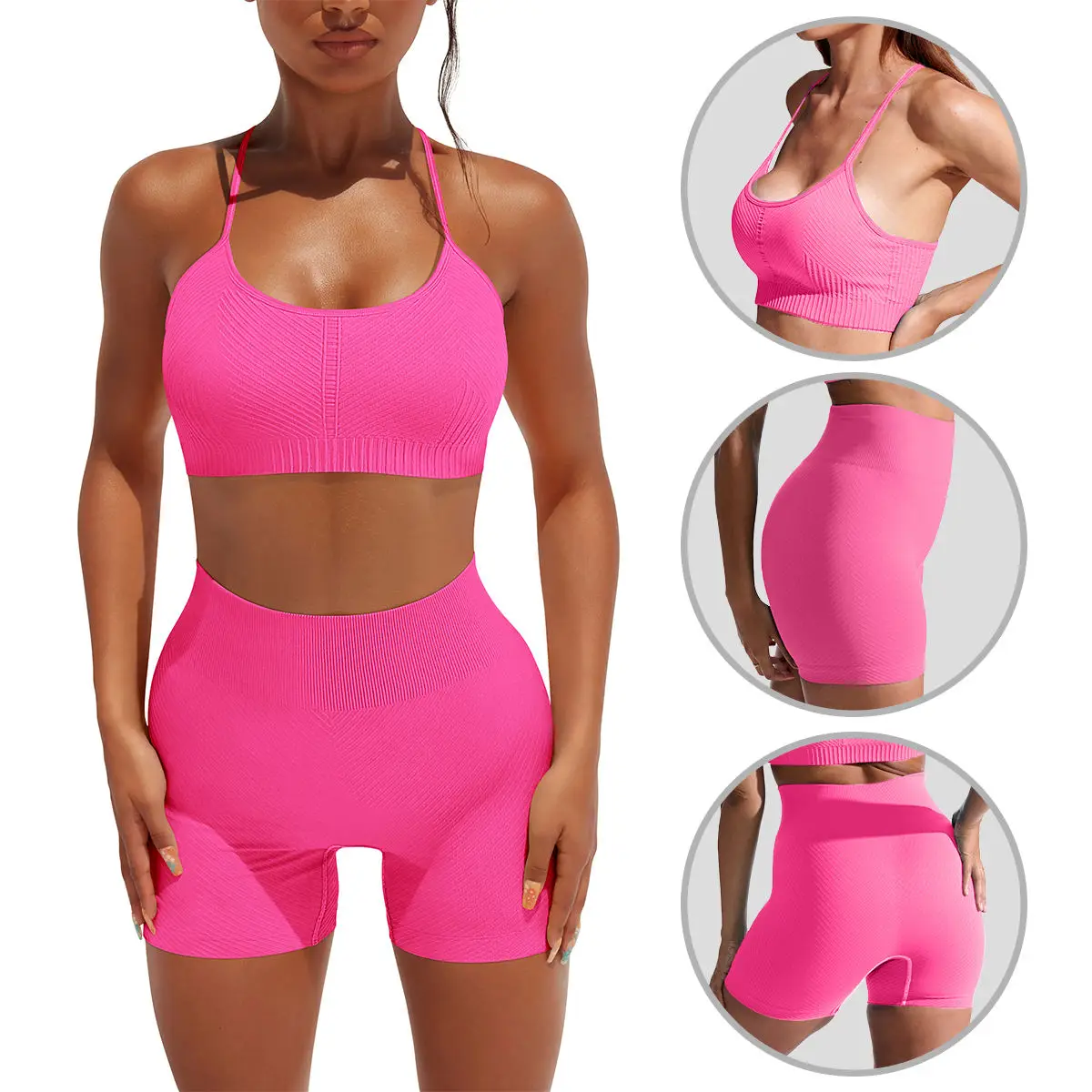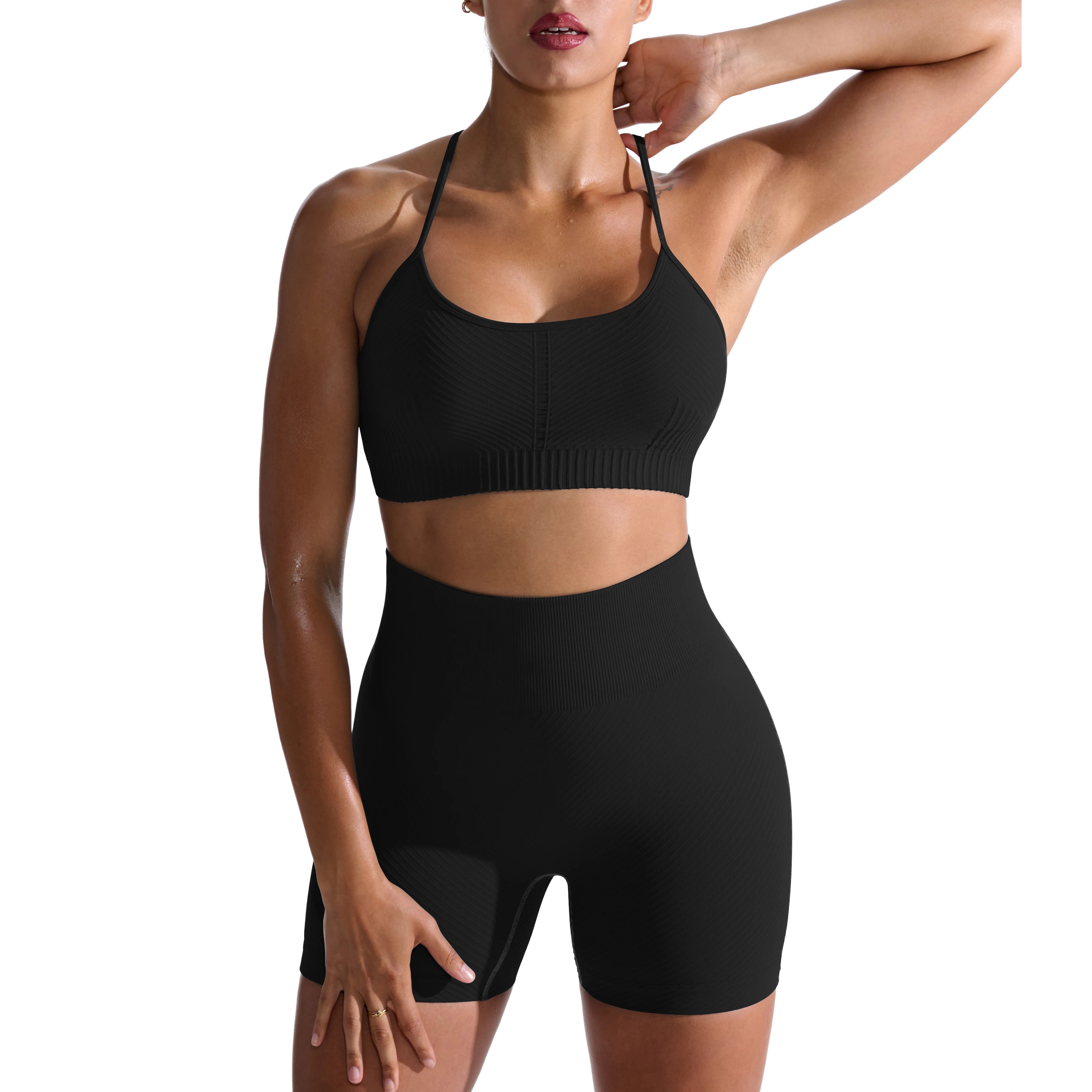 High Quality Women's Gym Clothing Set Sexy Off-Shoulder Bra & High-Waisted Elastic Shorts Plus Size Lightweight for Fitness