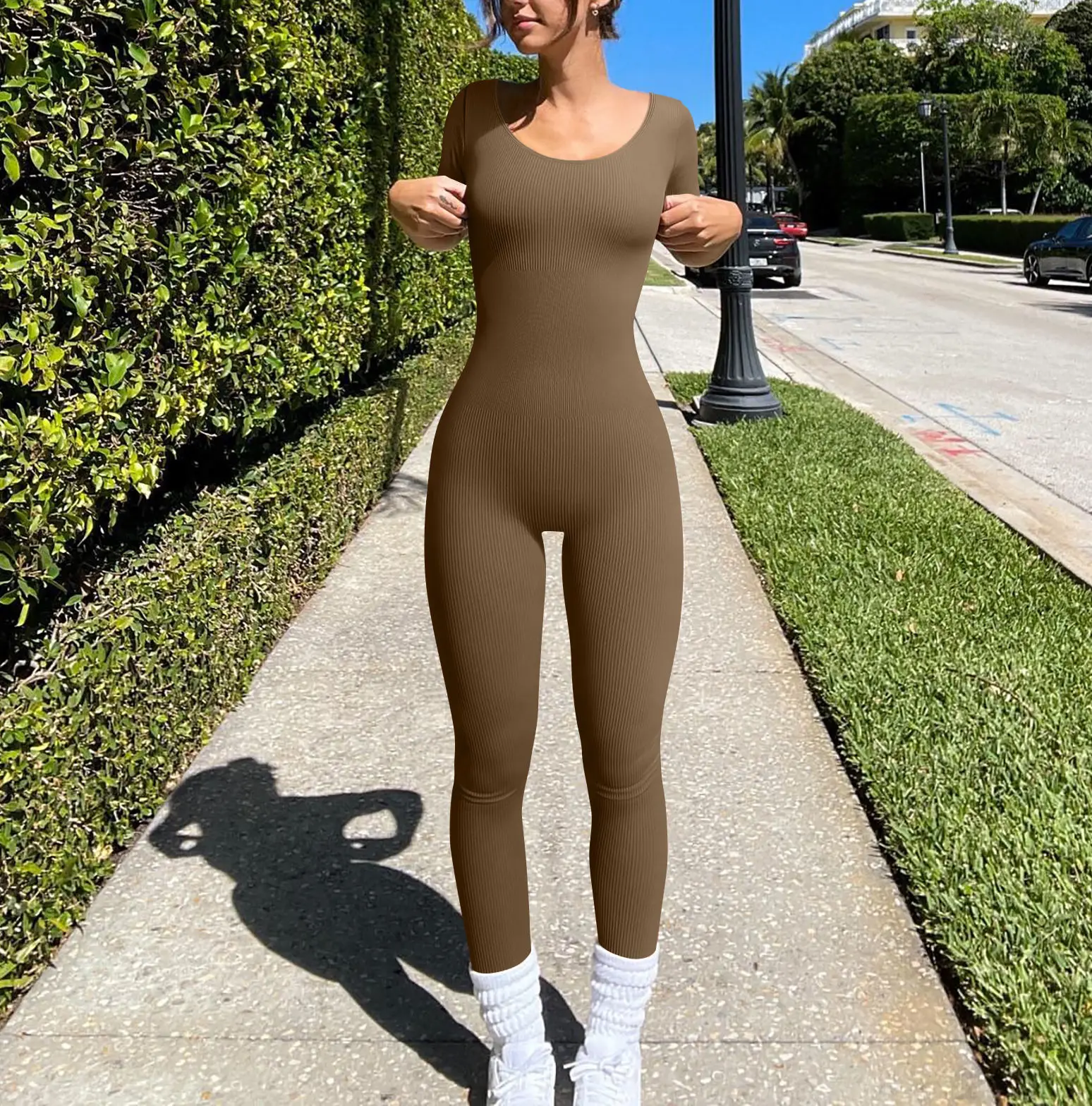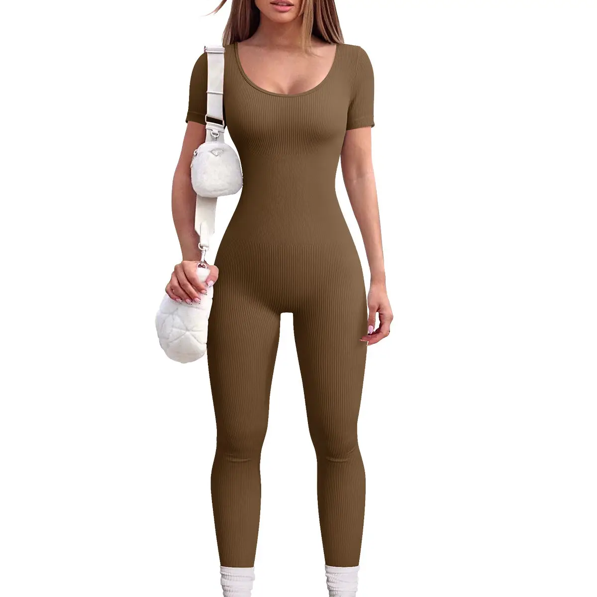 Hot Selling Women's Sports Bodysuit Four-Way Stretch Spandex/Nylon Sexy Jumpsuit Hip Lifting Shaping for Fitness Yoga Cycling
