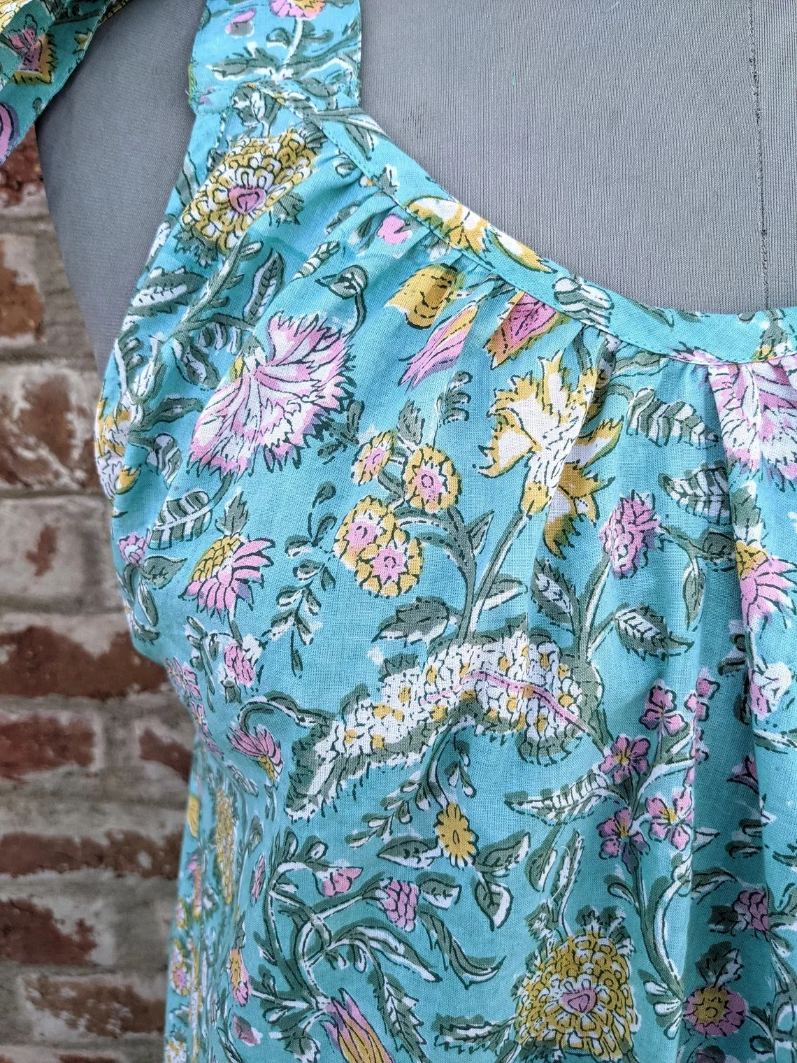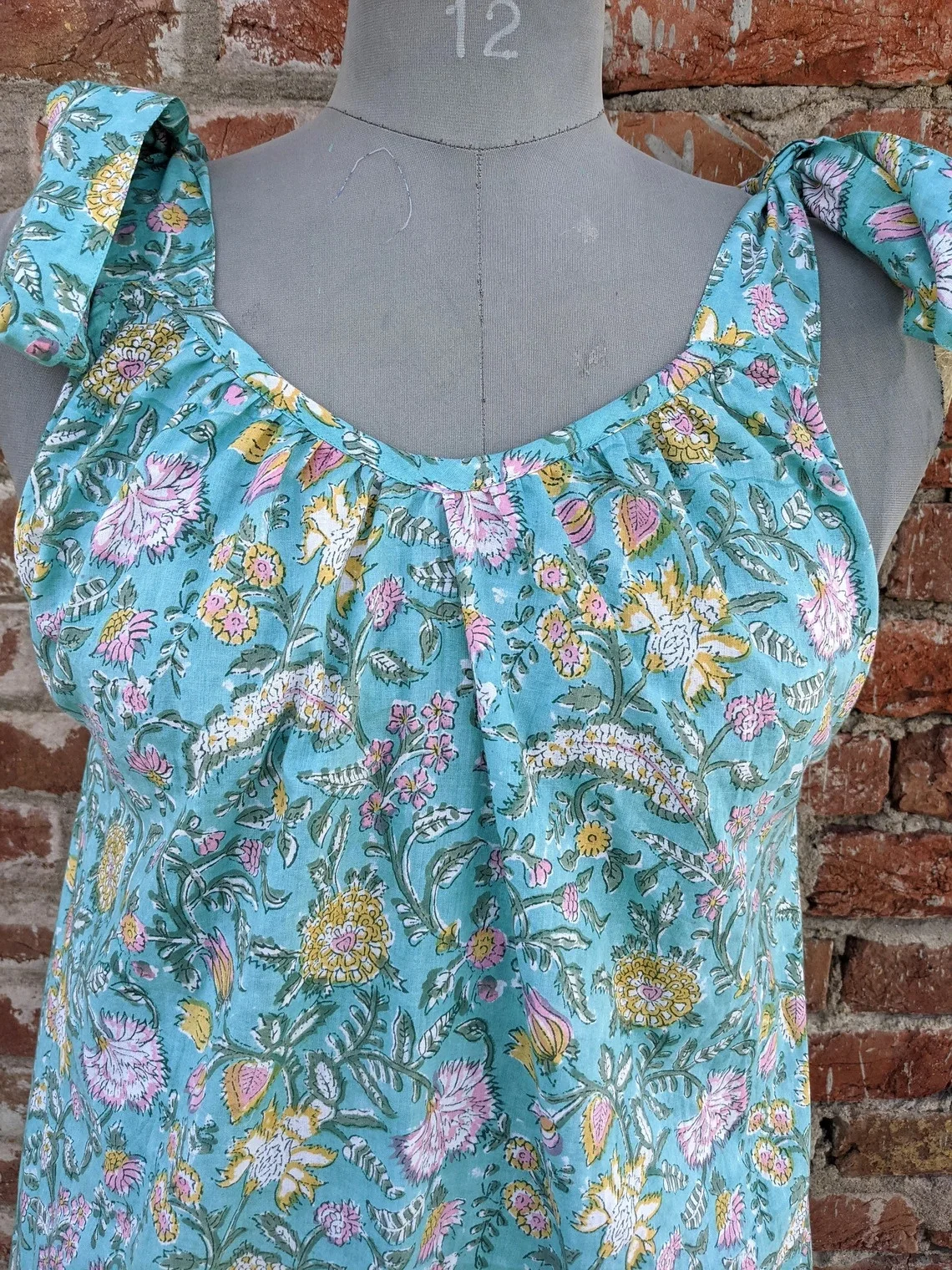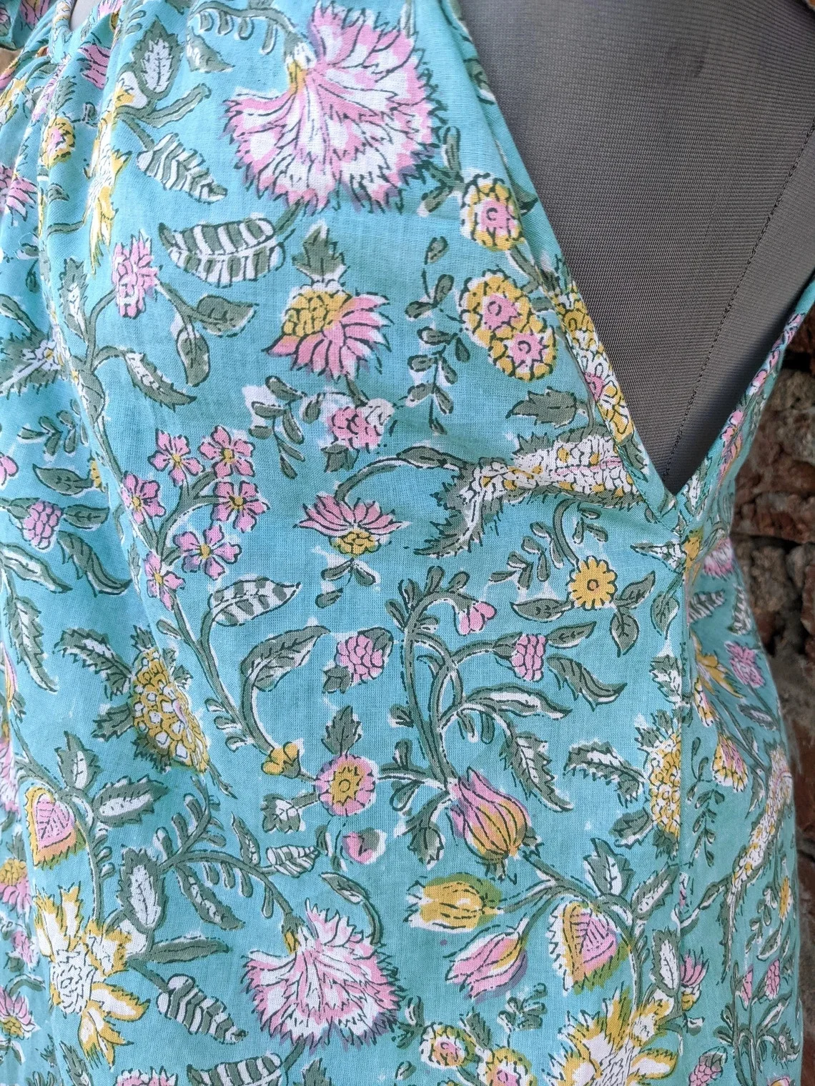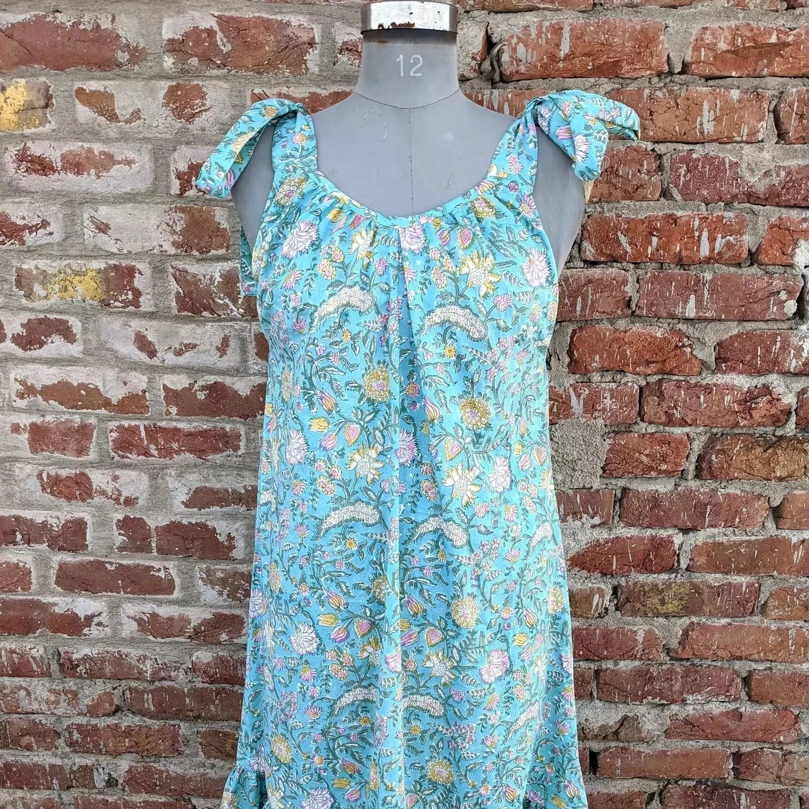 Hand Block Printed Indian Cotton Maxi Dress Breathable Long Gown with O-Neckline Tie Dye Woven Technique Natural Waistline