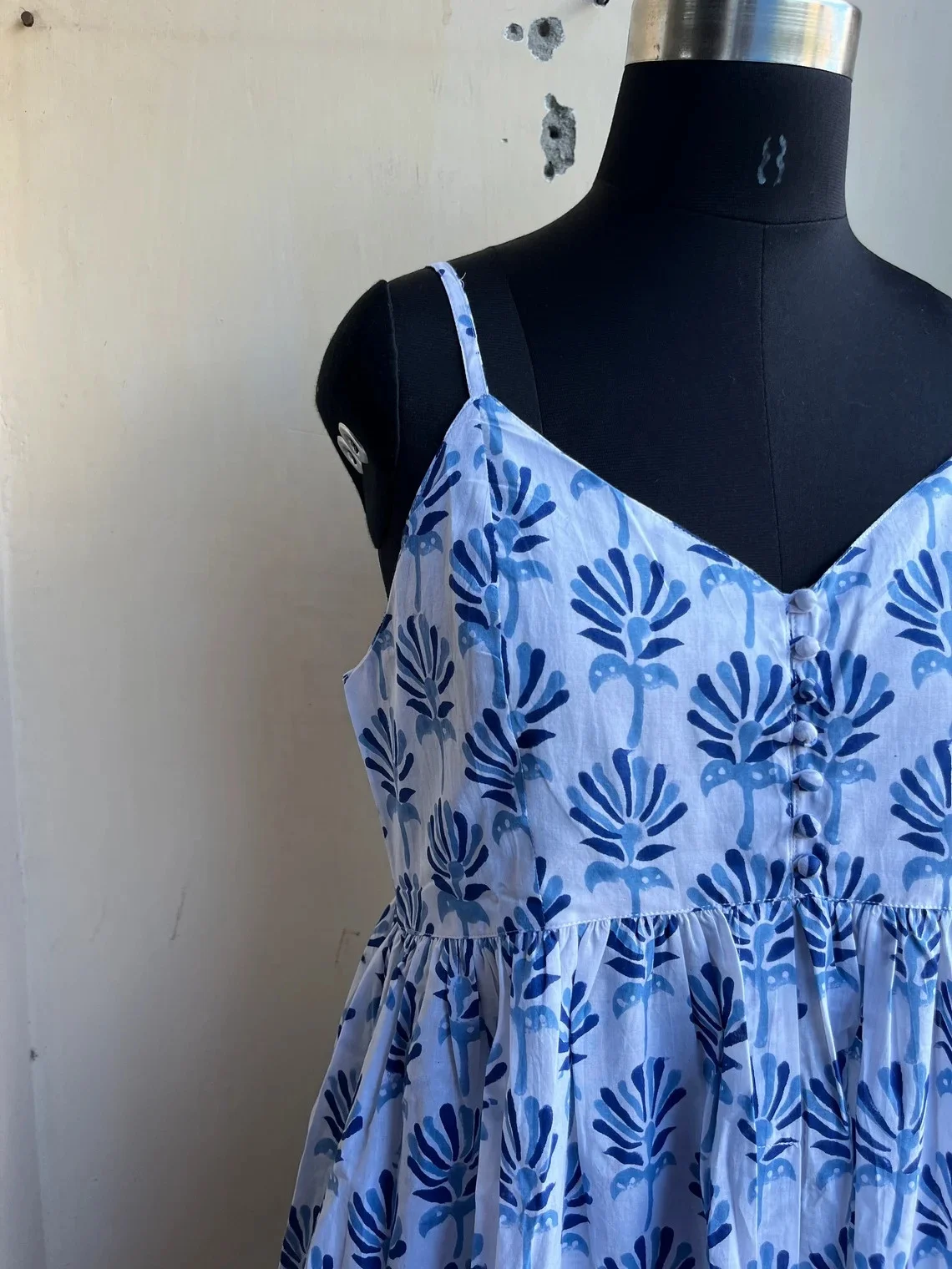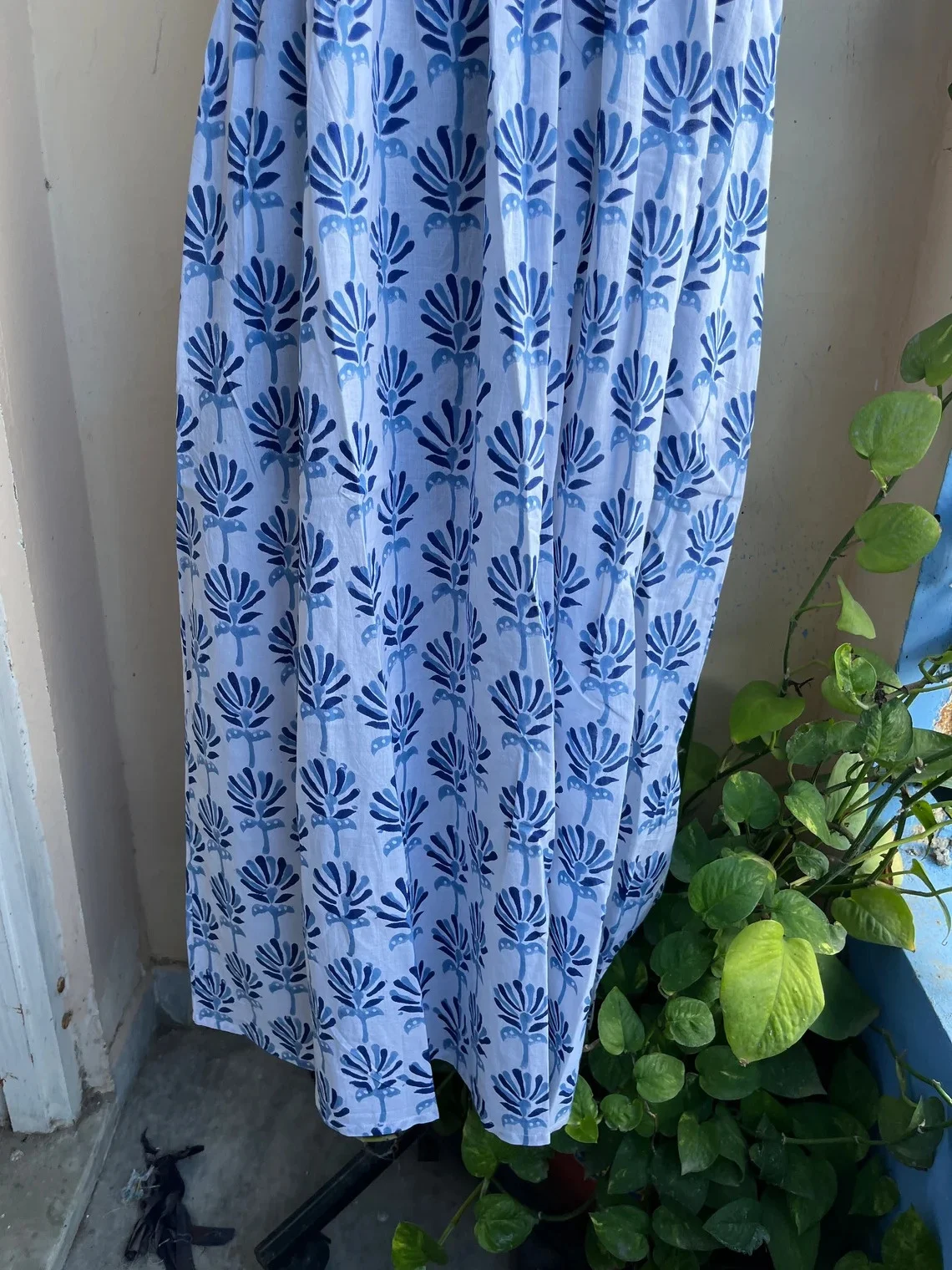 Hand Block Printed Indian Cotton Maxi Dress Breathable Long Gown with Natural Waistline and Pockets