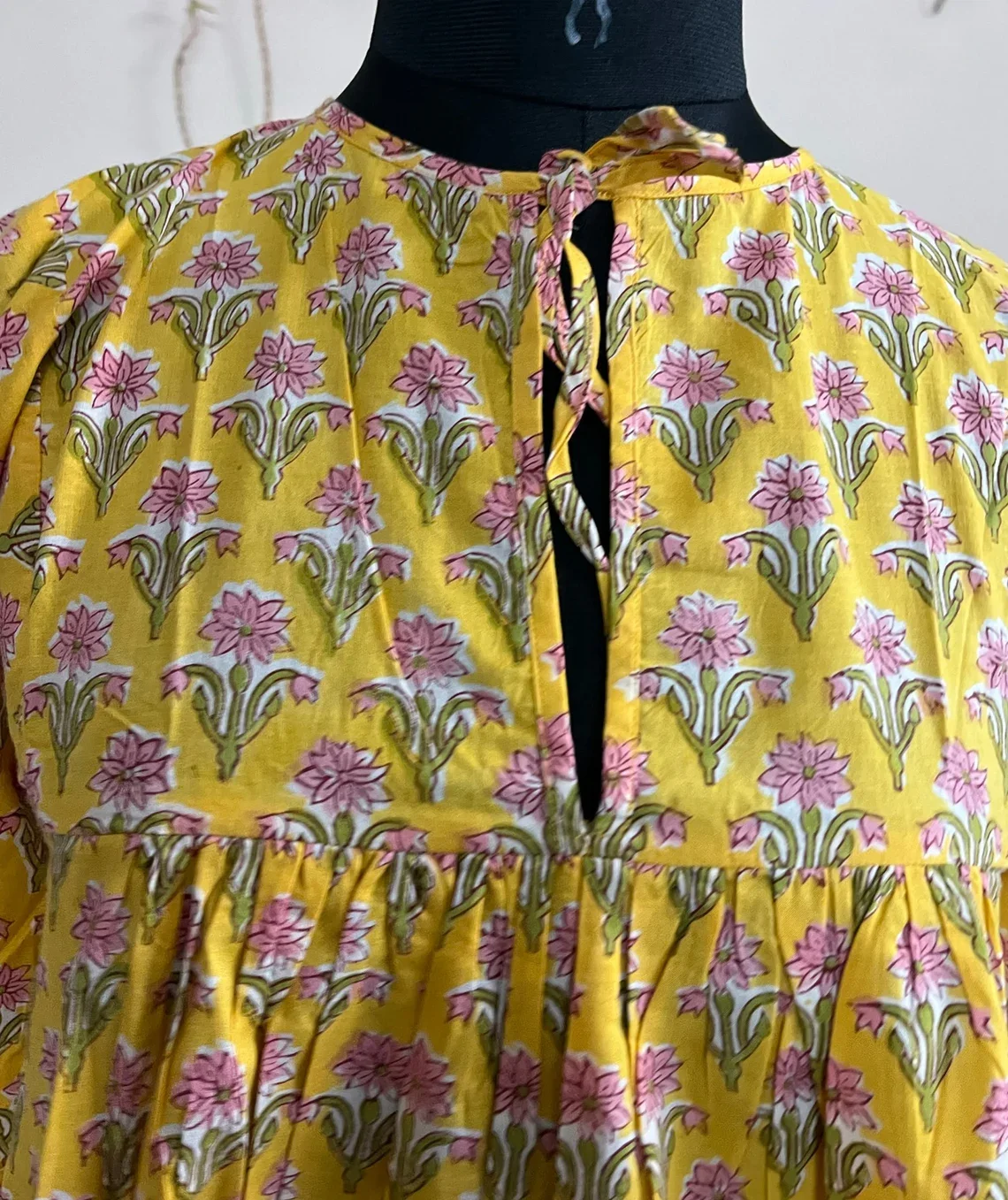 Hand Block Printed Cotton Floral Printed Top Tunic Bohemian Casual Partywear Hippie Sexy Tank Top For Women Gift For Her