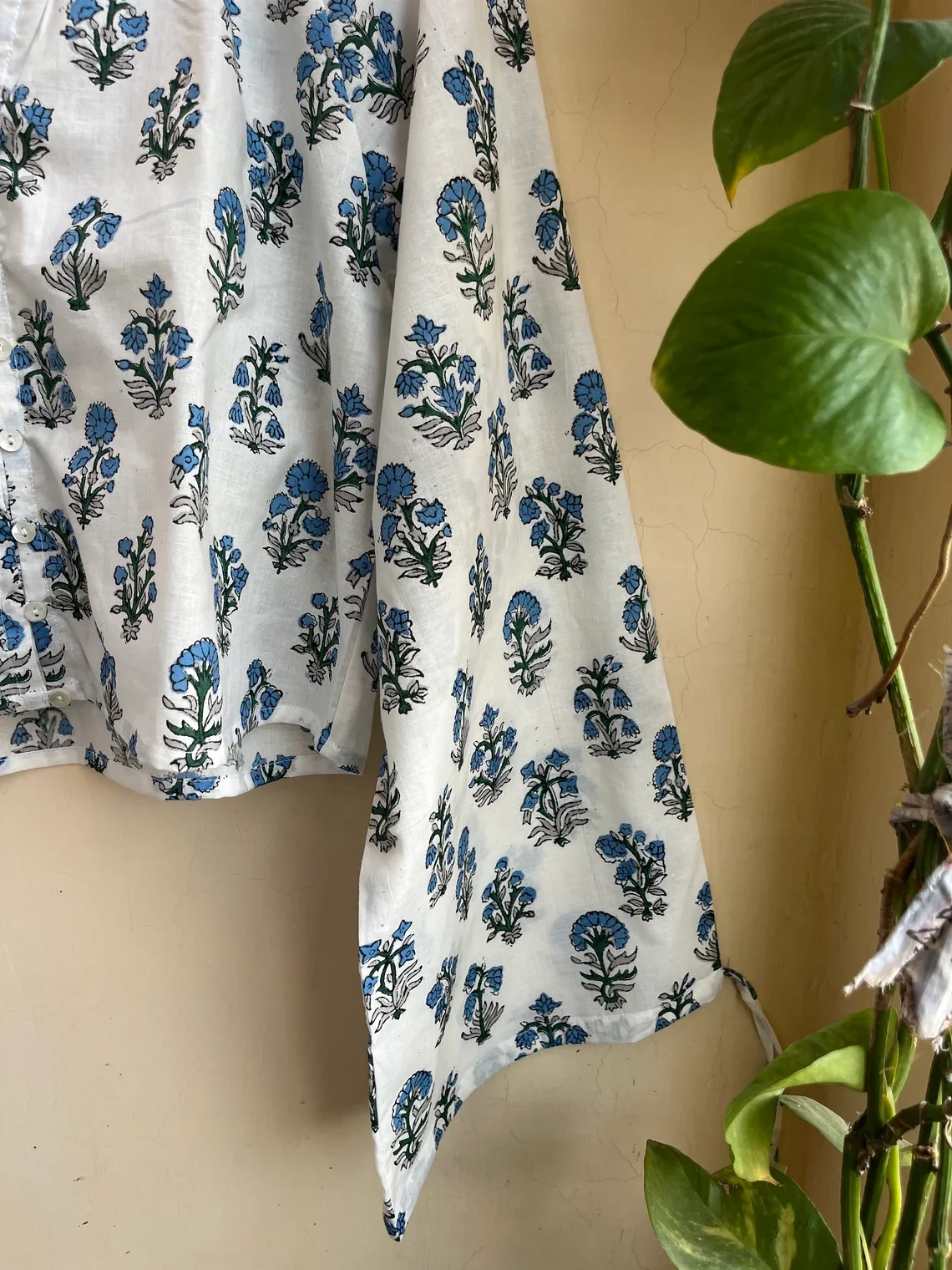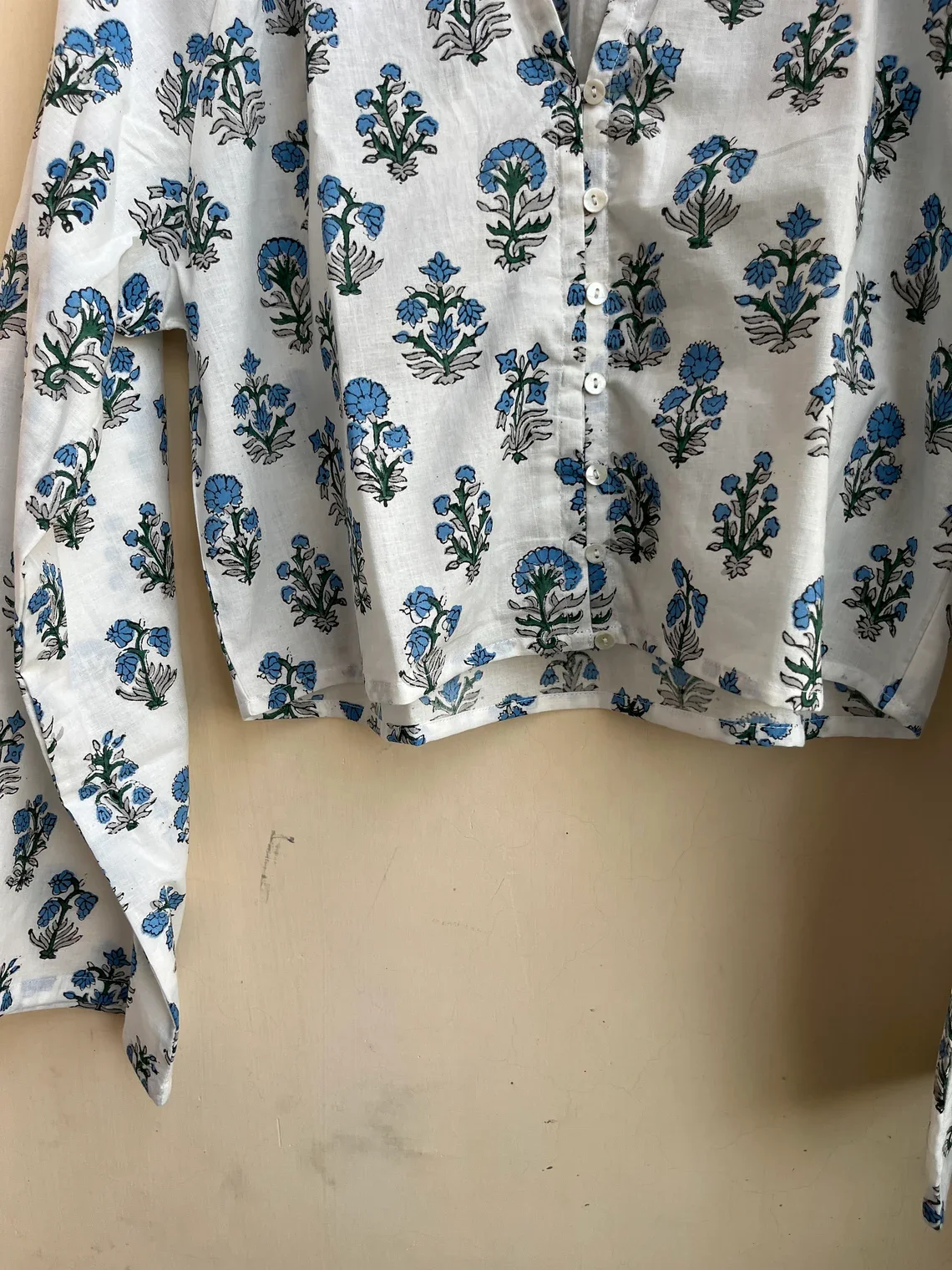 Hand Block Printed Summer Top Cotton Top Women Handmade Cotton Blouse V-neck Long Sleeve Floral Print Top Gift For Her