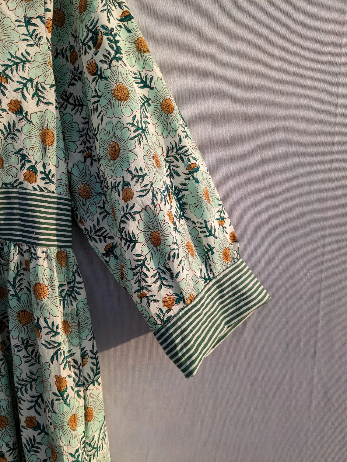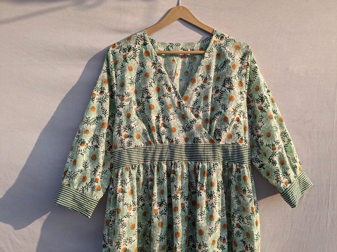 Hand Block Printed Maxi Dress Cotton Tier Maxi Dress Boho Dress Floral Print V-neck Long Maxi Gown For Women