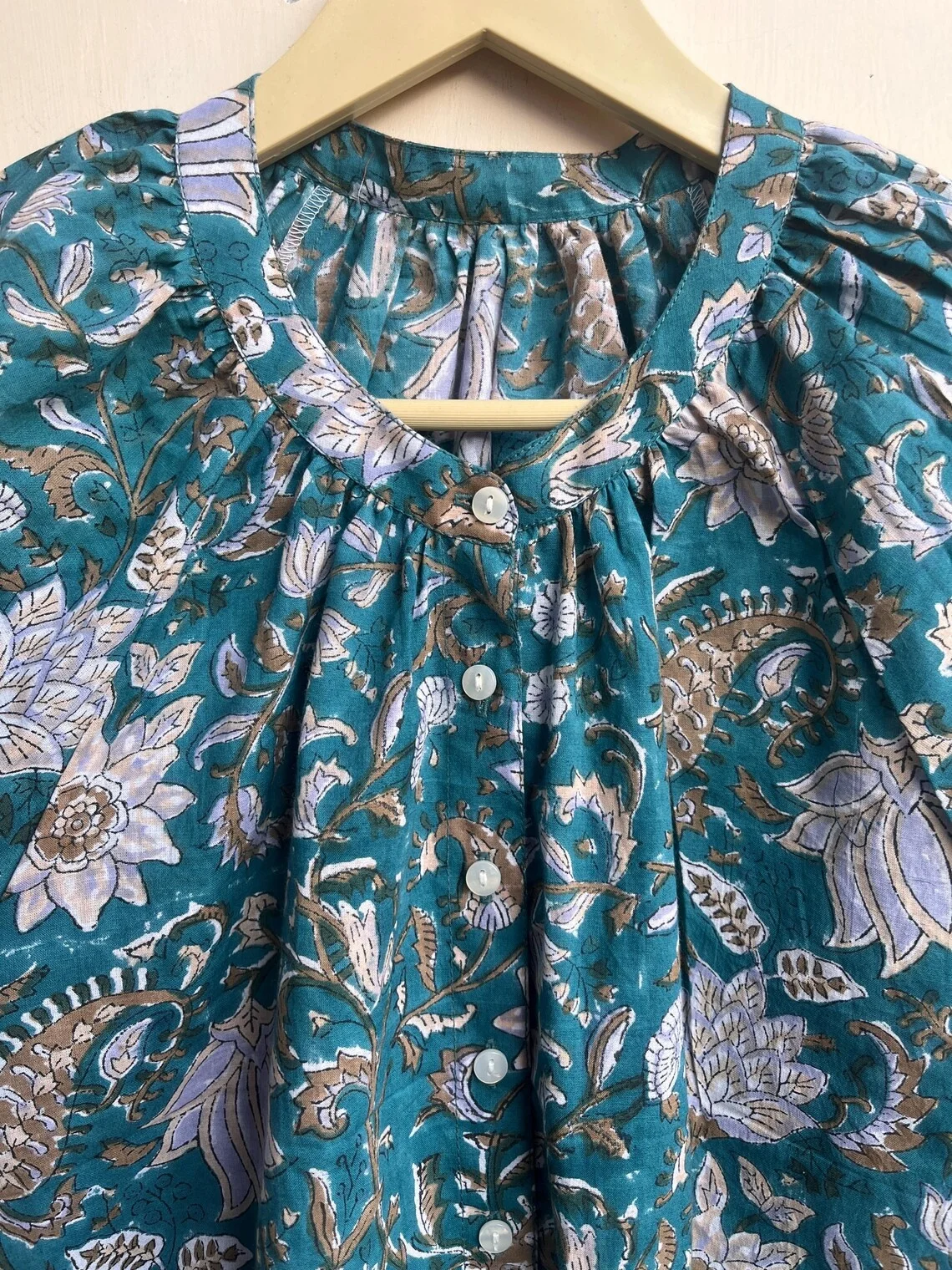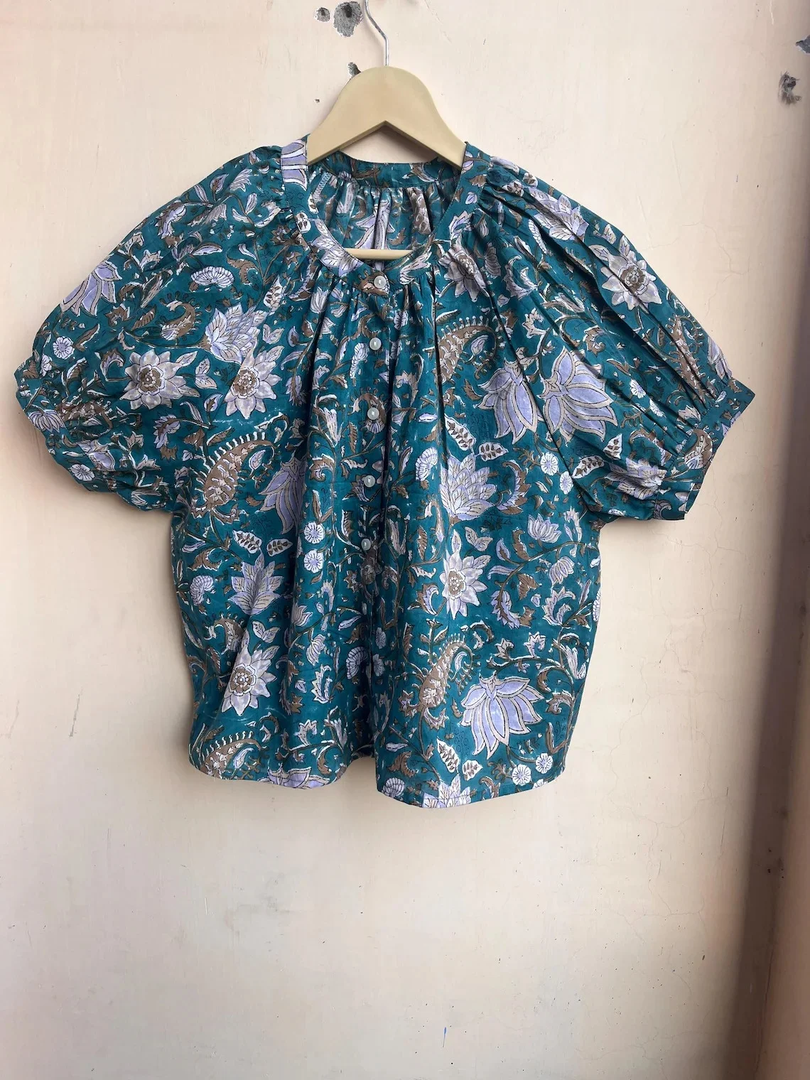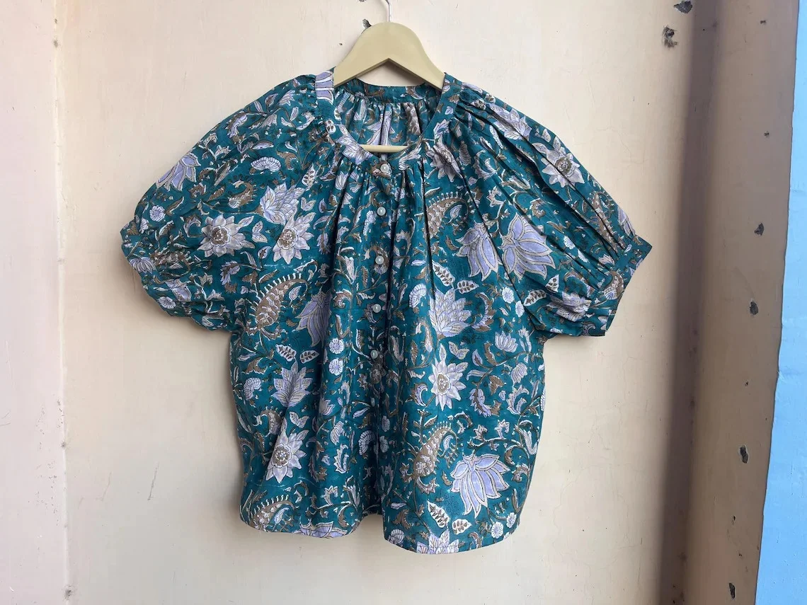 Hand Block Printed Top Summer Top Cotton Women Top Handmade Cotton Blouse Round Neck Short Sleeve Casual Top Gift For Her