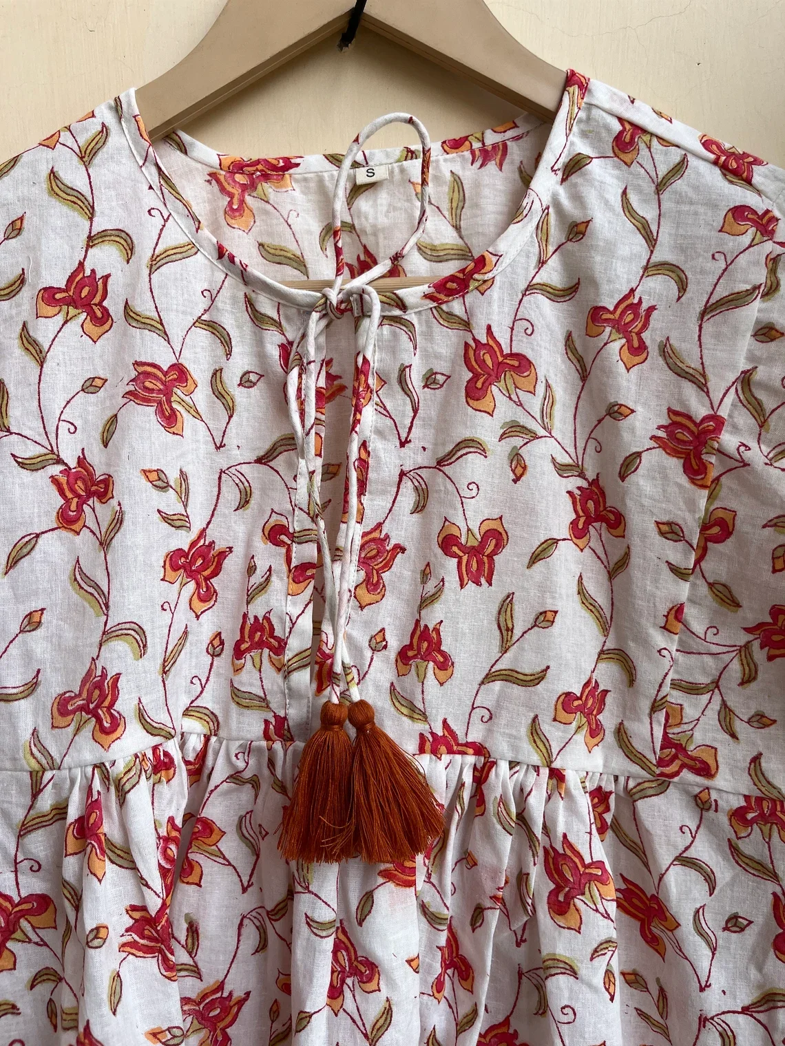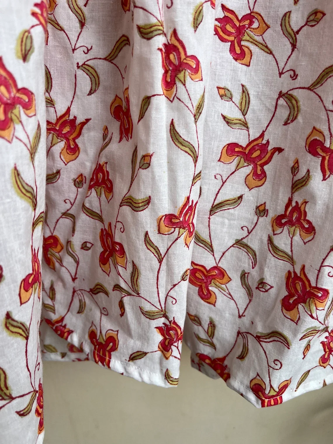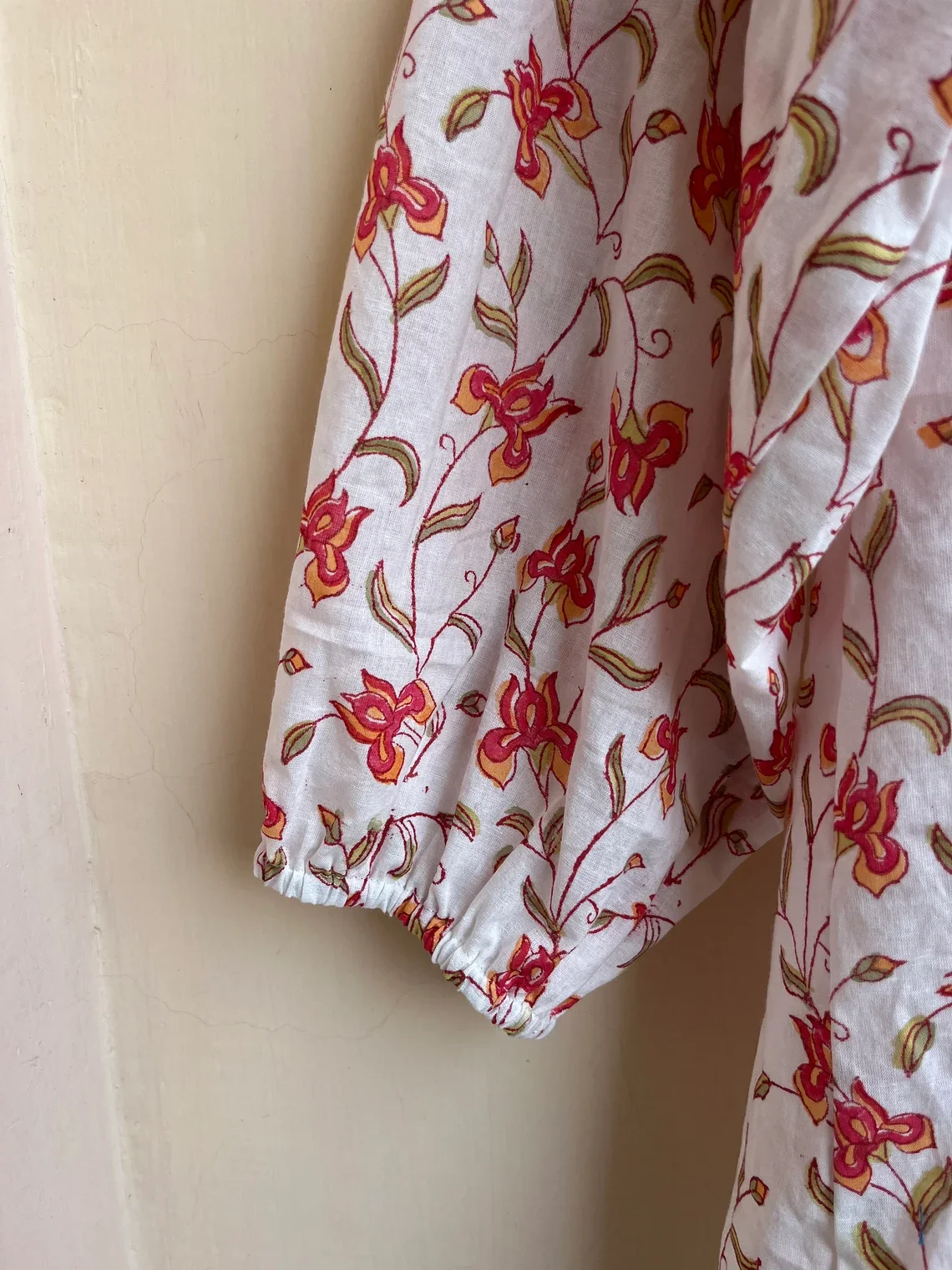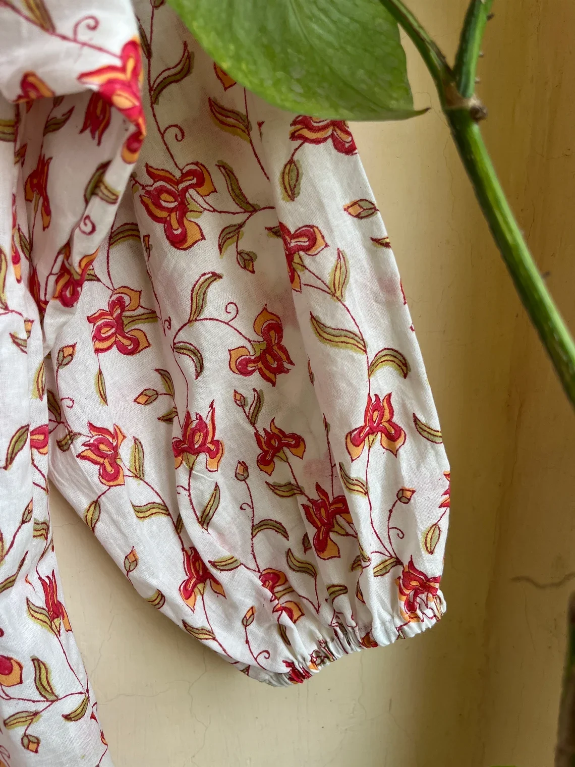 Hand Block Printed Top Summer Cotton Women Top Floral Print Mandarin Collar Long Sleeve Casual Top Gift For Her