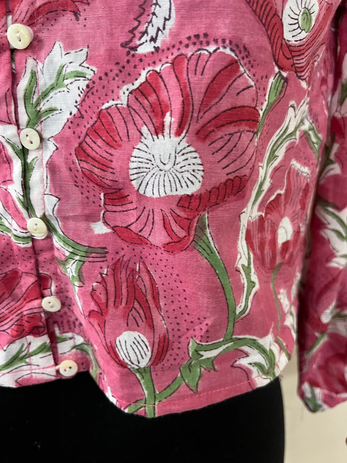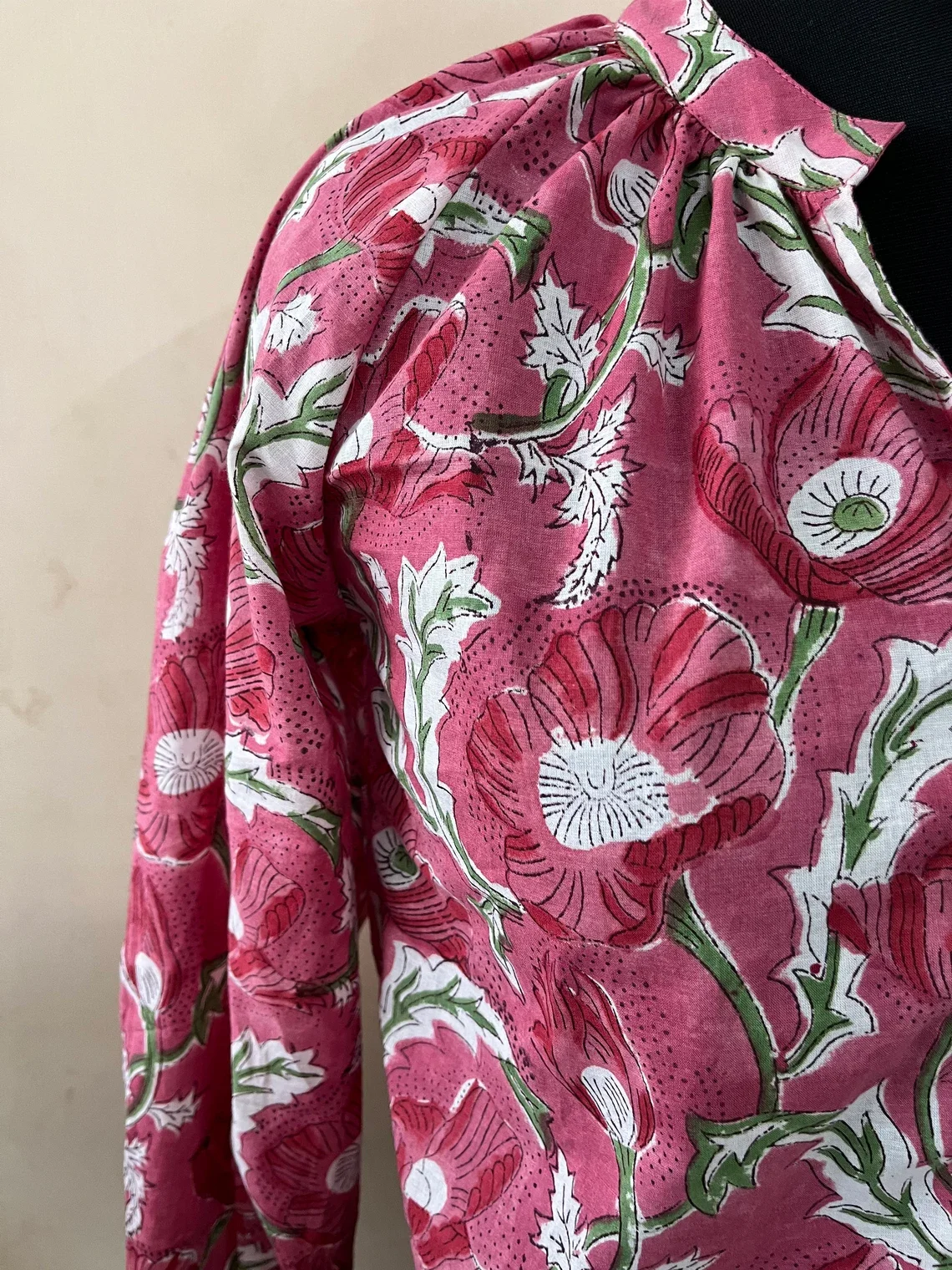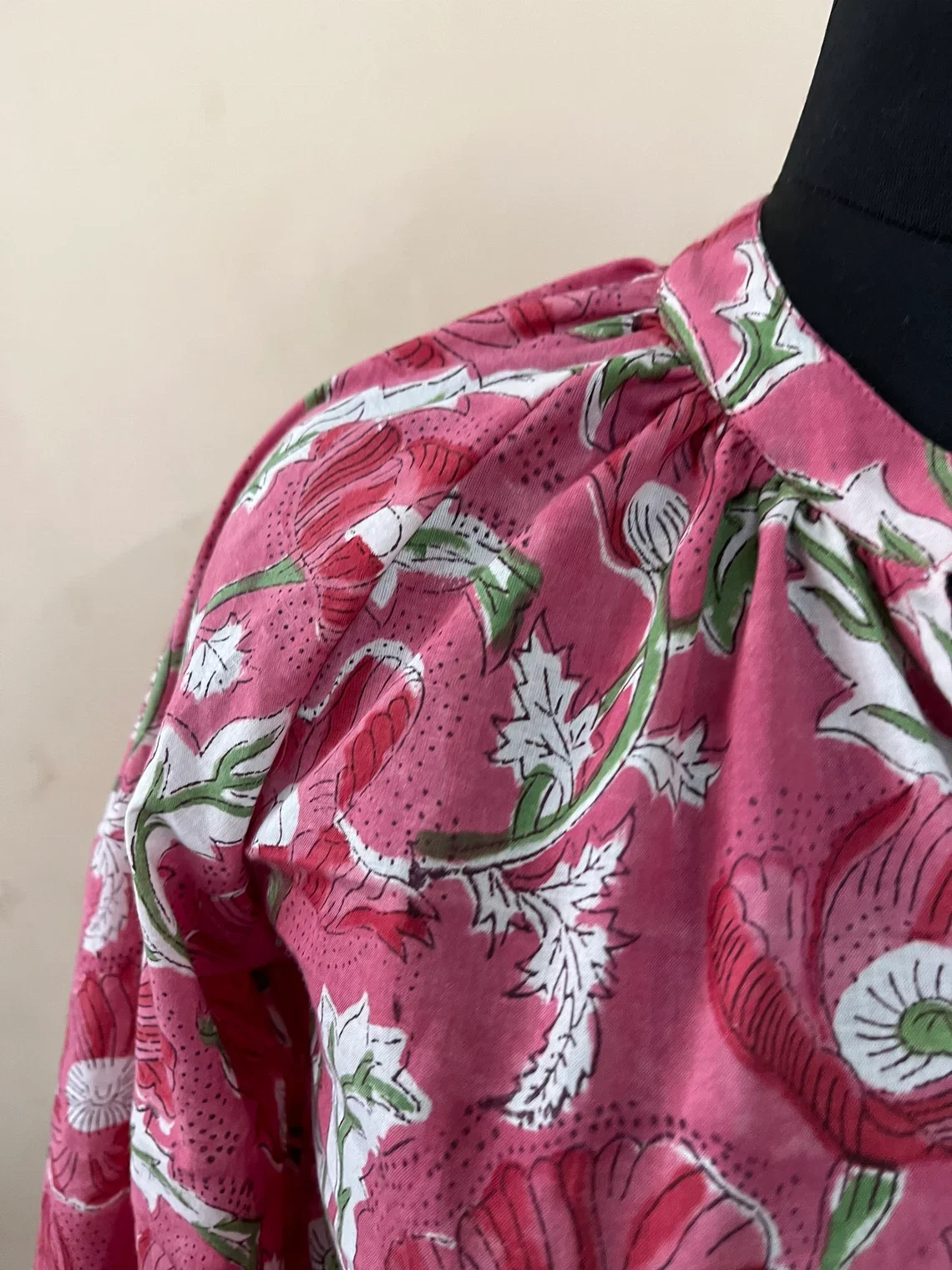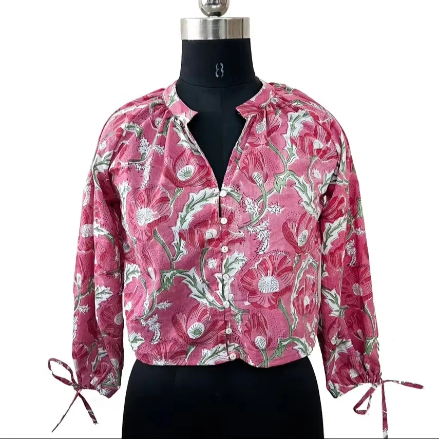 Hand Block Printed Summer Top Cotton Top Women Top Handmade Cotton Blouse Floral Print V-neck Long Sleeve Top Gift For Her