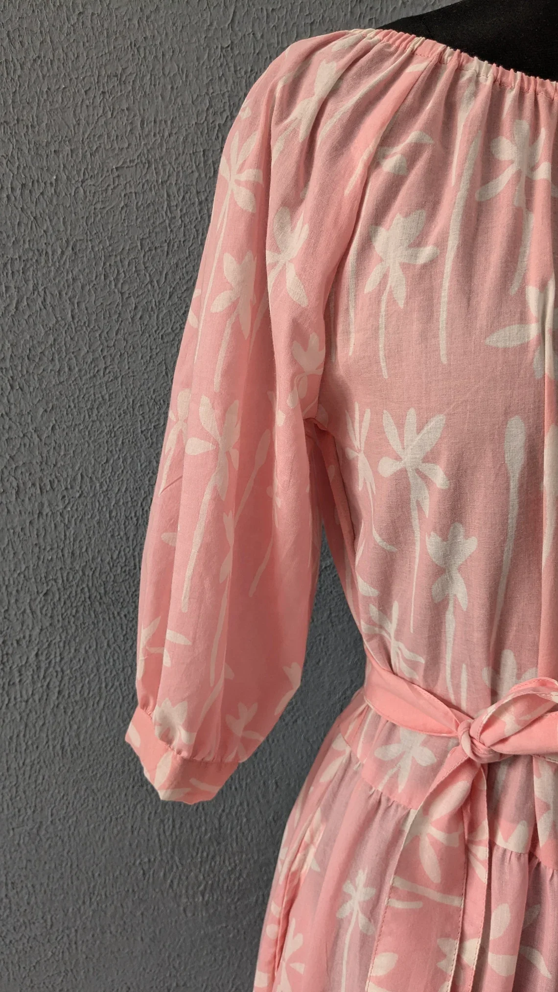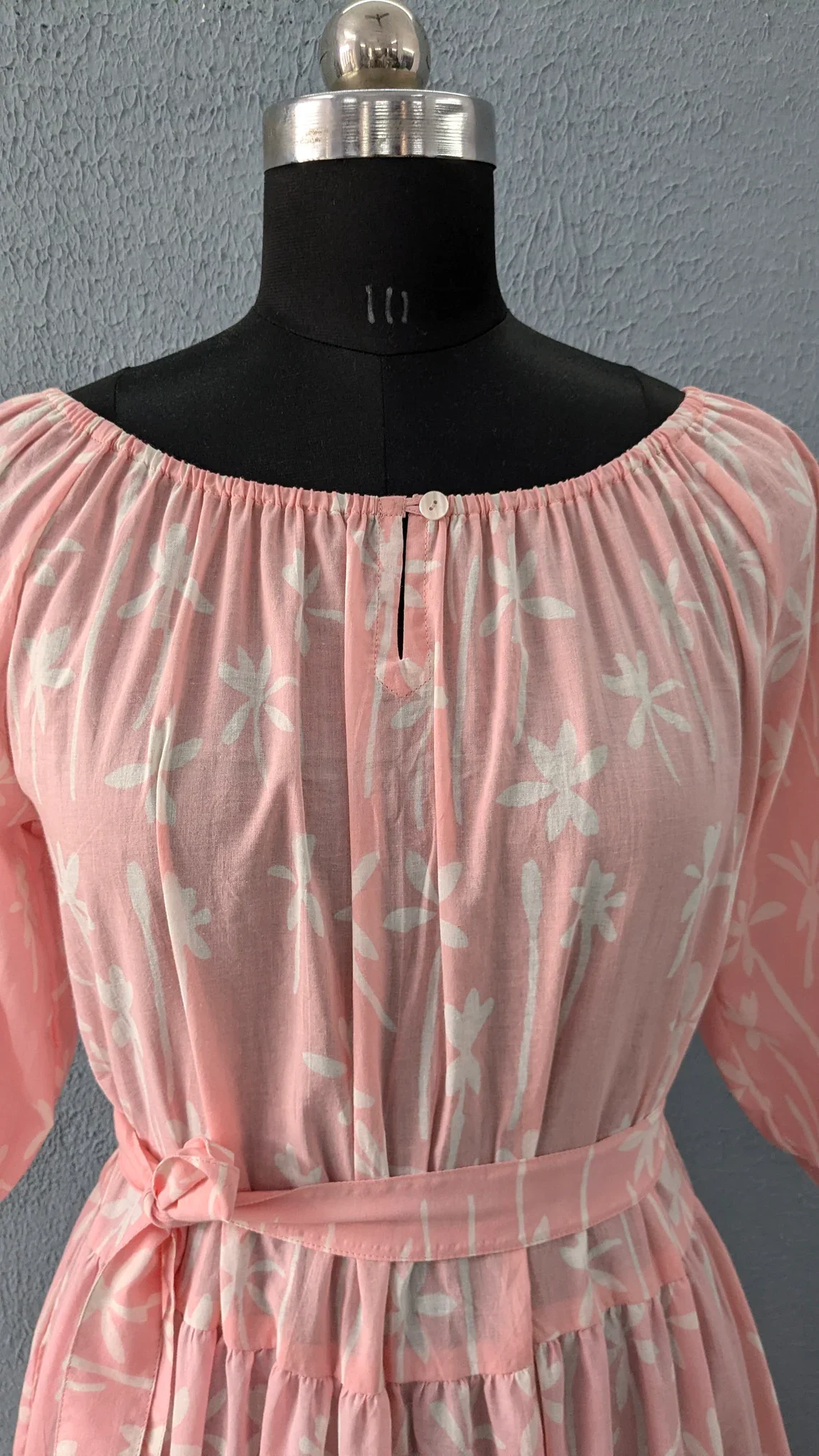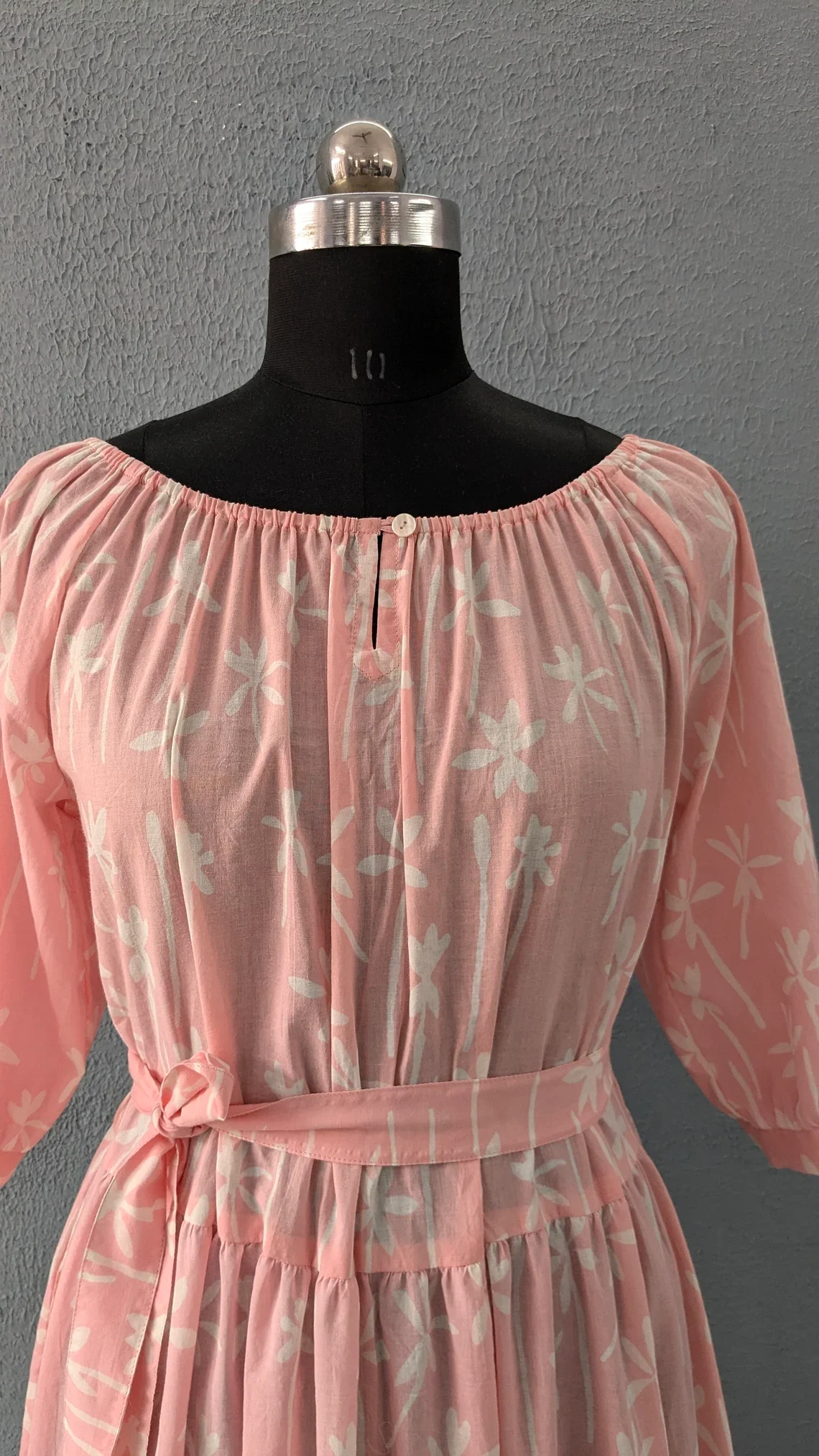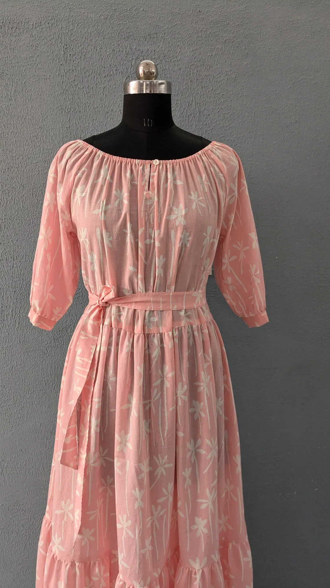 Hand Block Print Cotton Tier Summer Dress O-neck Long Sleeve Floral Print Cotton Maxi Dress For Women Gift For Her