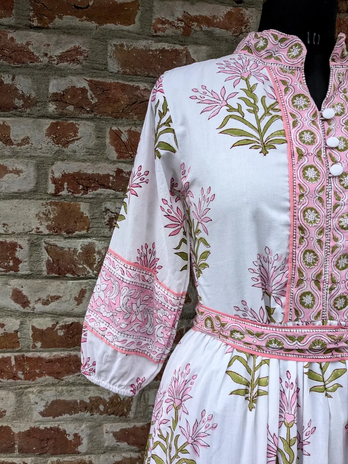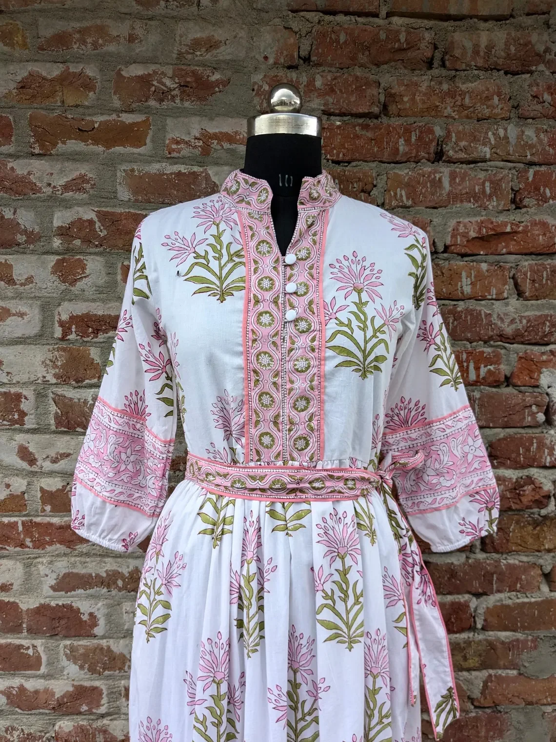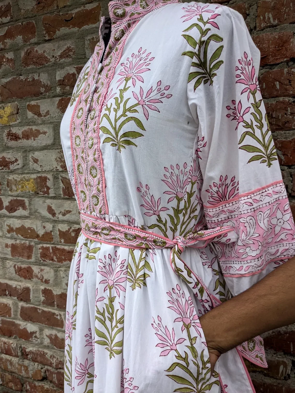 Block Print Dress Floral Dress With Pocket And Belt V-neck Long Sleeve Floral Print Cotton Maxi Dress For Women Gift For Her