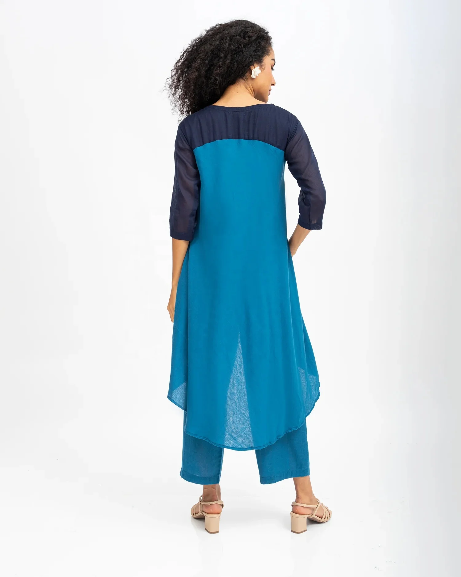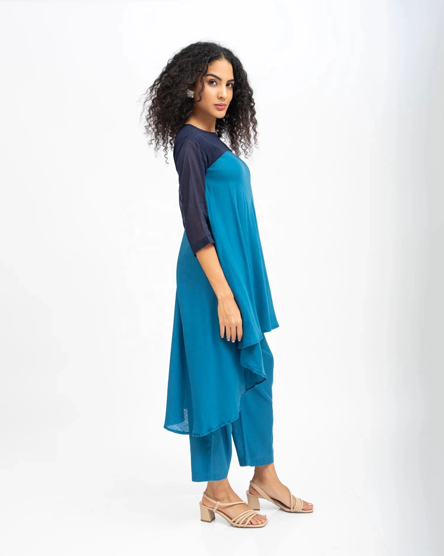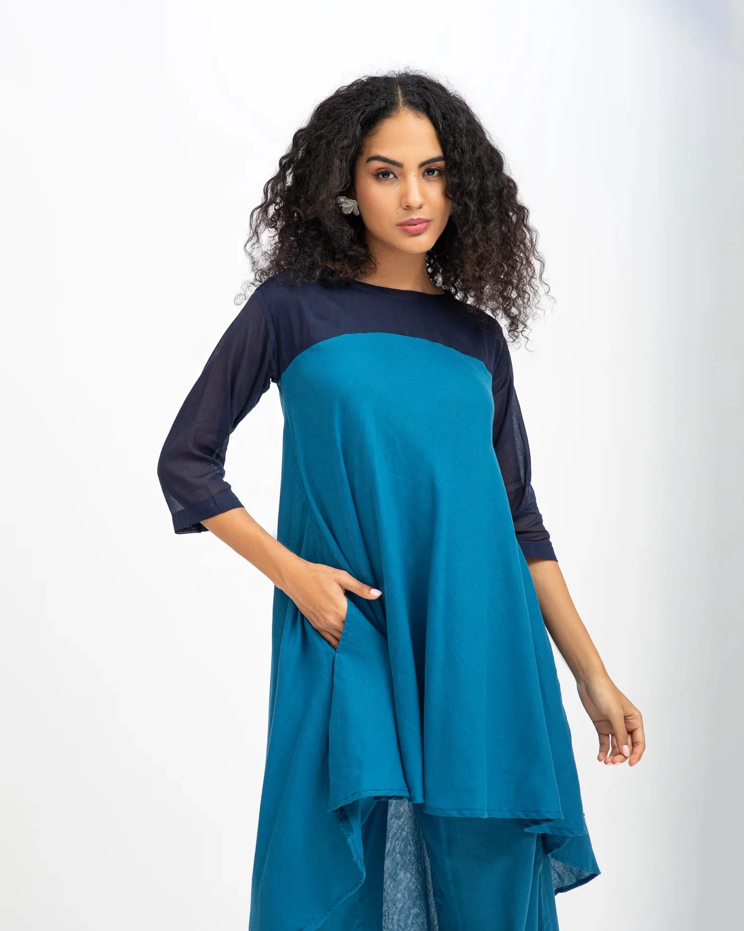 Women's Casual Solid Georgette Ethnic Top O-Neck Kurta with Asymmetrical Hem and Slit Tie Dye Embellished for Summer Season