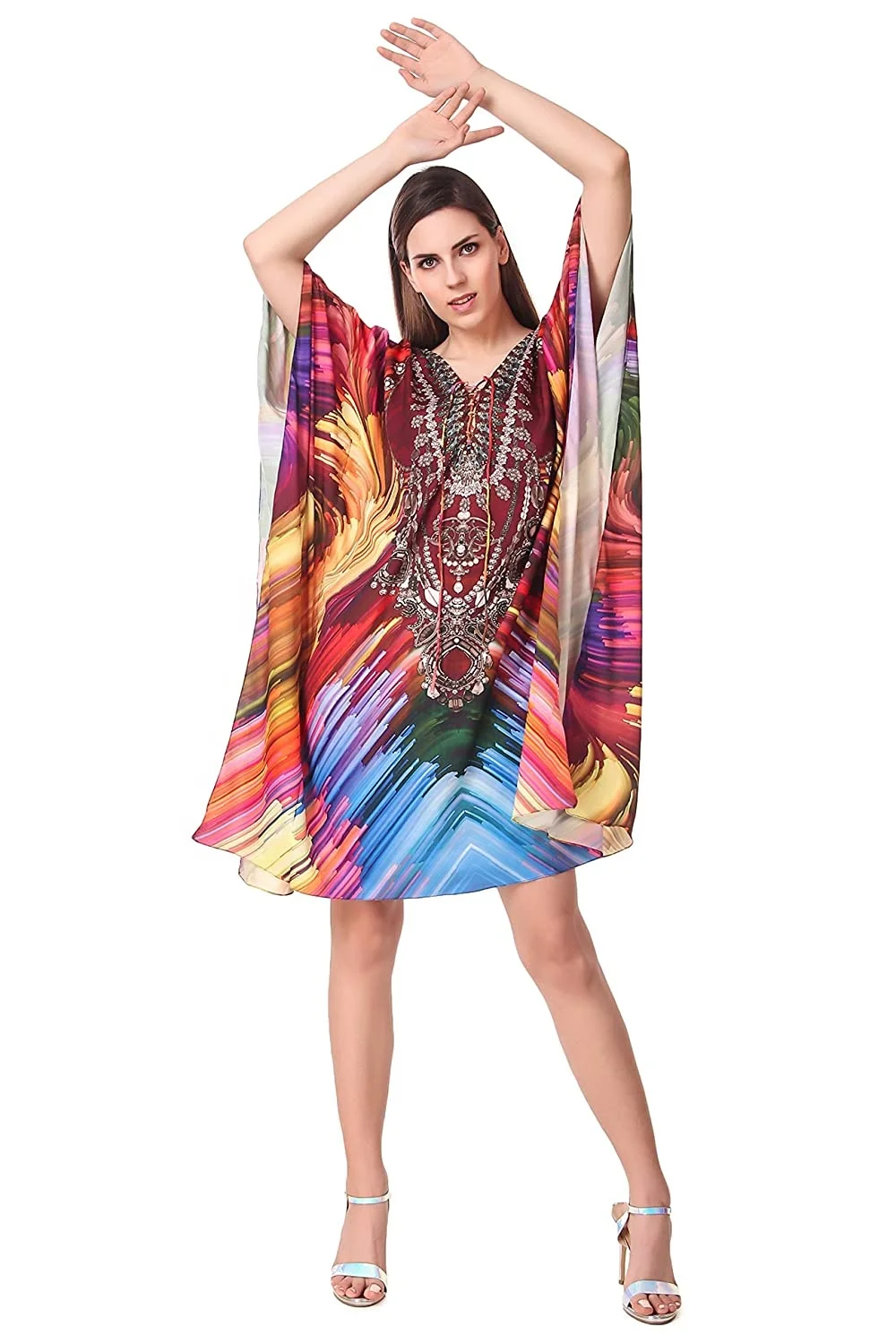 Indian Handmade Turkey Evening Dresses V-neck Short Sleeve Embroidery Abaya Kaftan Muslim Dress for Women