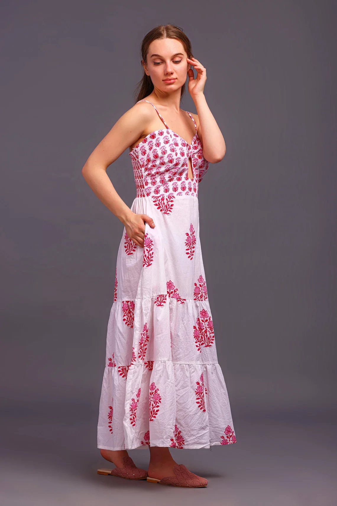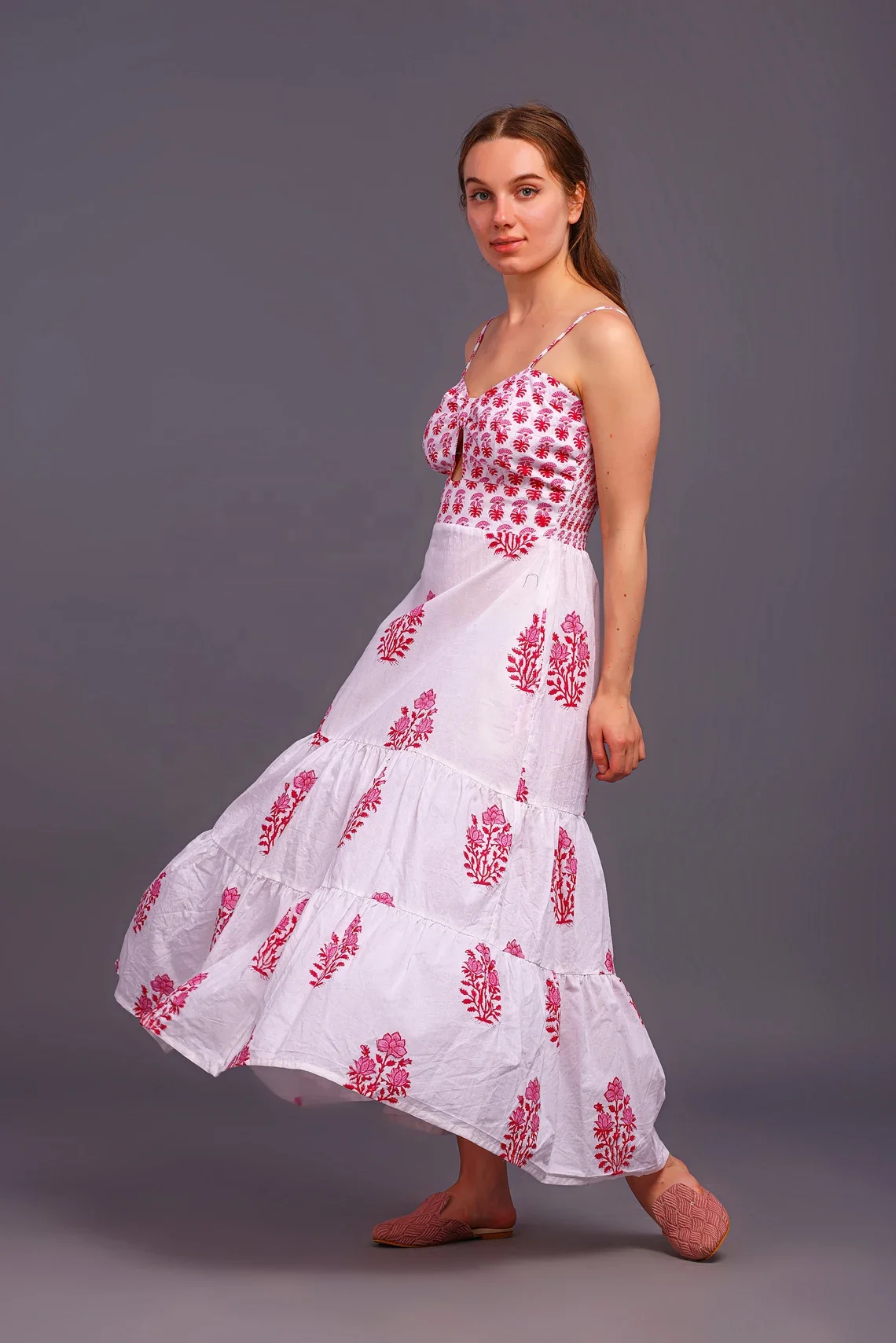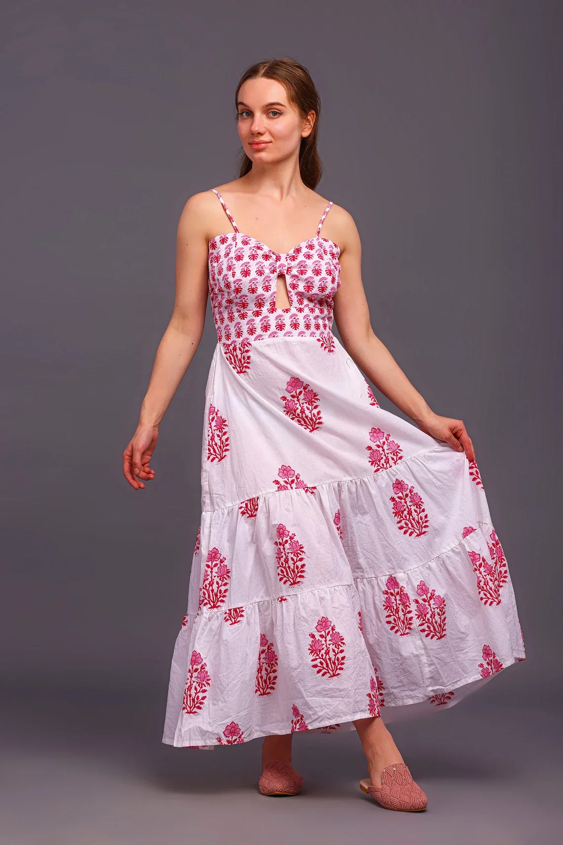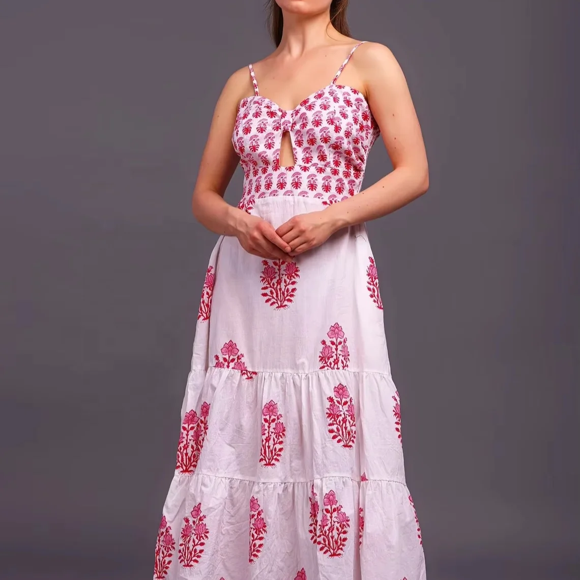 Indian Block Print Cotton Maxi Dress for Women Floral Cotton Dress for Summer and Autumn Season Sustainable Long Maxi Dress