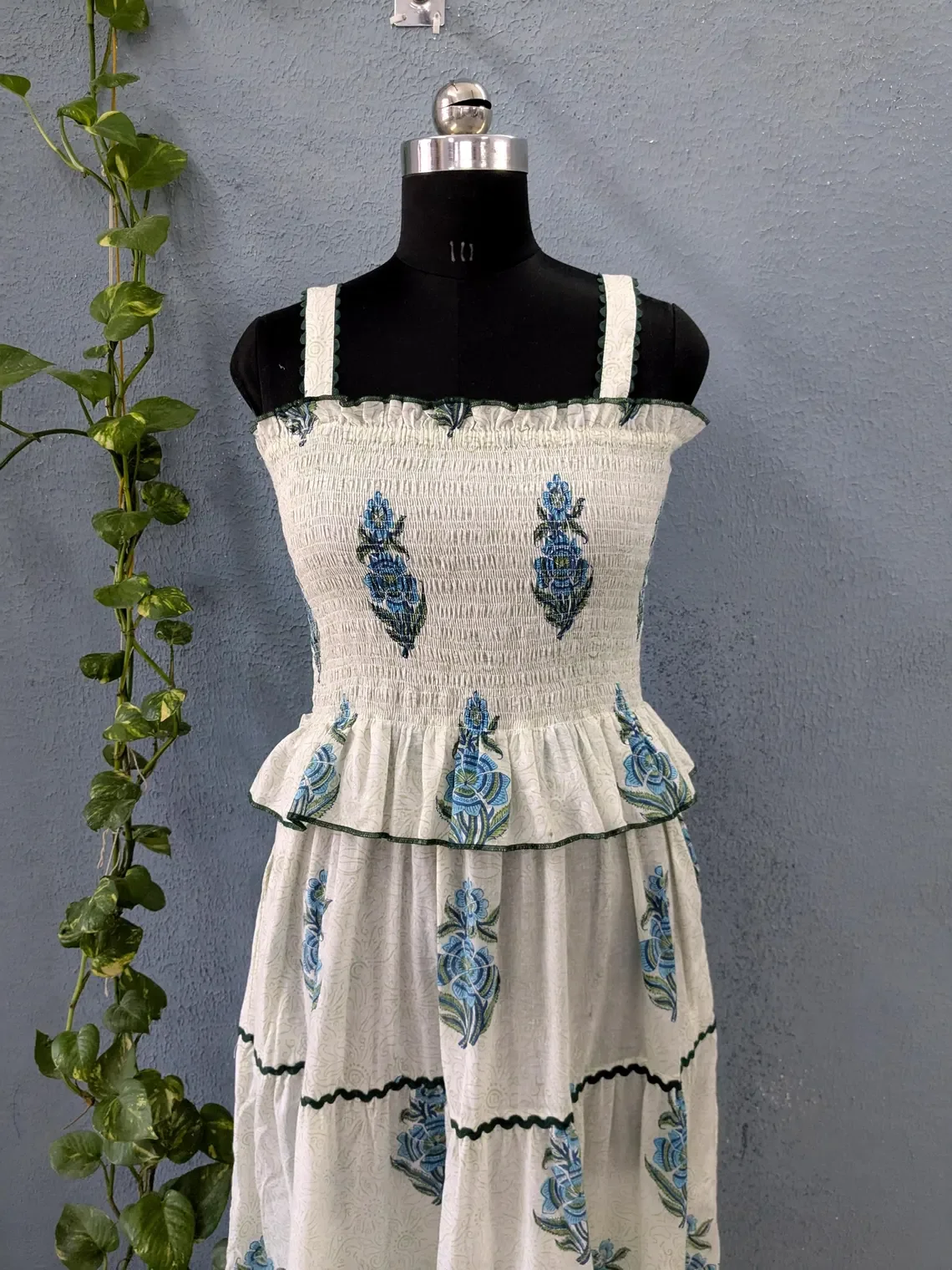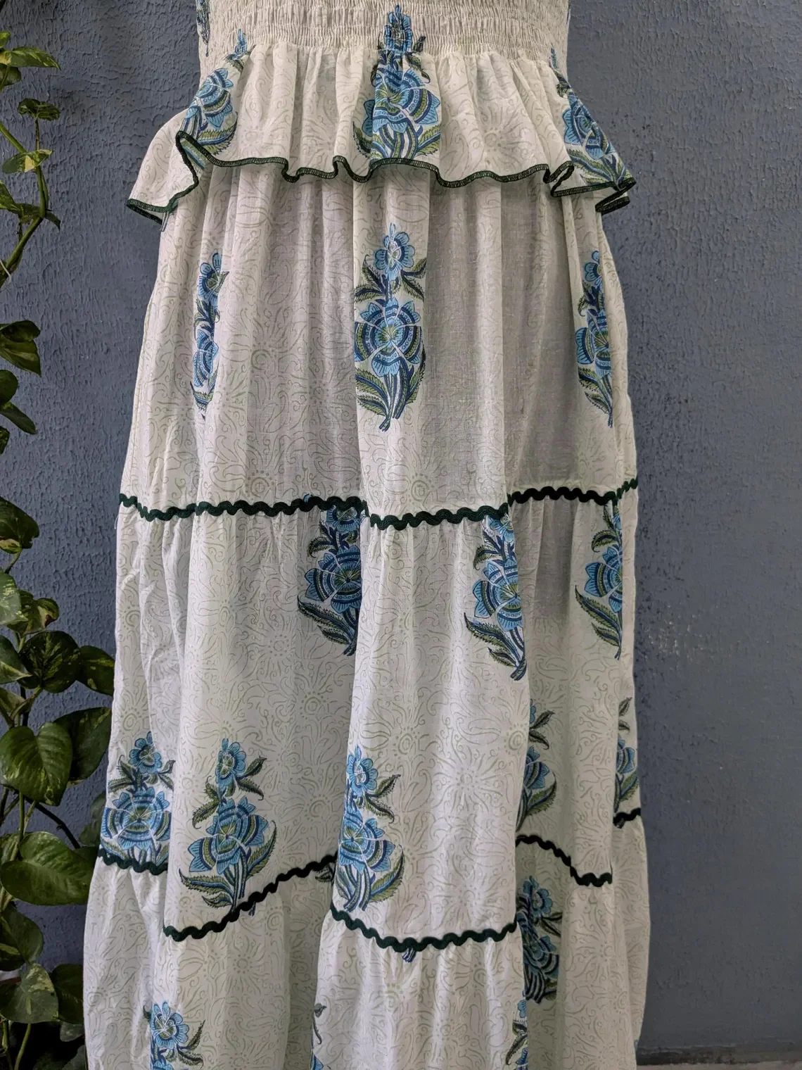 Indian Hand Block Printed Solid Pattern Maxi Dress Pure Cotton Knitted Fabric Winter and Autumn Season Versatile Dress