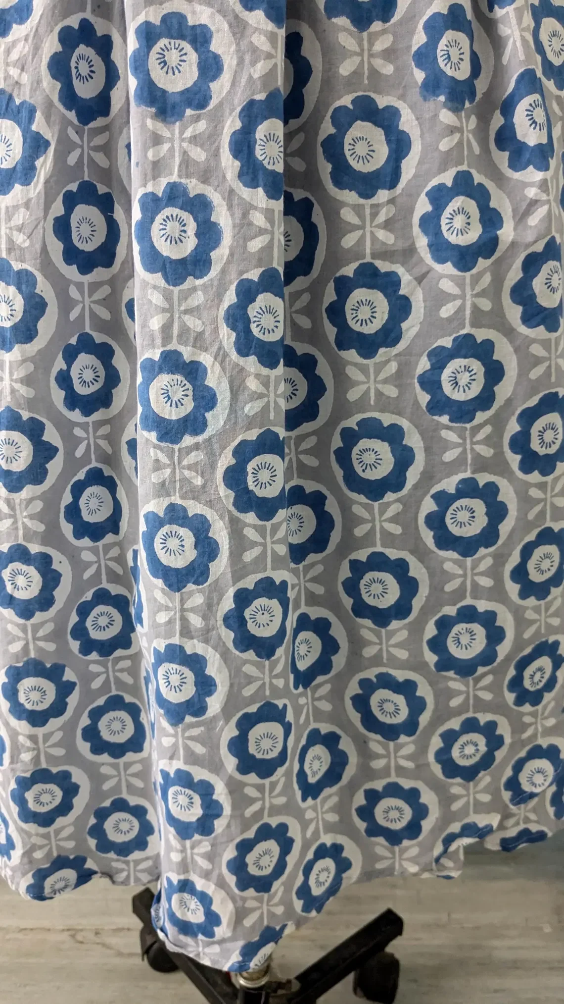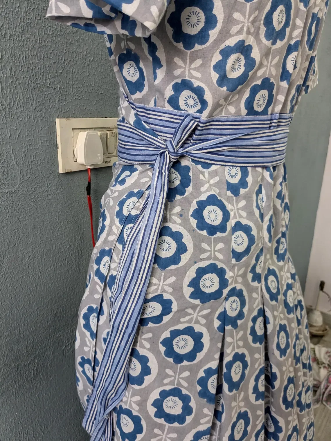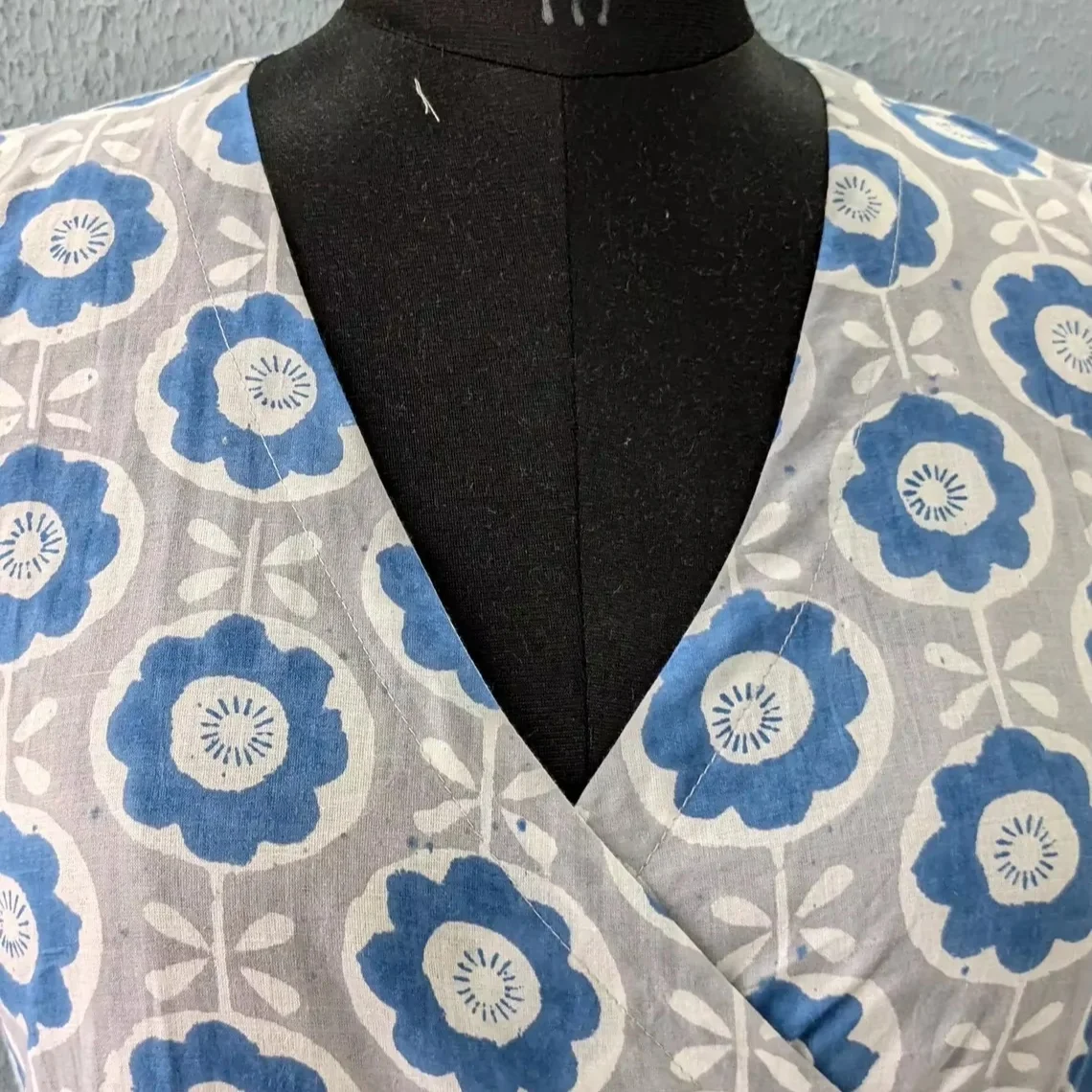 Hand Block Printed Women's Navy Blue V-Neck Wrap Maxi Dress with Belt and Pocket Floral Print Dress Gift For Her