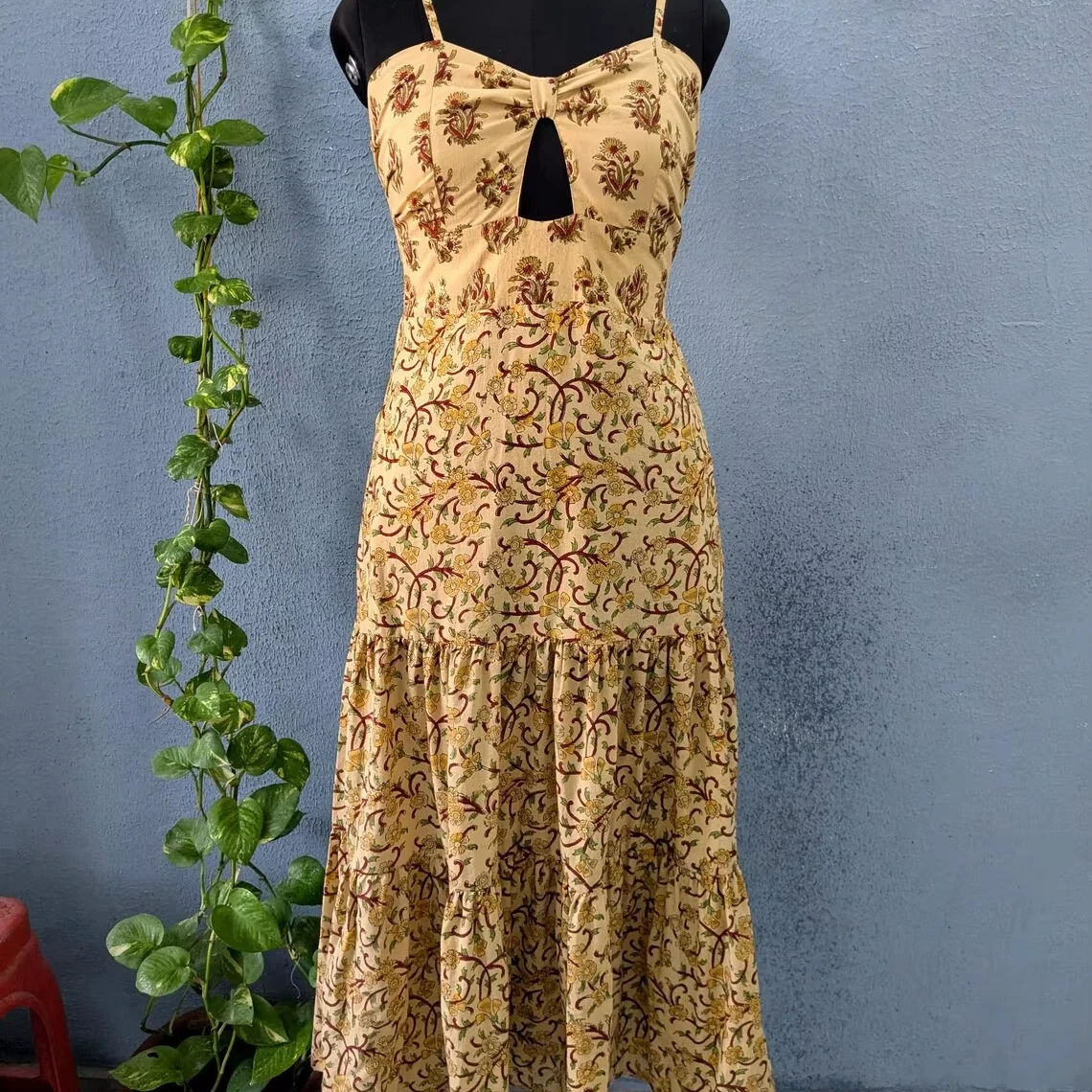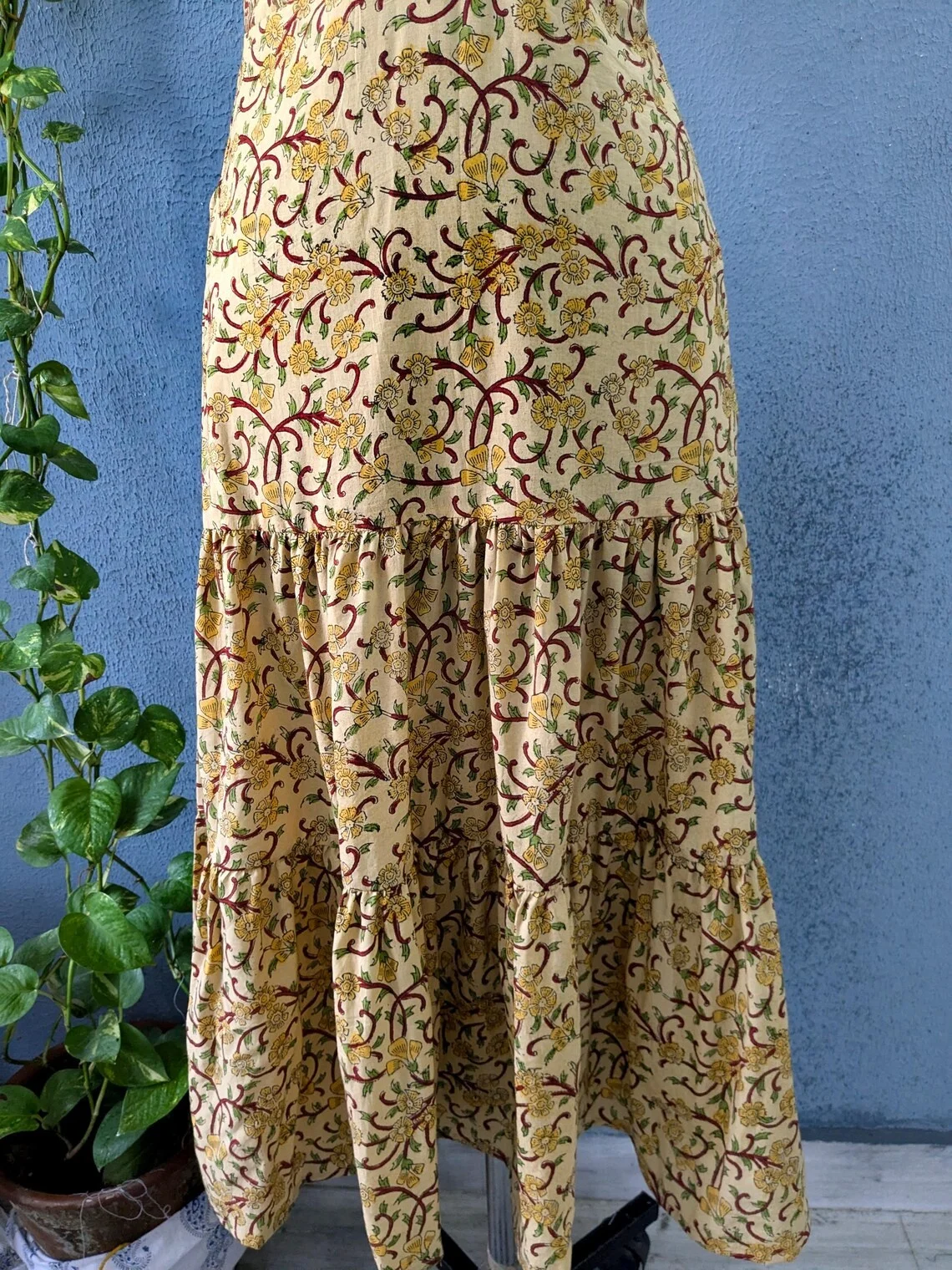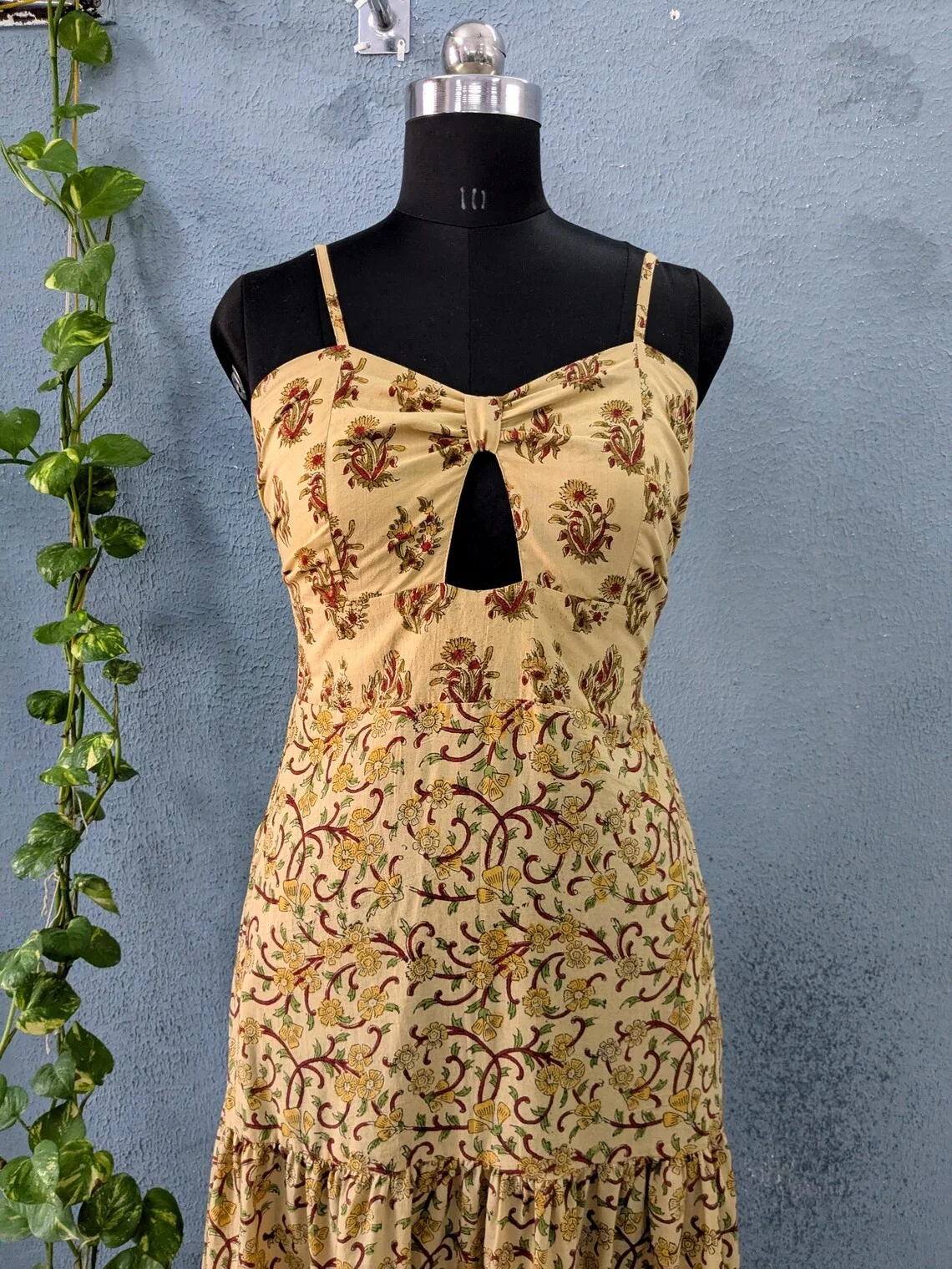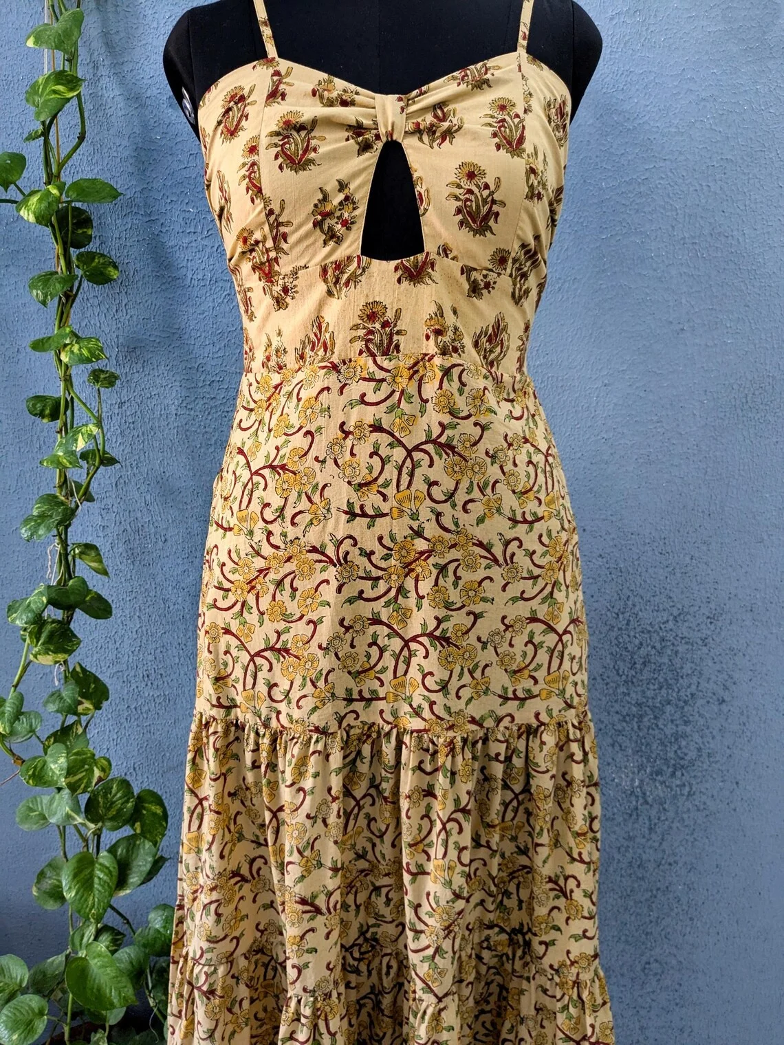 Handmade 100% Cotton Women Lightweight Block Print Dress Strap Long Maxi Dress For Summer Season