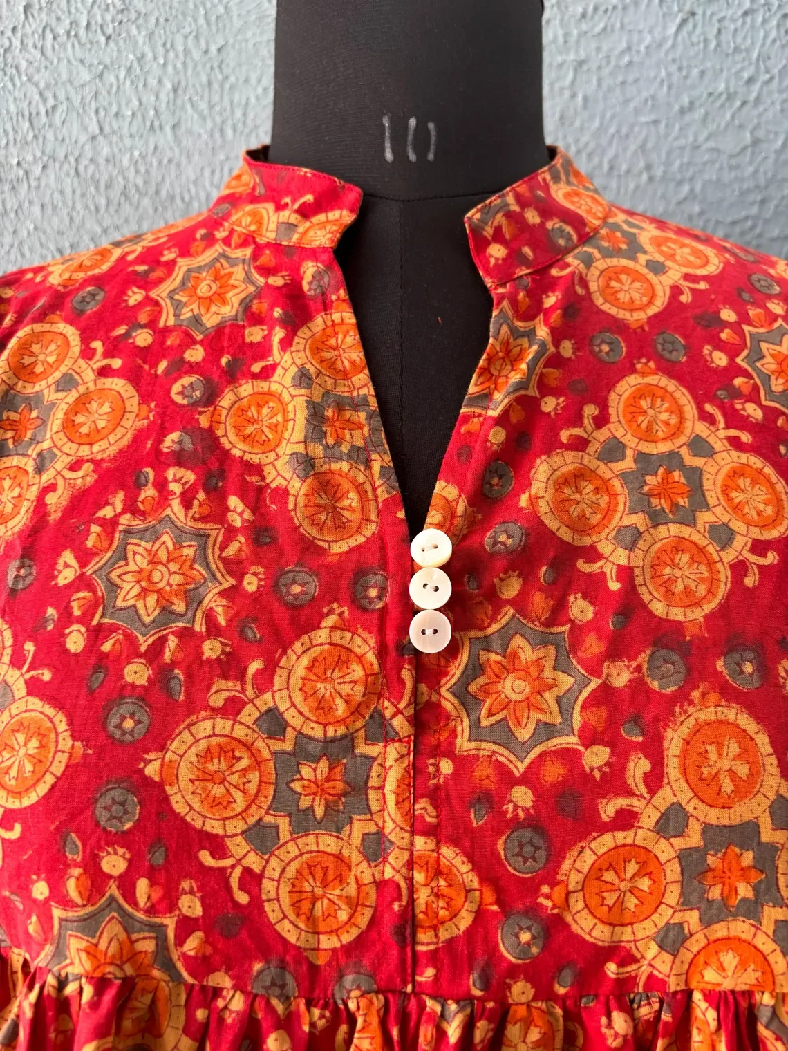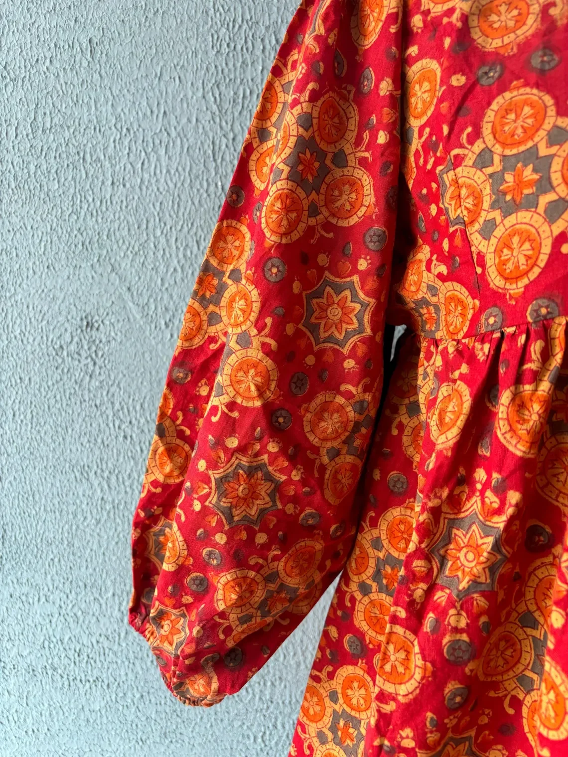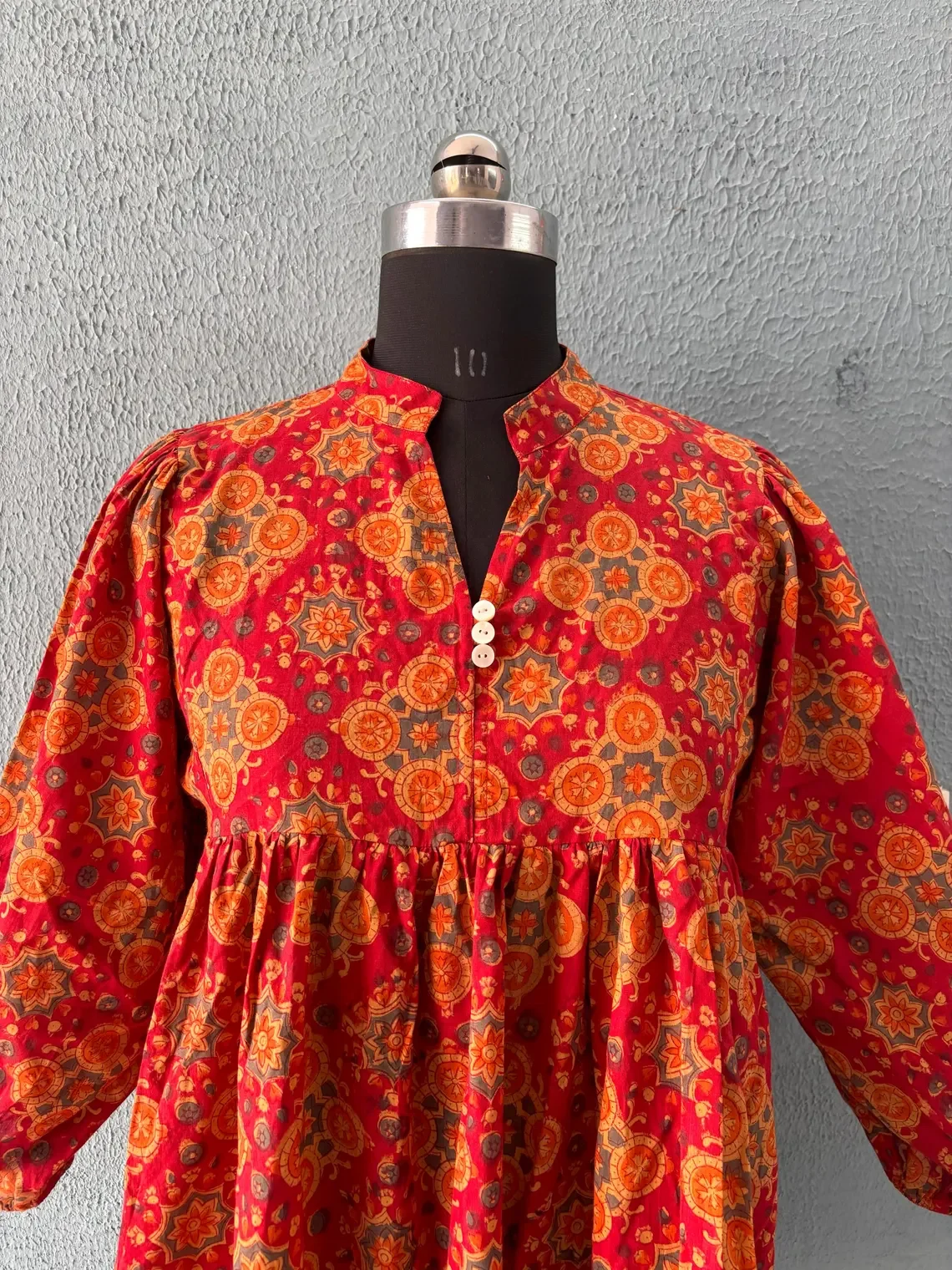 Ethically Handcrafted in India Block Printed Blouse Top Pure Cotton-Casual Floral Print V-Neck Long Sleeve Maxi Dress For Women