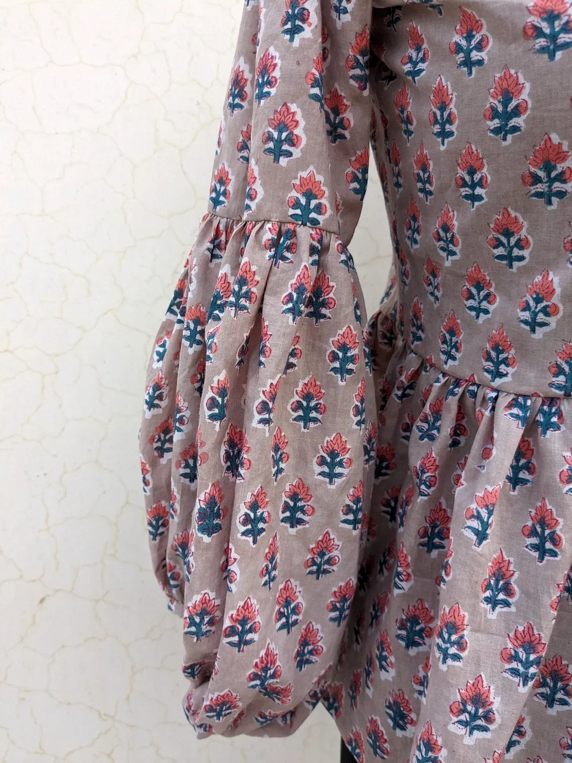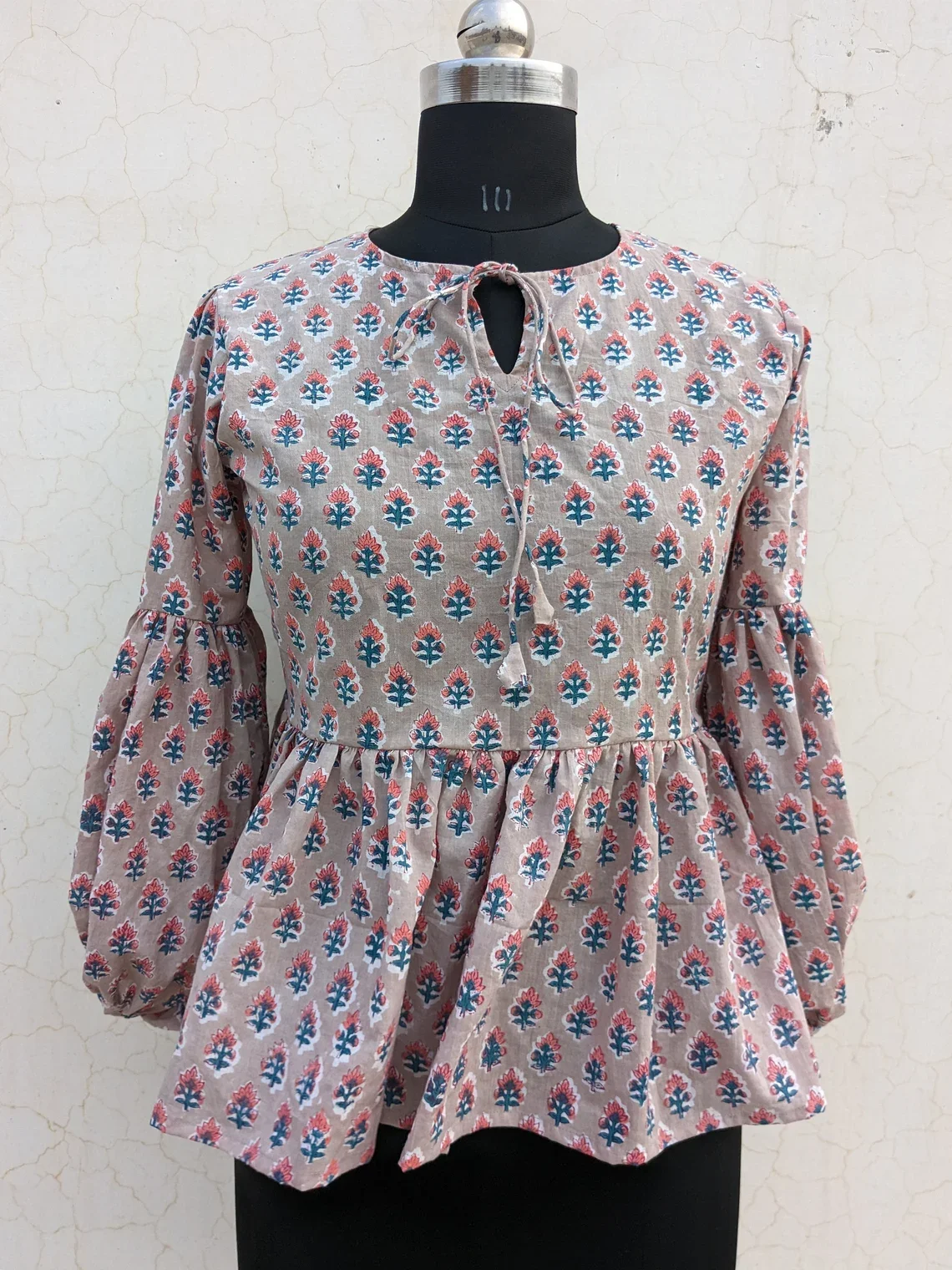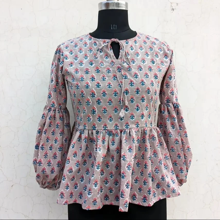 Casual Floral Embroidered Tank Top Hand Block Printed Cotton Blouse Long Sleeve Floral Print Embroidered Top For Women