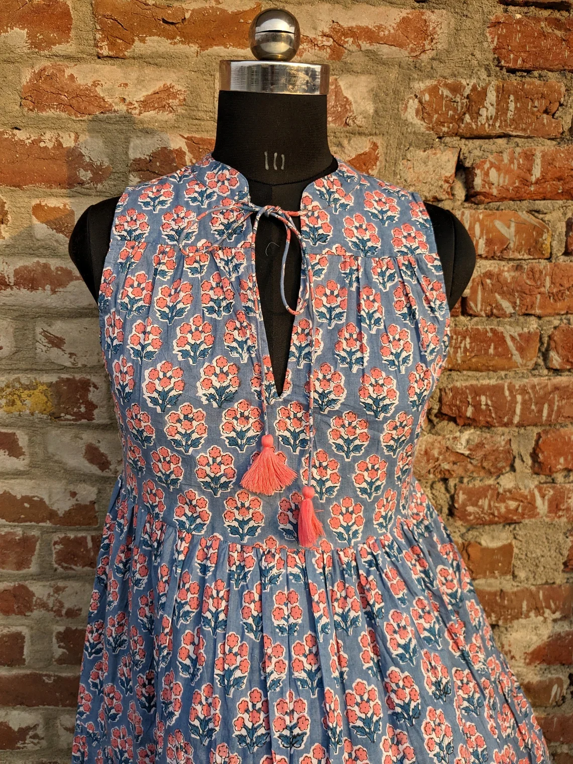 Women Hand-Block Printed Cotton Solid Pattern Maxi Length Tier Dress Made From Sustainable 100% Cotton Autumn/Summer Season