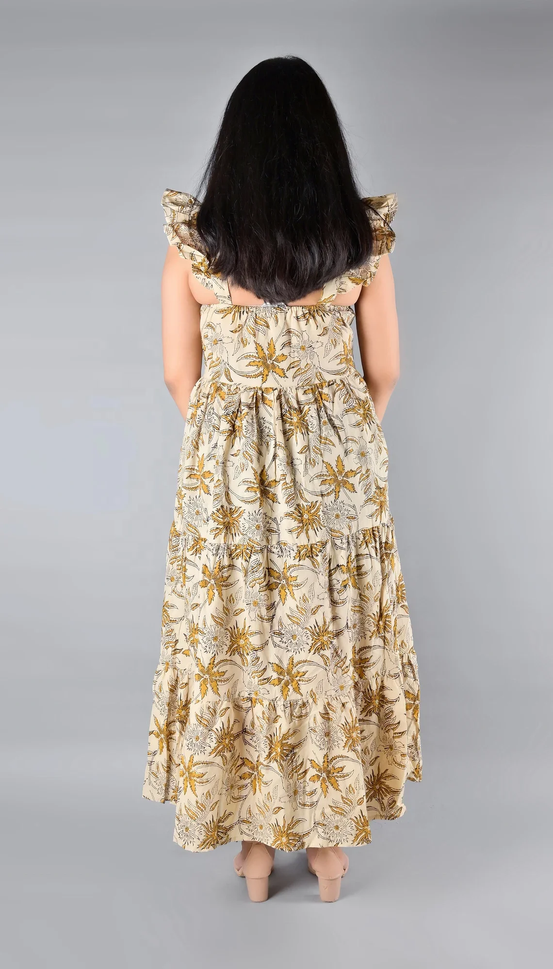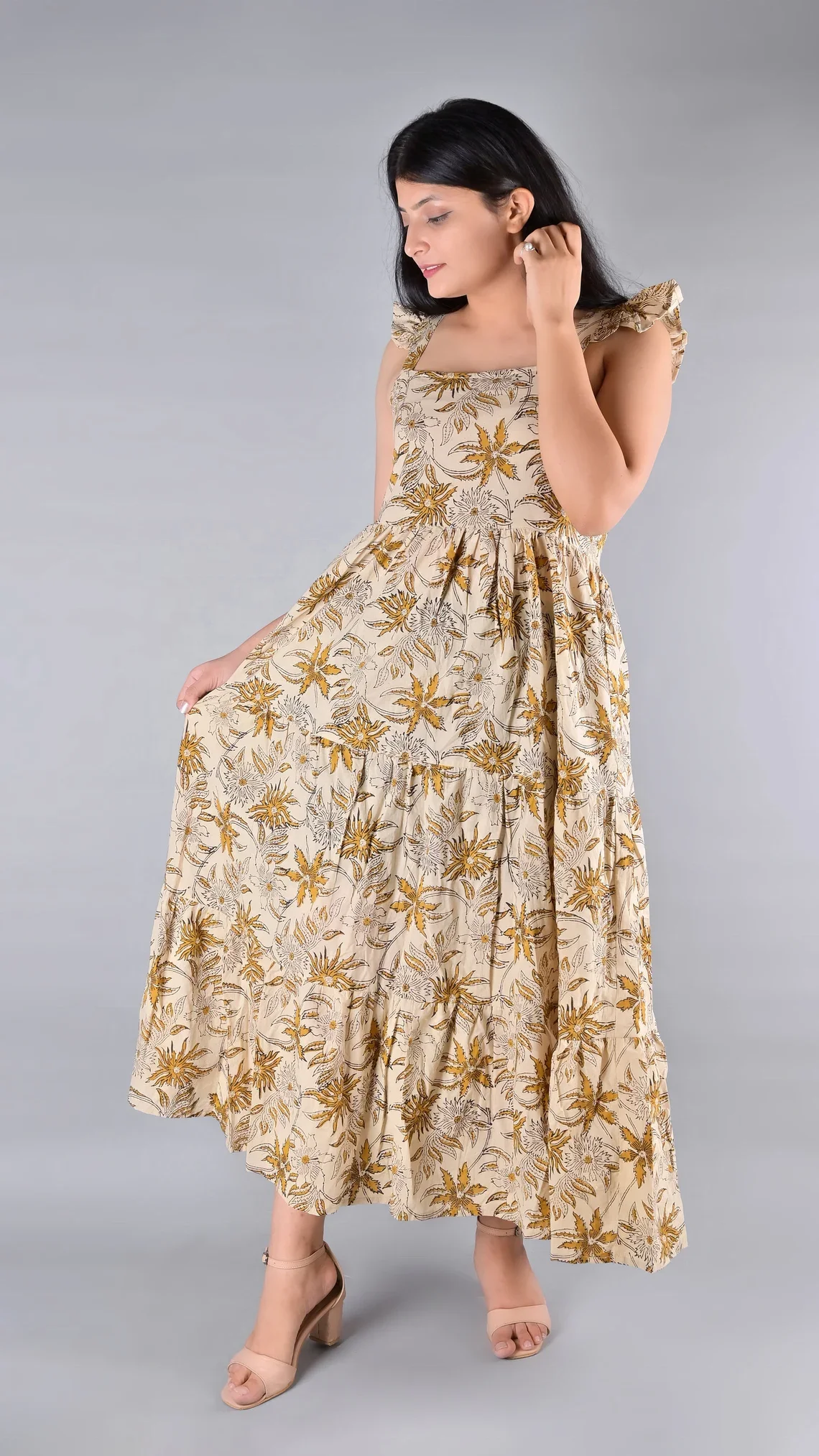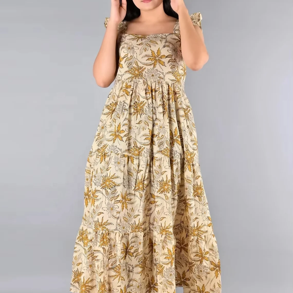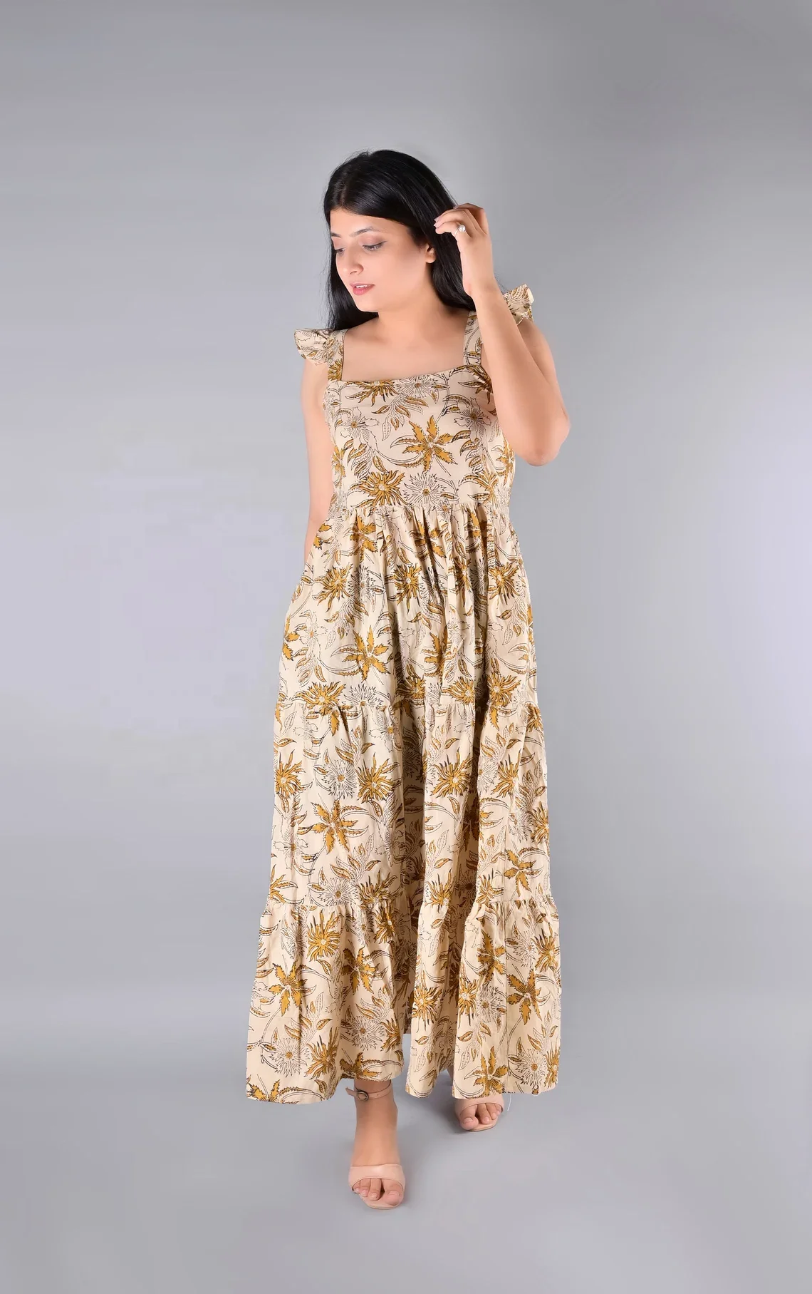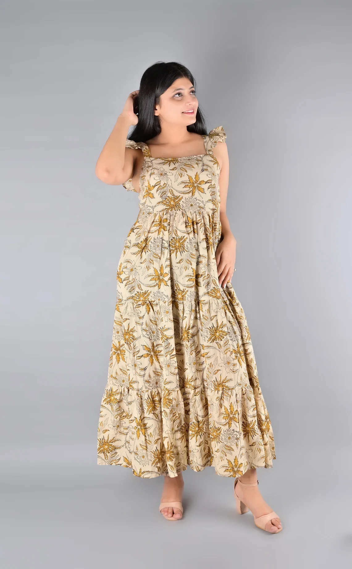 Hand Block Printed Cotton Maxi Dress Solid Color Hippie Sustainable for Fall Summer/Autumn Season Floral Print Long Maxi Dress