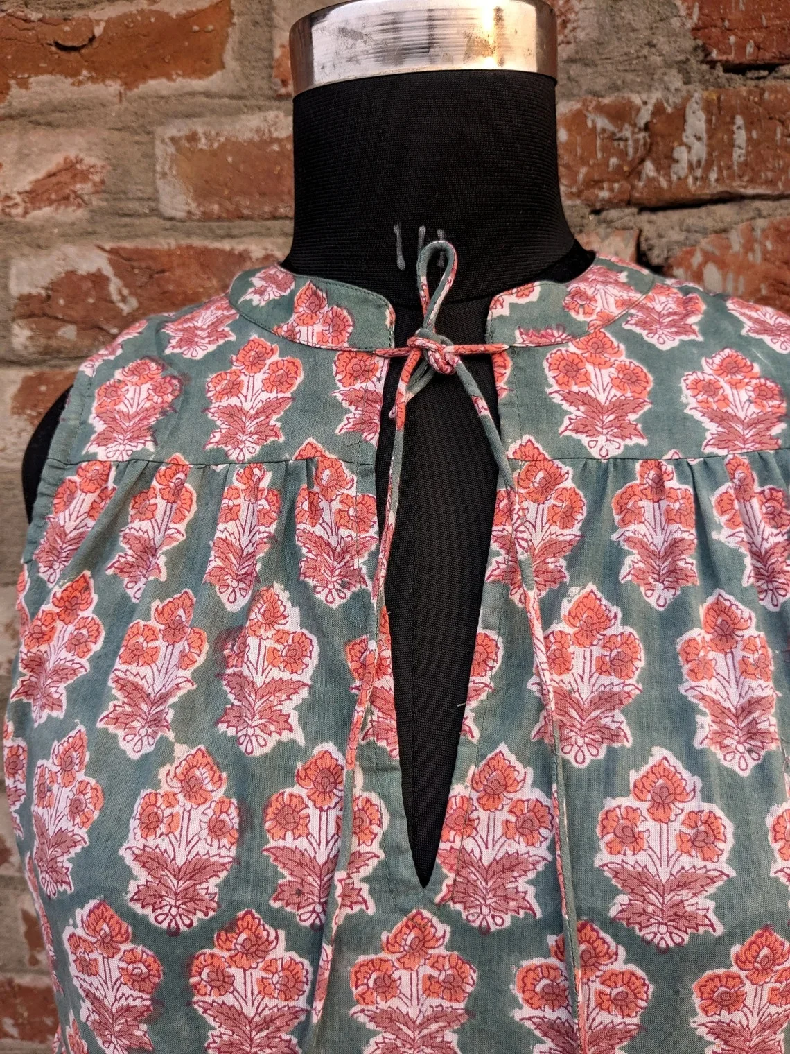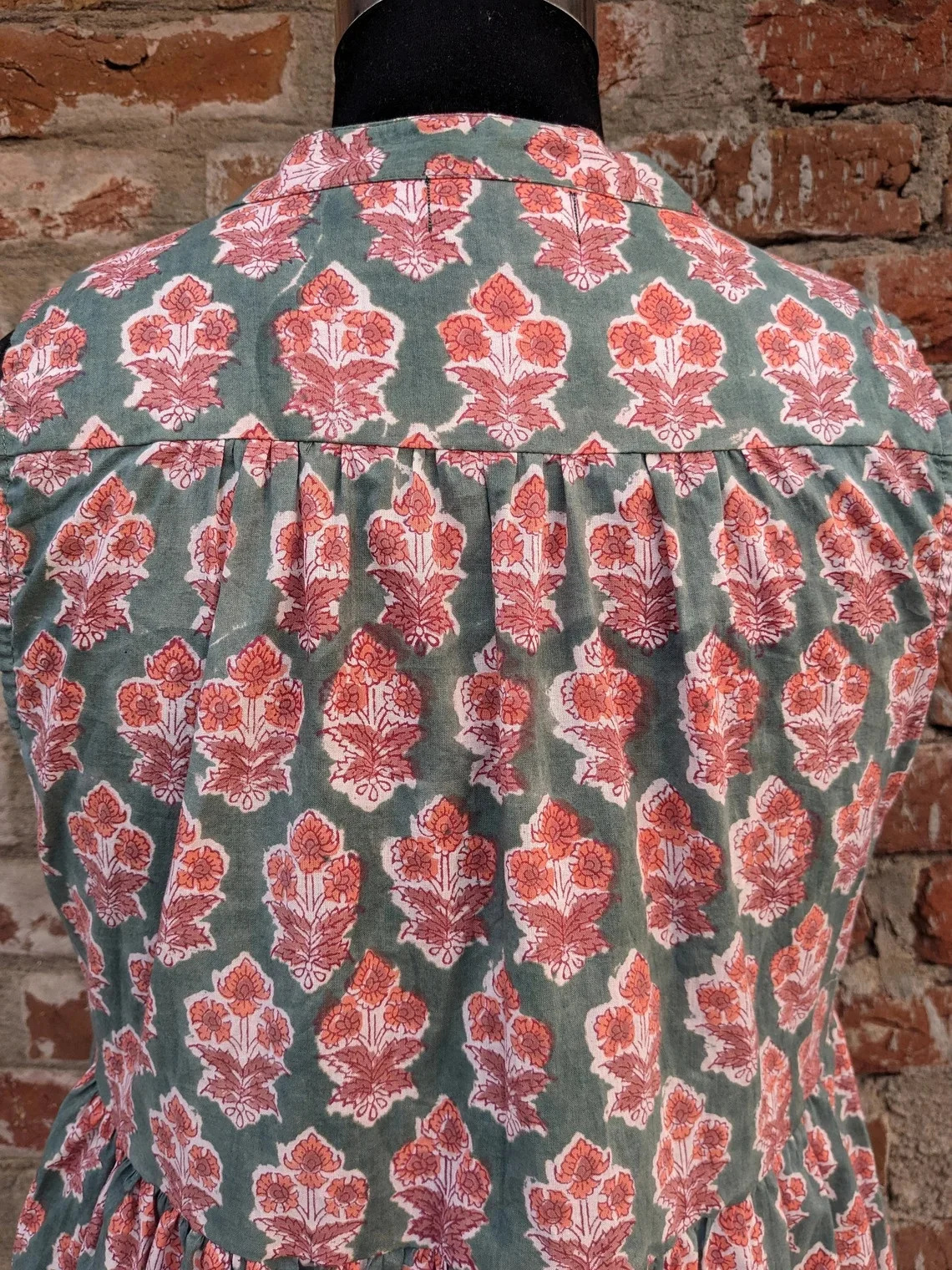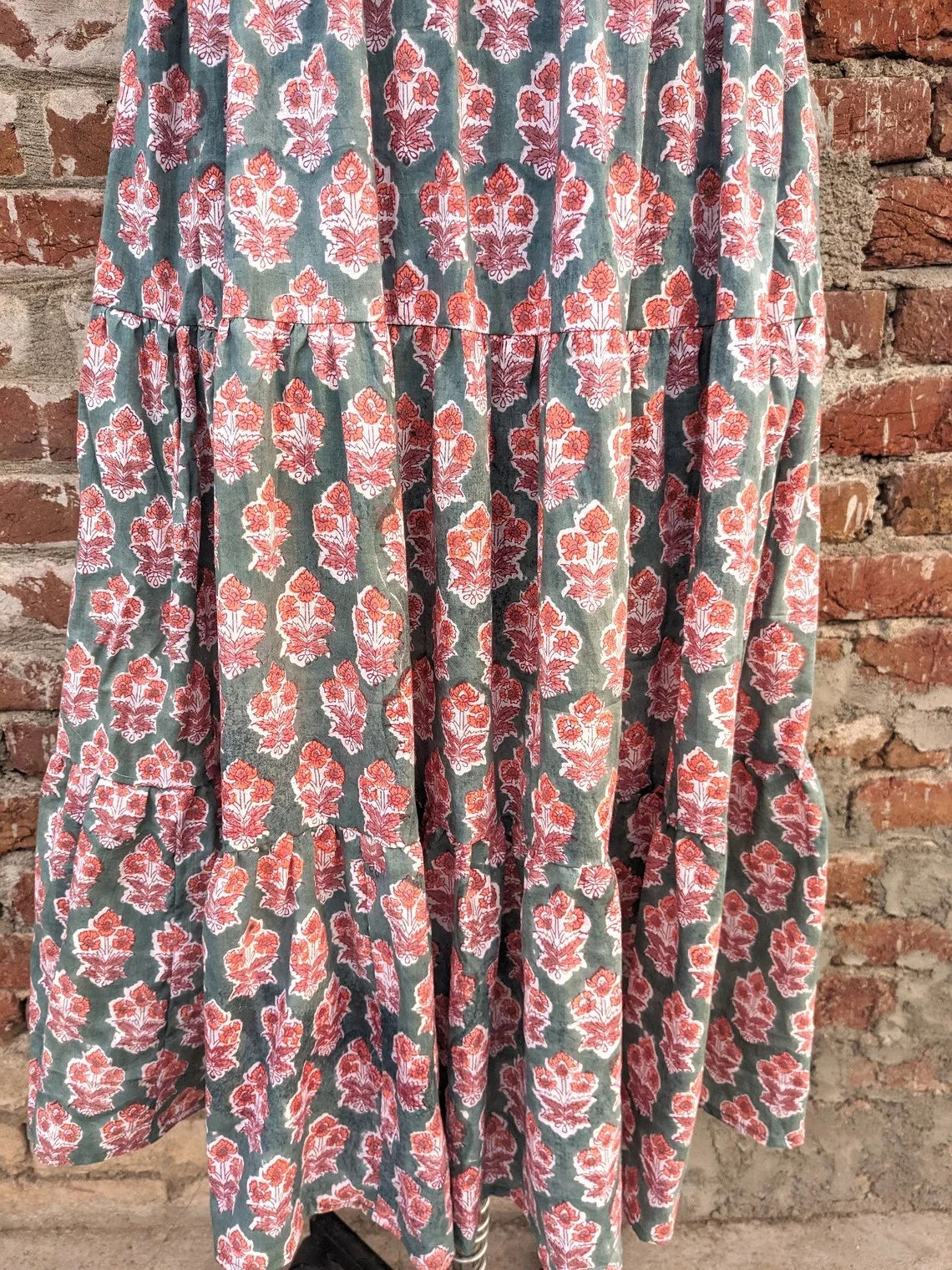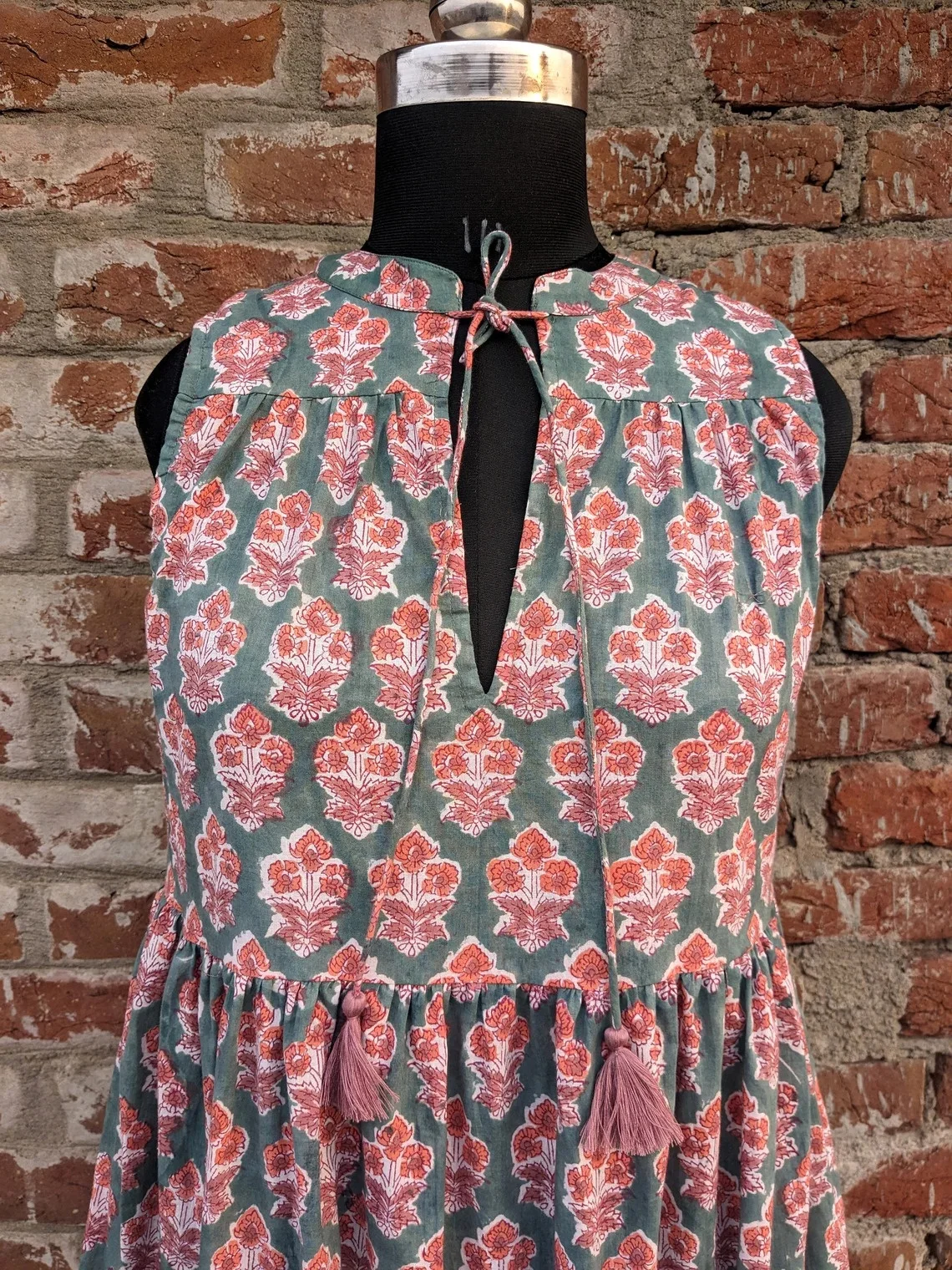 Hand Block Print Cotton Dress Women Cotton Tier Dress Mandarin Collar Sleeveless Floral Print Long Maxi Gown For Women