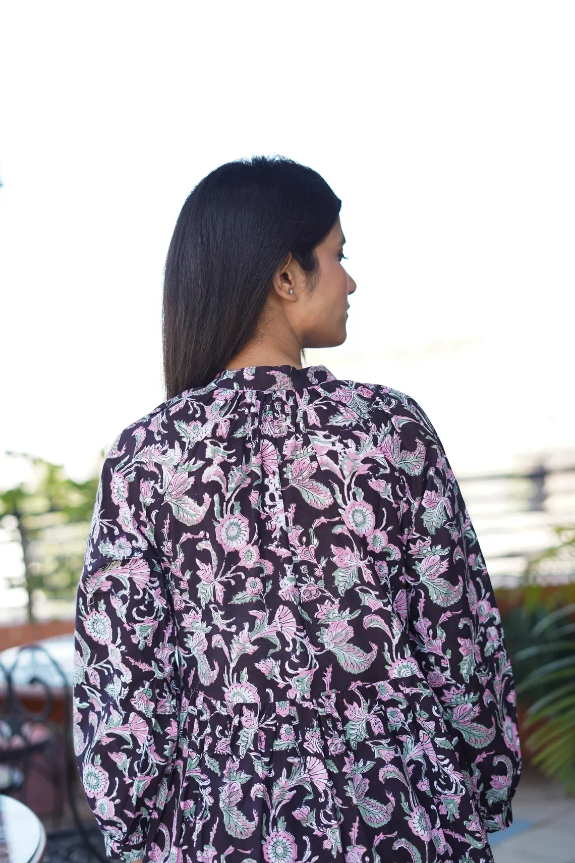 Block Print Dress Indian Tunics Hand Printed Dress Cotton Long Gown V-neck Long Sleeve Casual Wear Long Maxi Dress For Women