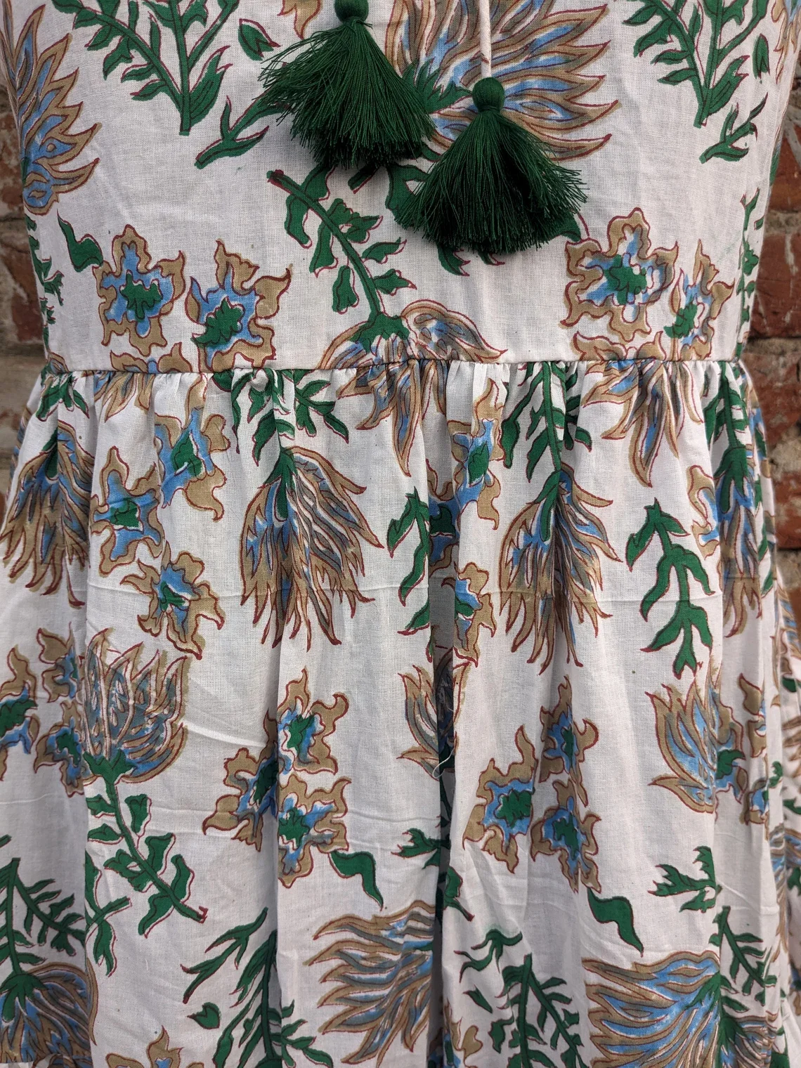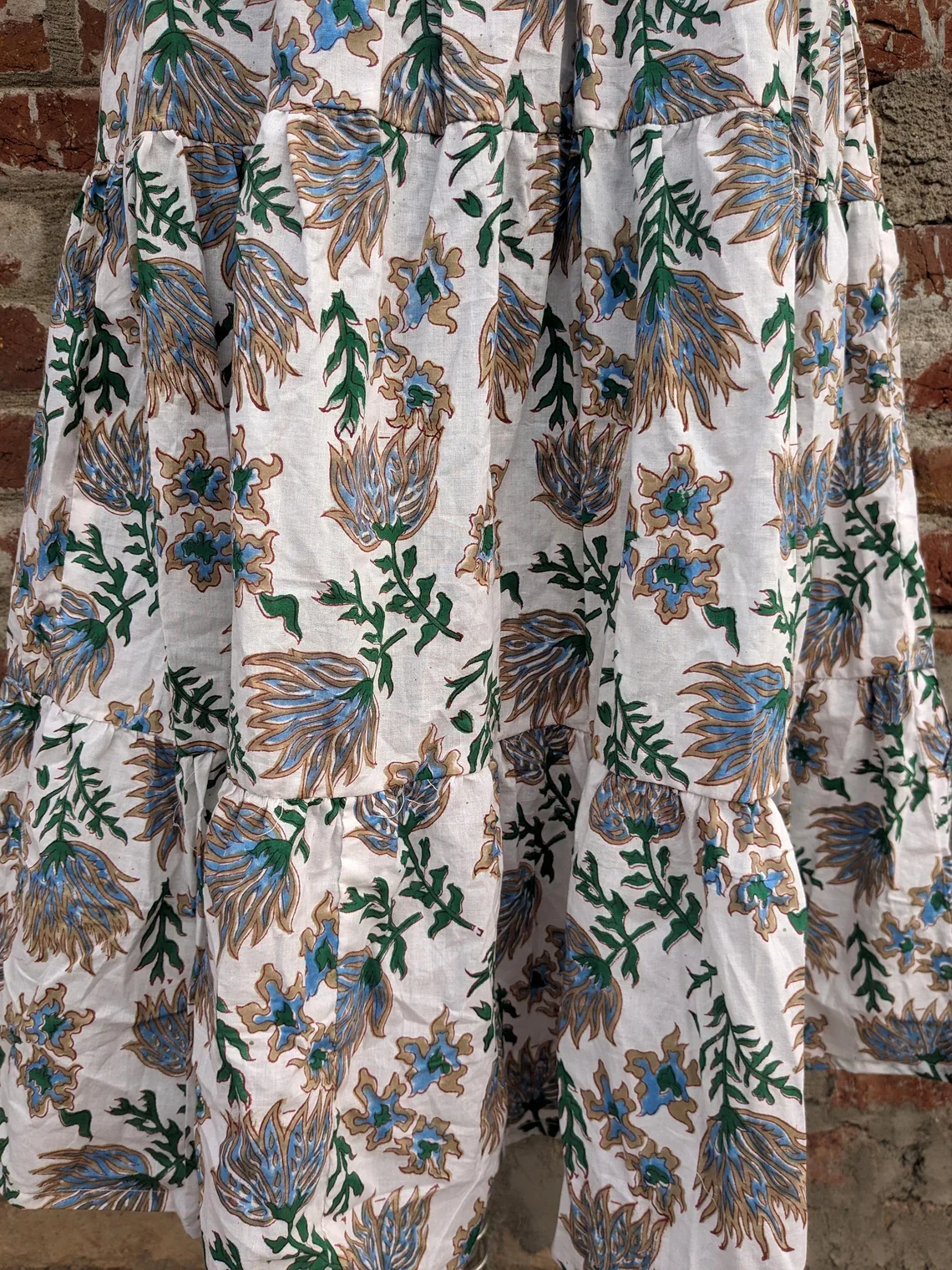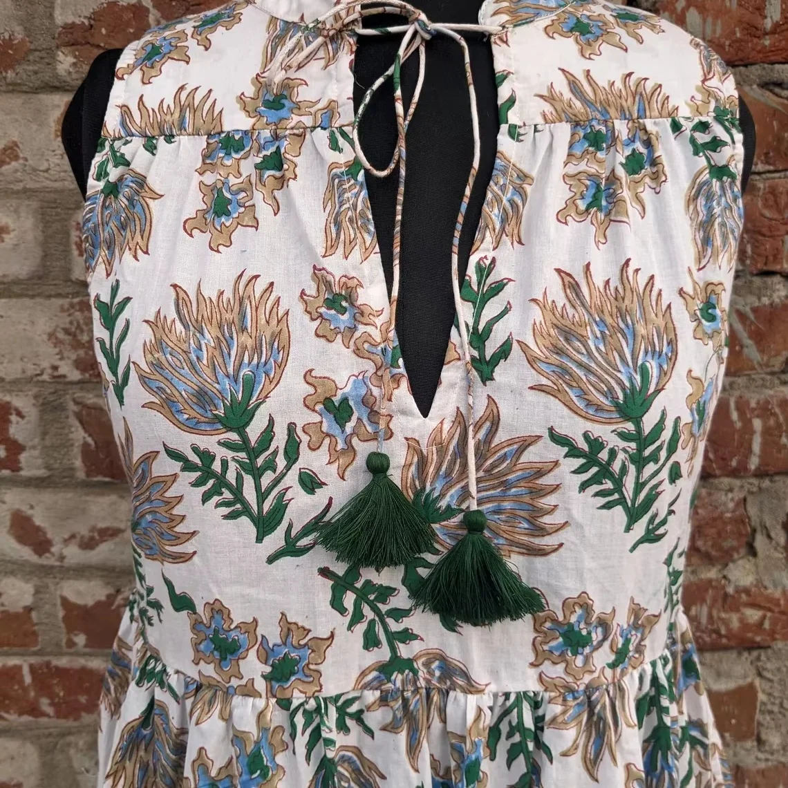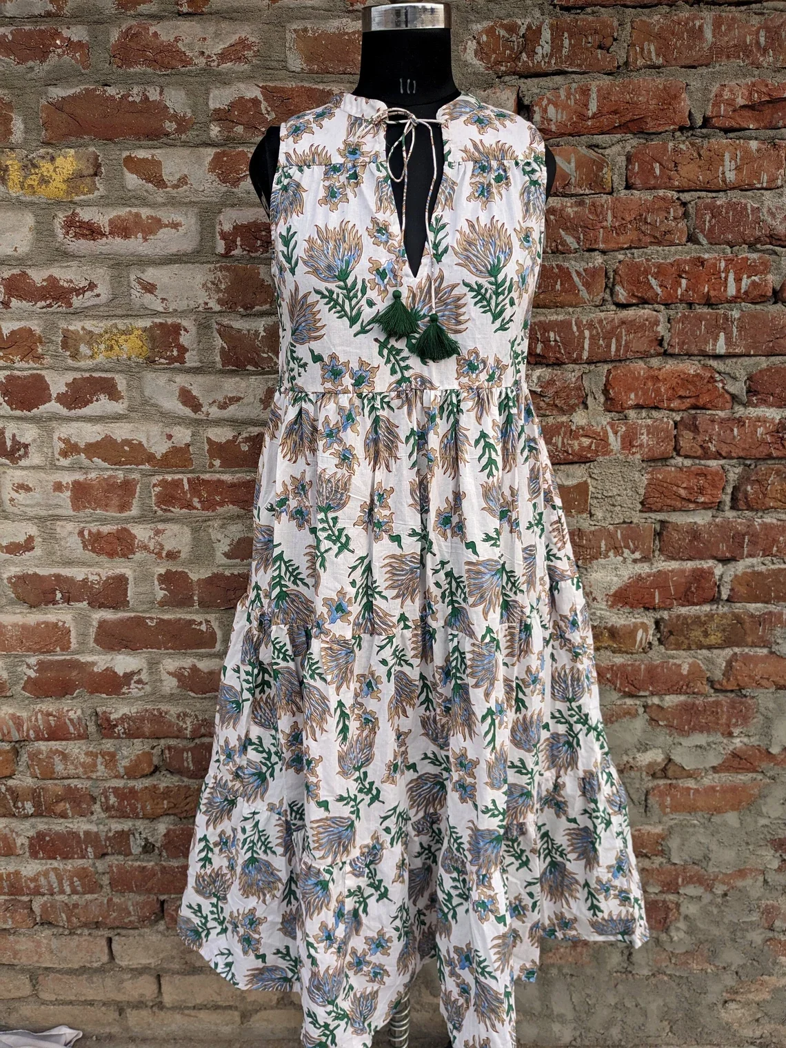 Hand Block Print Cotton Tier Dress Printed Cotton Dress Mandarin Collar Sleeveless Long Maxi Gown For Summer/Autumn Season