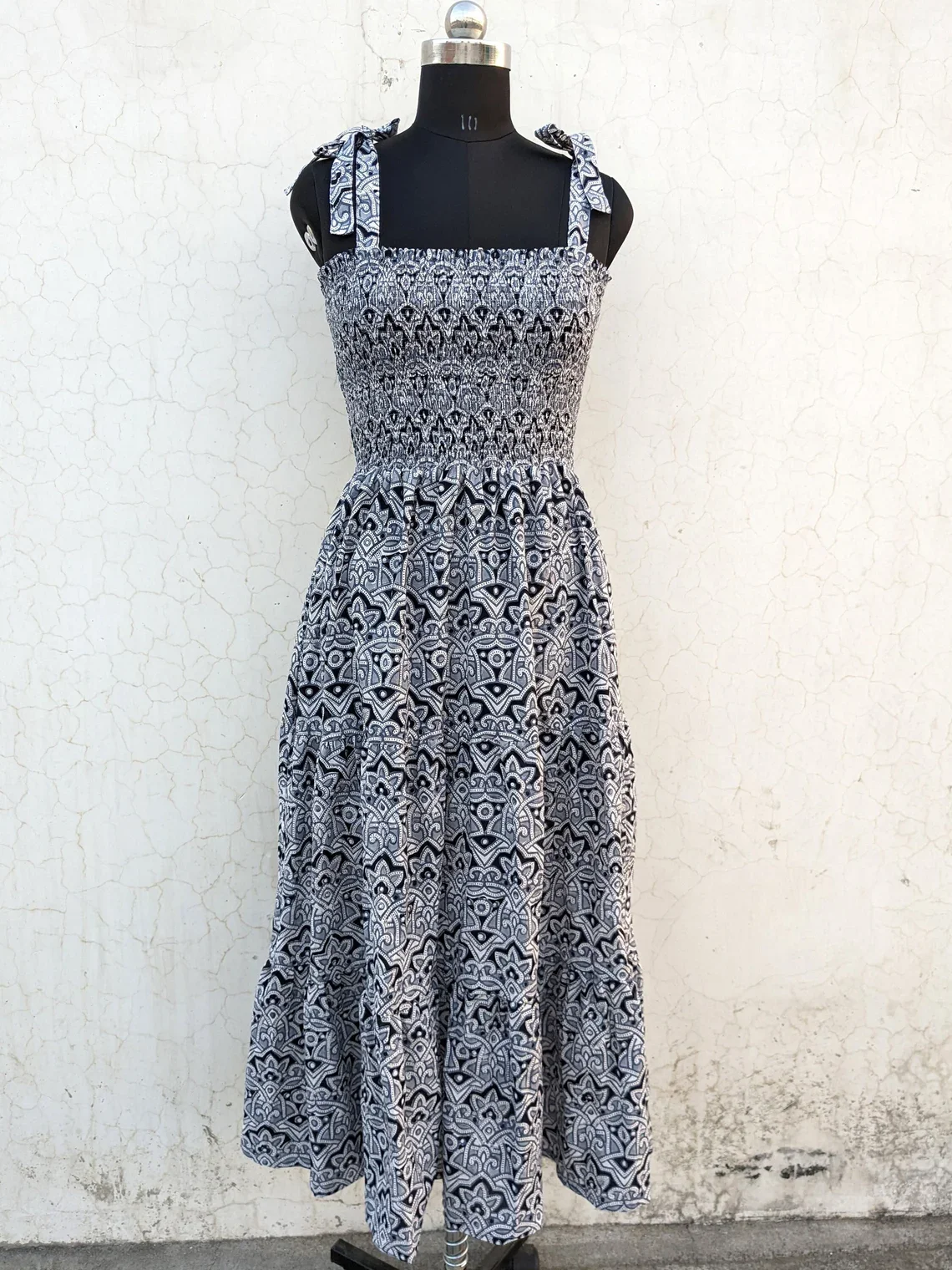 Hand Block Printed Summer Cotton Dress| Floral Print| Handmade Sleeveless Casual Wear Long Maxi Dress For Women