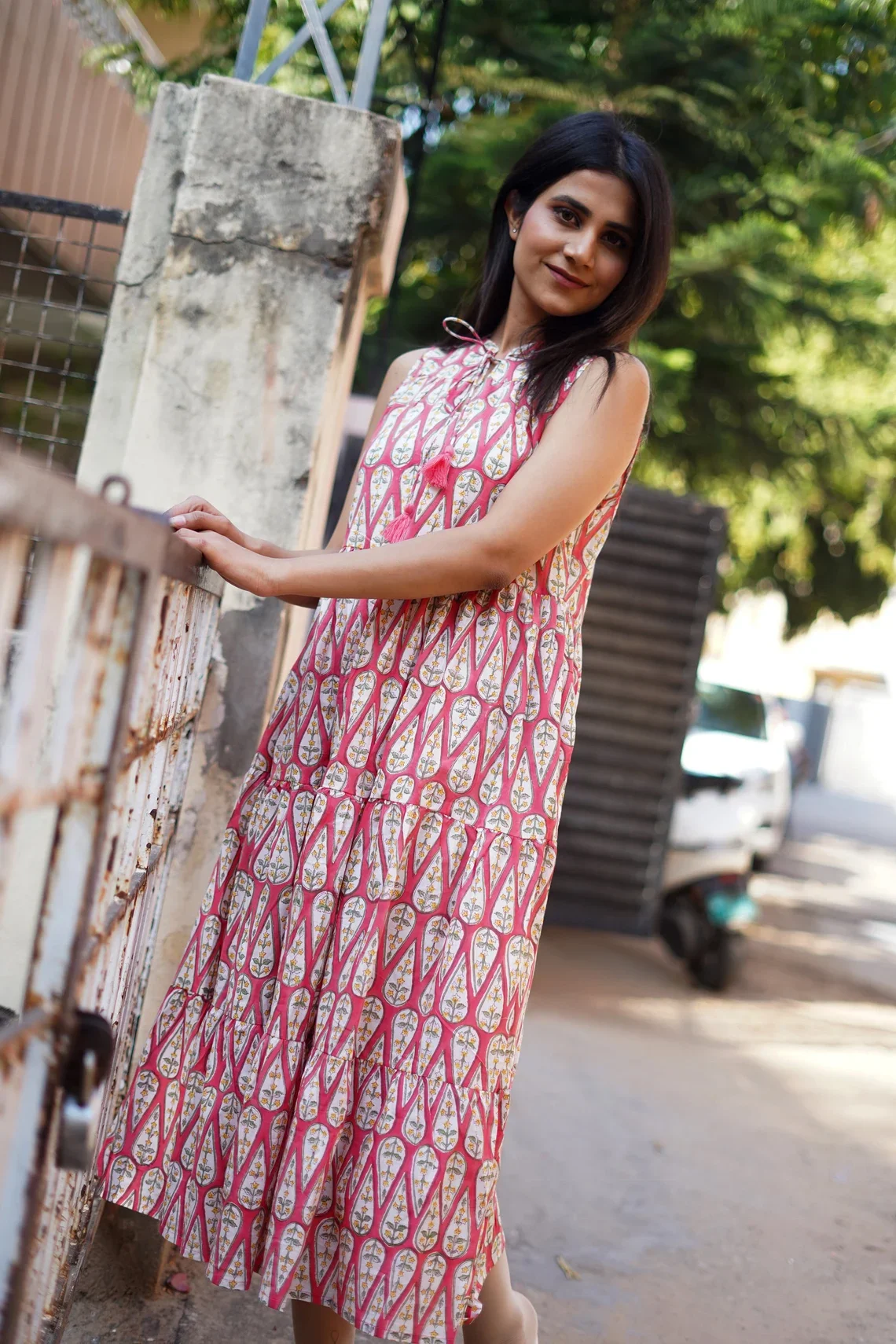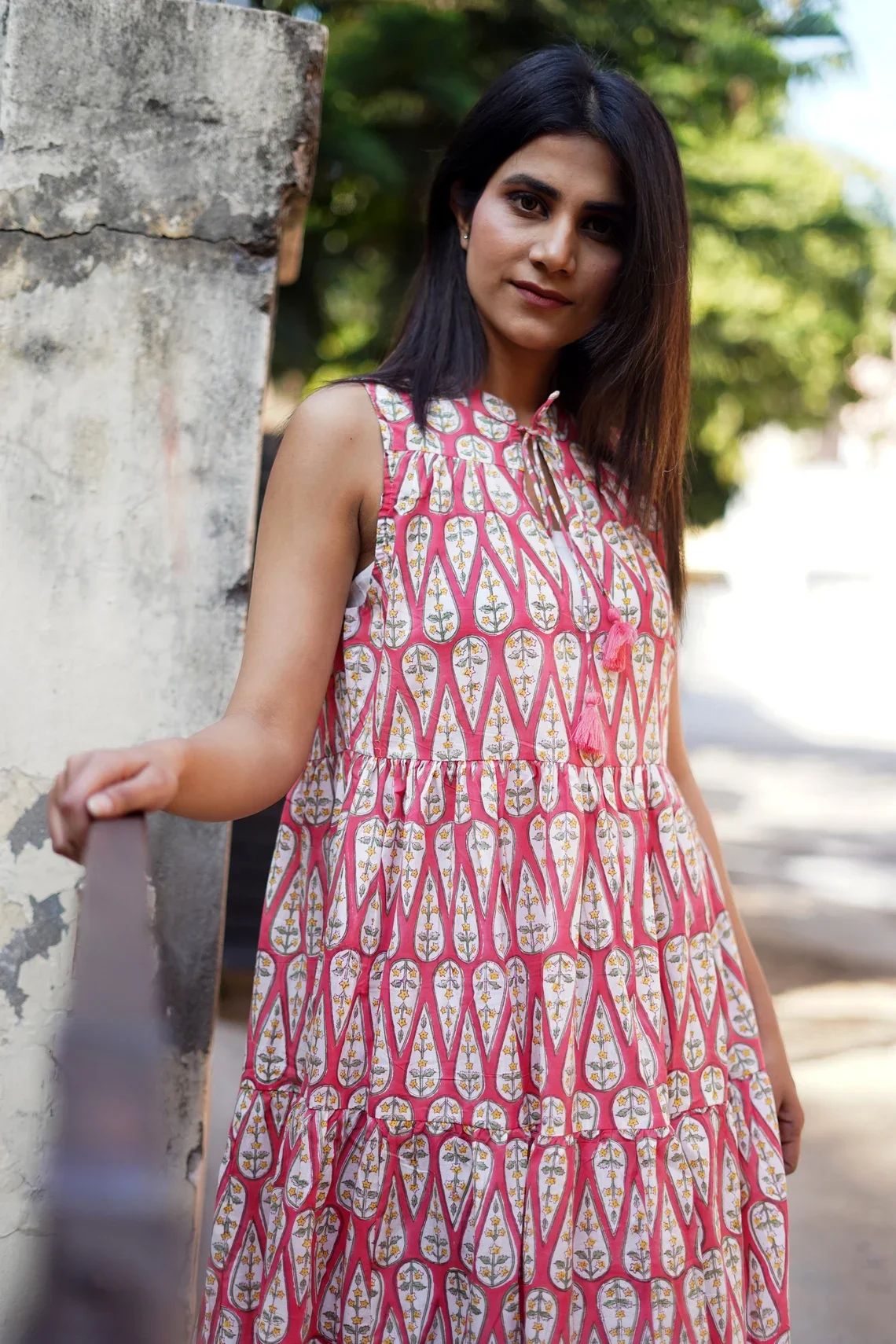 Women's Cotton Summer Dress with Hand-Block Print Digital Printed Solid Pattern Ruffles Knitted Fabric for Autumn/Summer Season