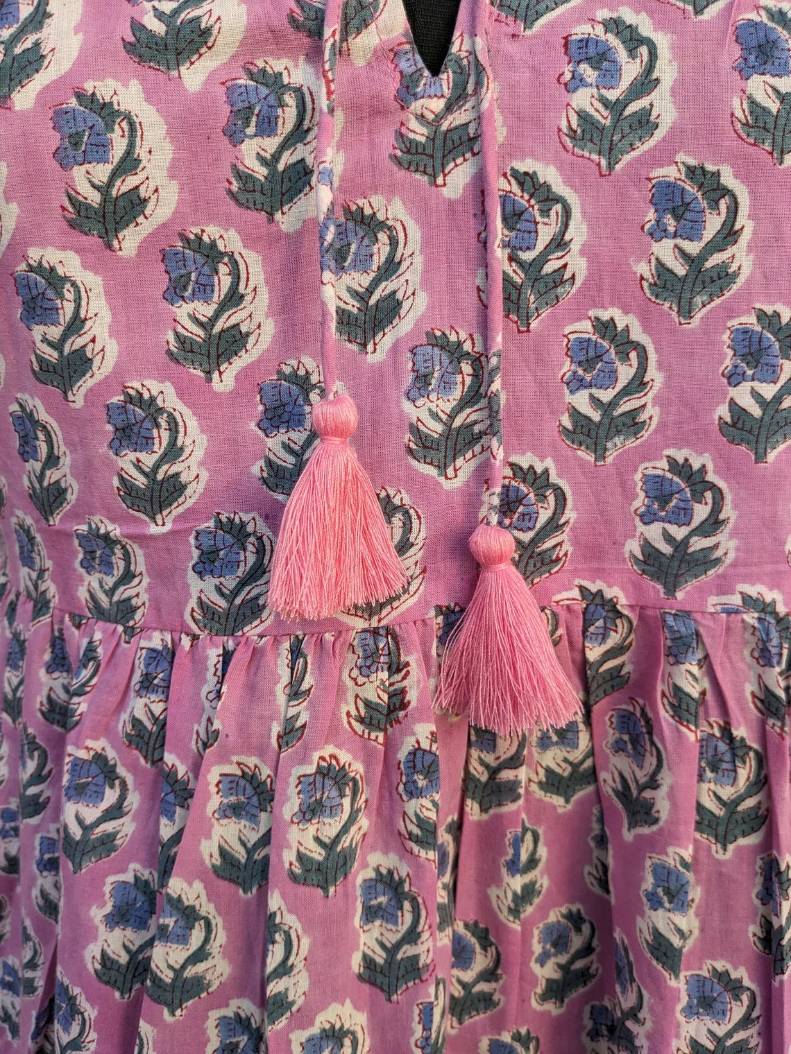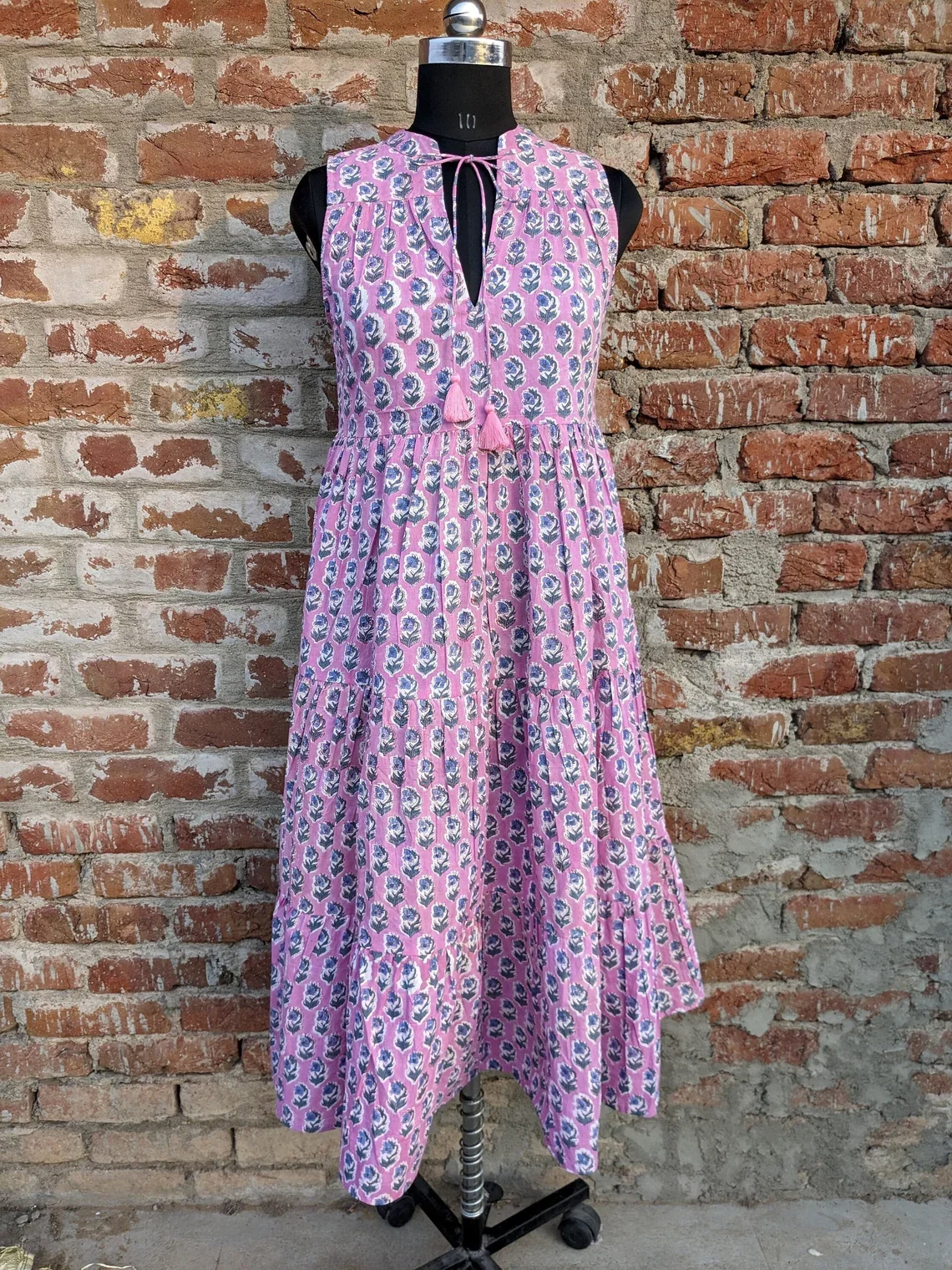 Women's Summer Cotton Dress Hand-Block Printed Tier Dress Solid Pattern Ruffles Sustainable Autumn/Summer Season