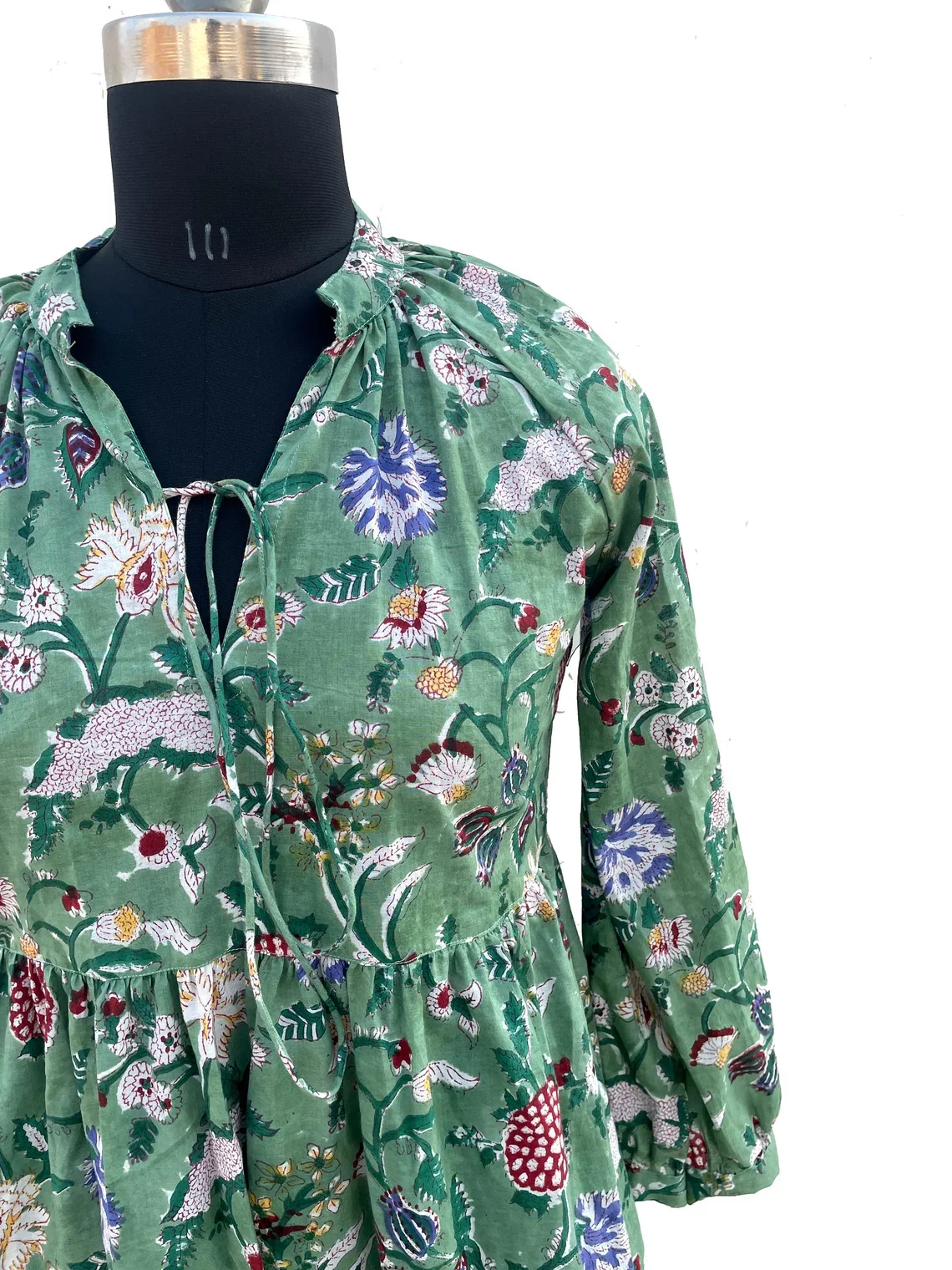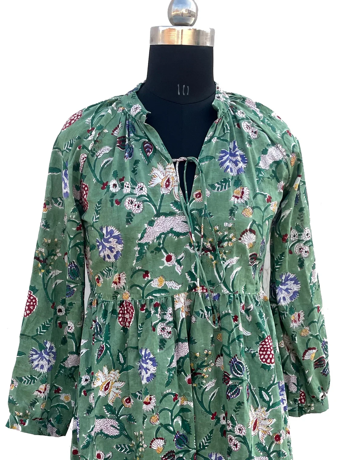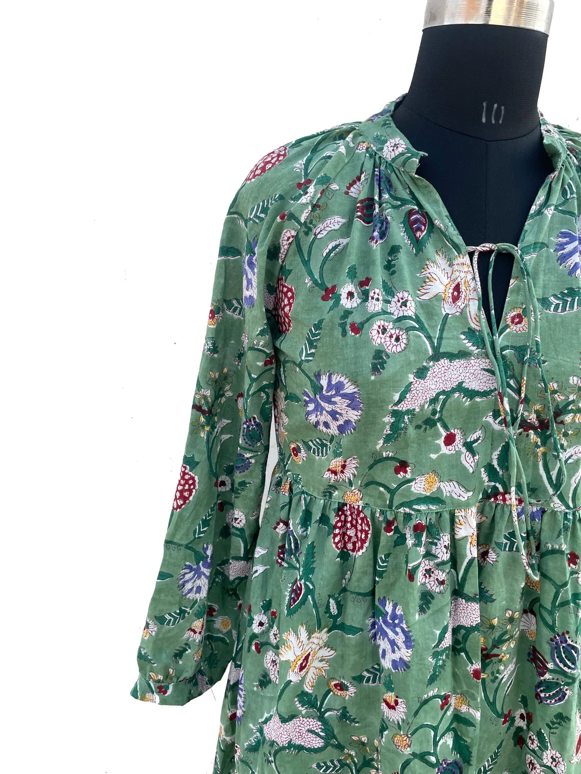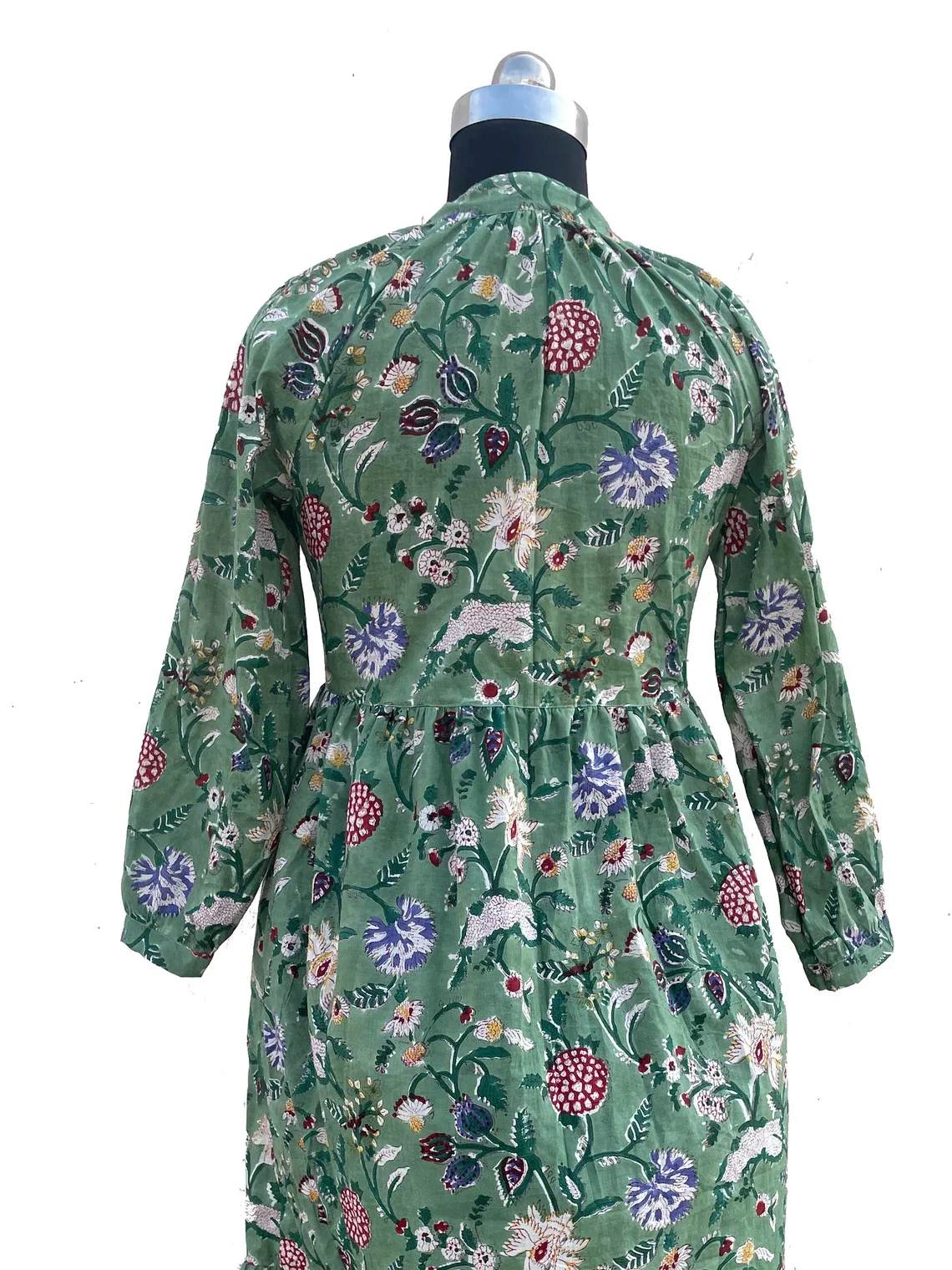 Women Cotton Summer Dress Hand Block Print Cotton Dress V-neck Full Sleeves Long Maxi Gown Summer/Season