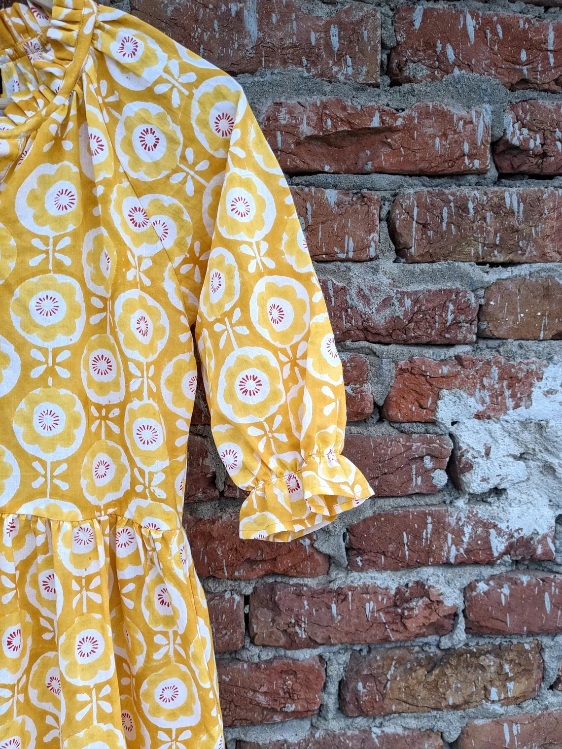 Hand Block Printed Cotton Maxi Dress Floral Handmade Summer Autumn Winter Spring Season Nonwoven Solid Pattern
