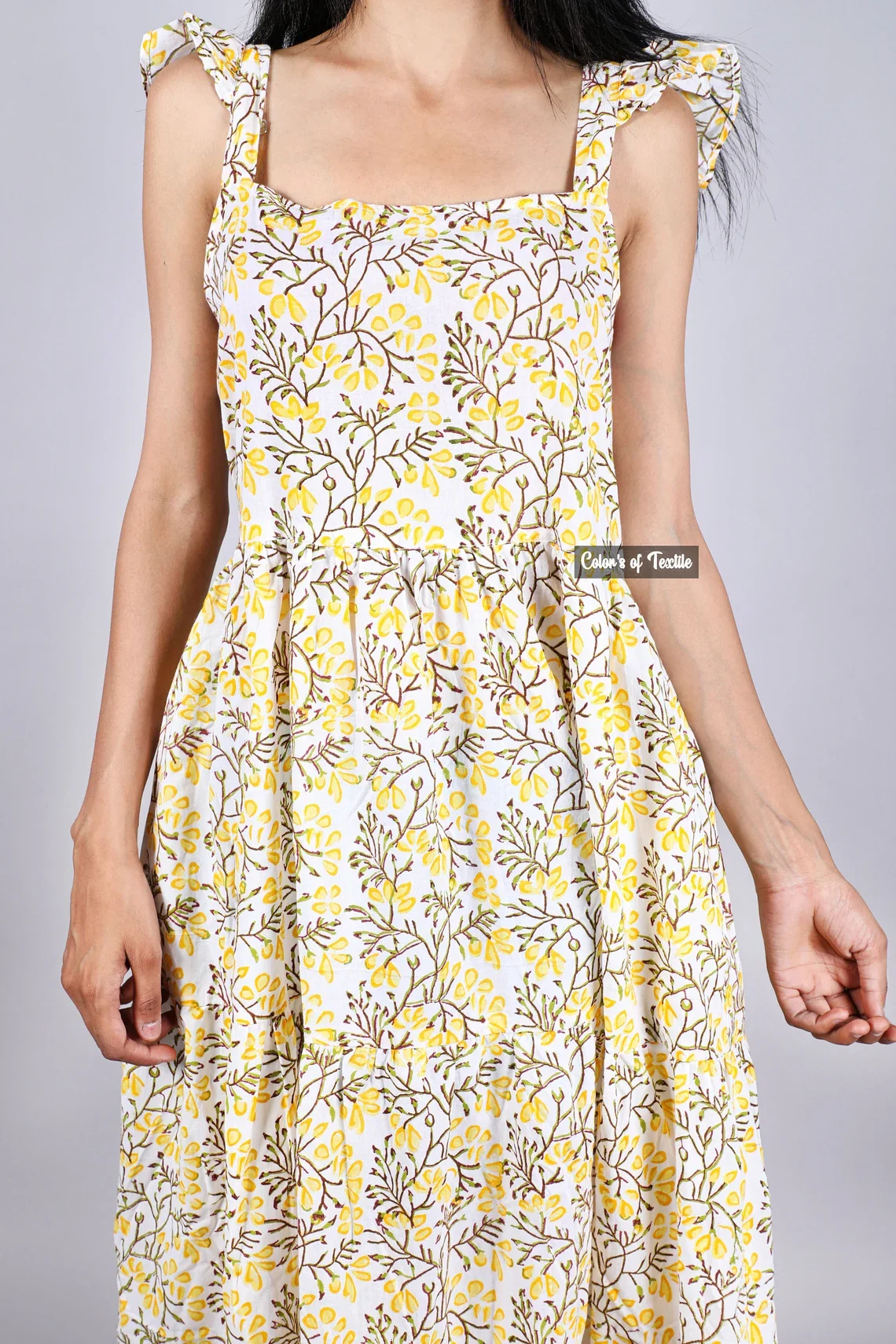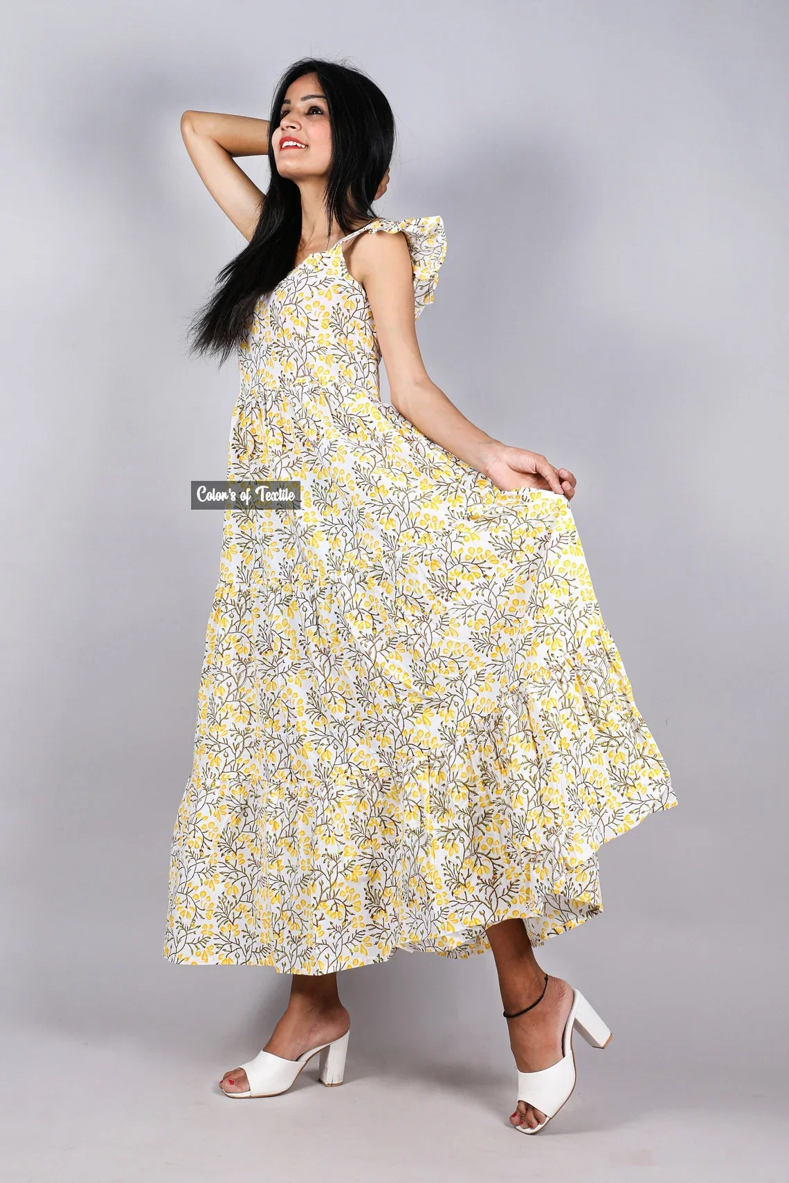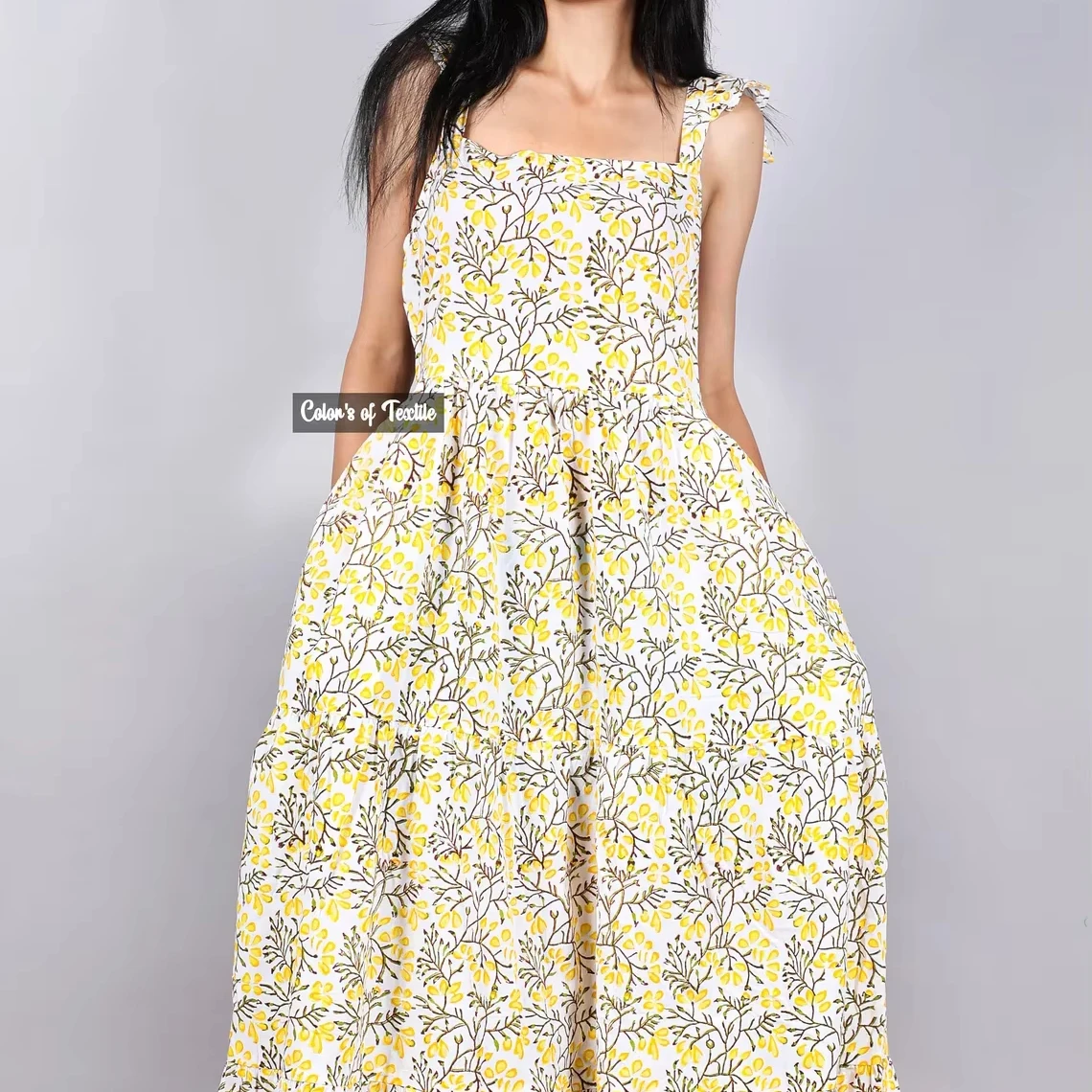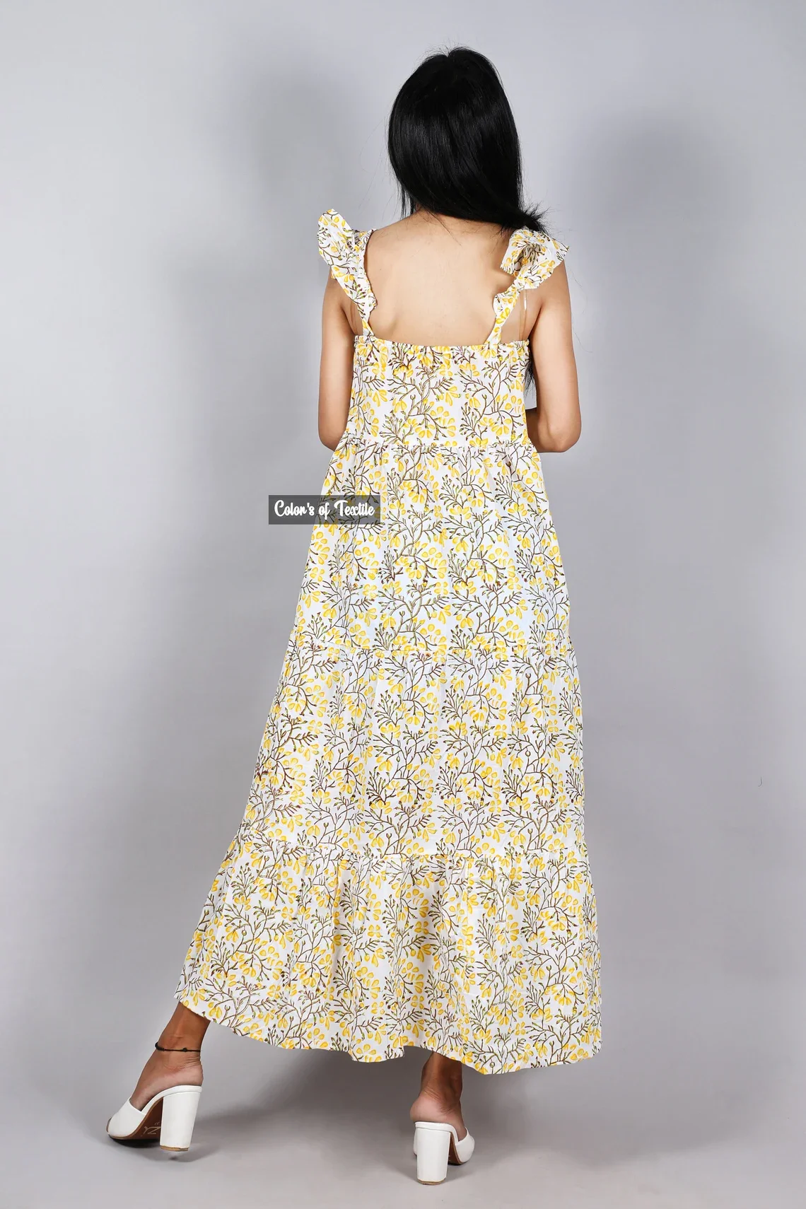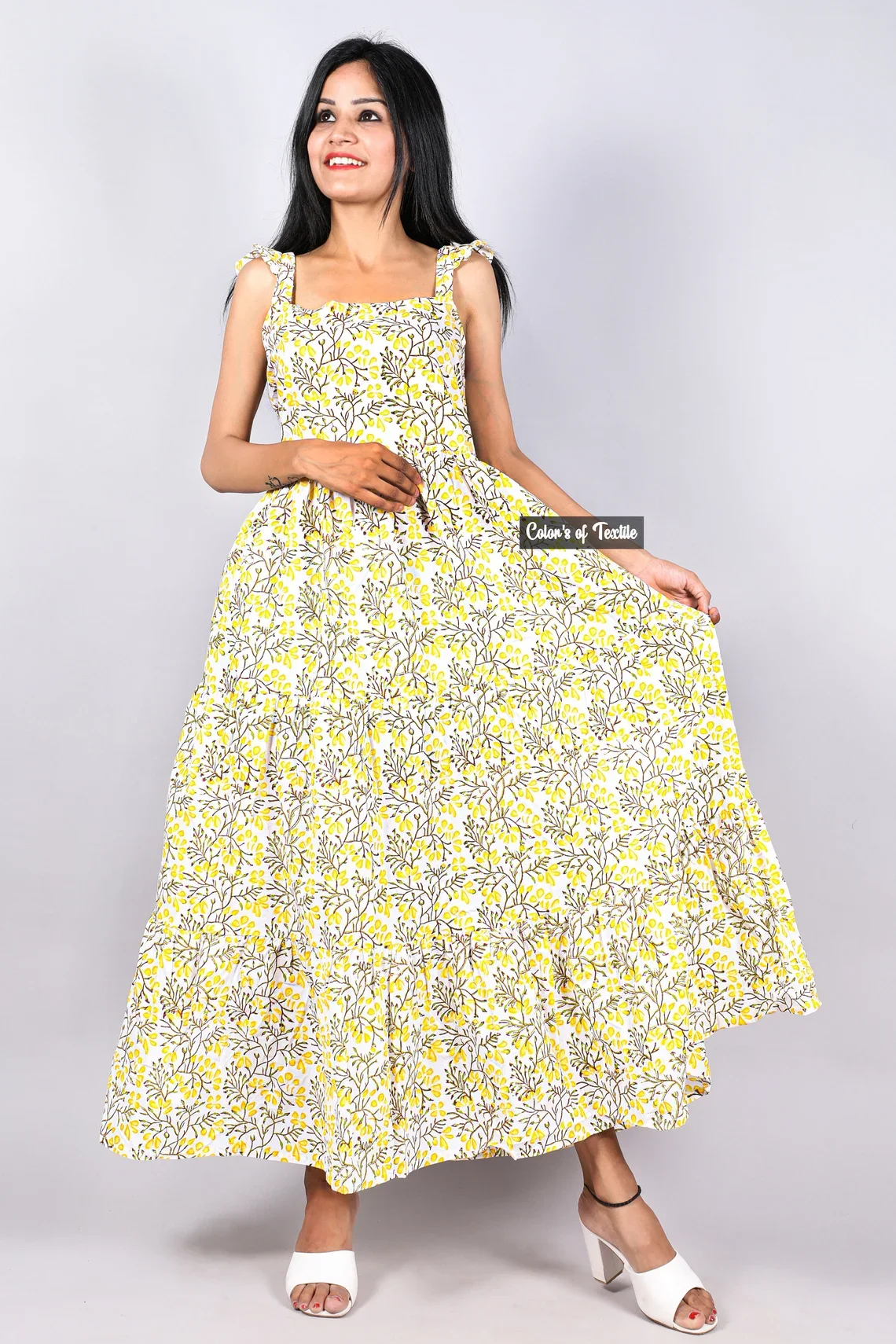 Autumn Collection Hand Block Printed Cotton Dress 100% Indian Cotton Solid Pattern Maxi Length Sustainable Long Dress For Women