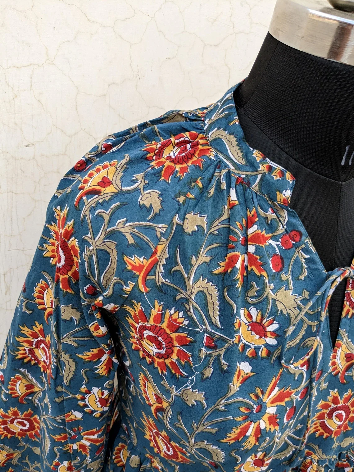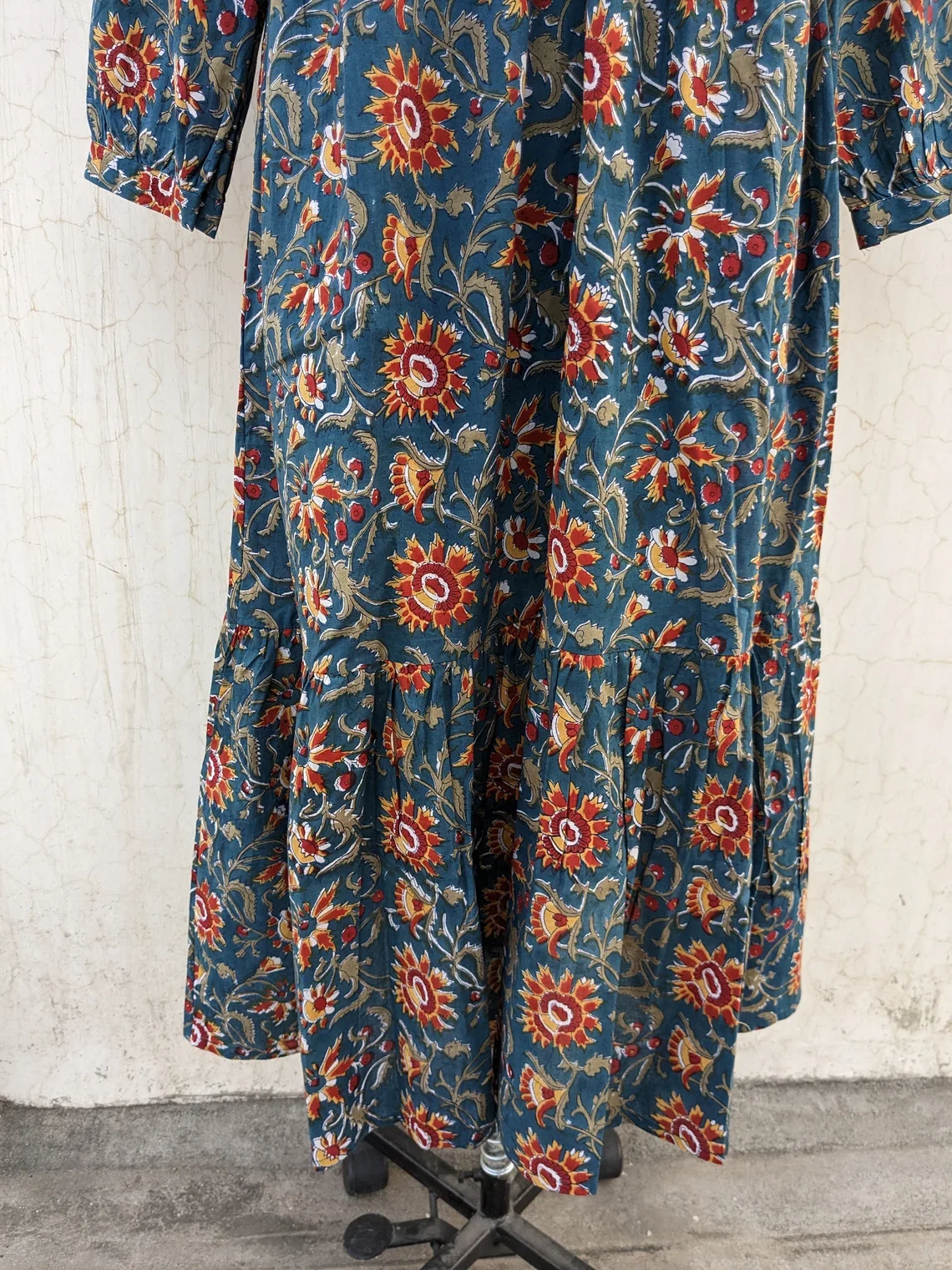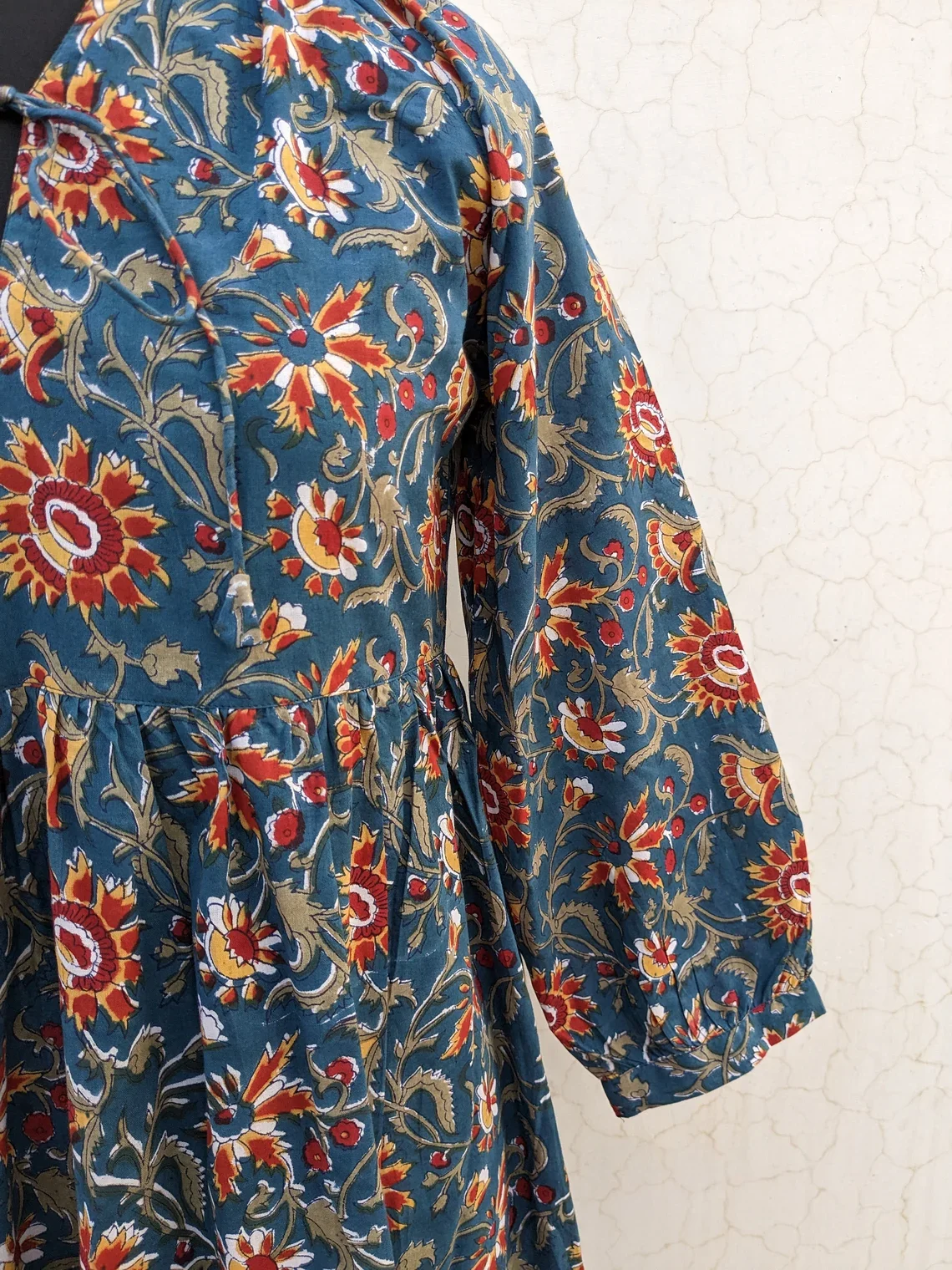 Autumn Collection Hand Block Printed Solid Pattern Maxi Dress Indian Tunics Nonwoven Weaving Method Floral Print Maxi Dress