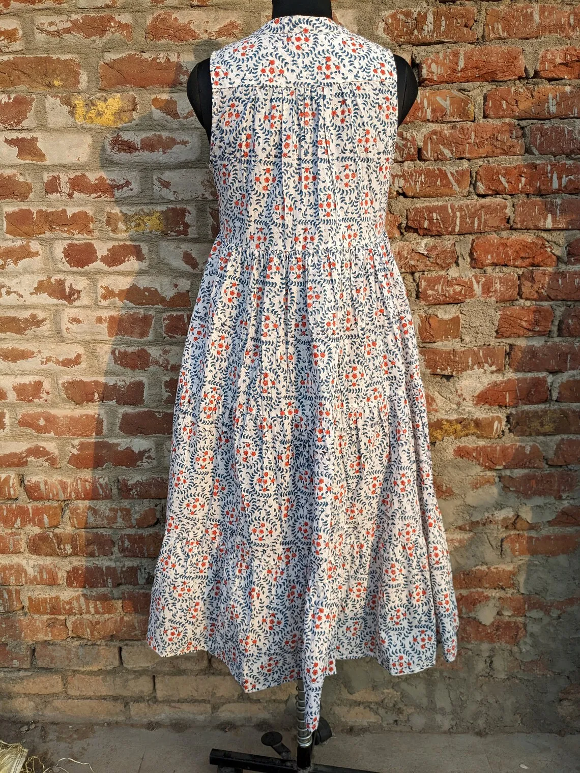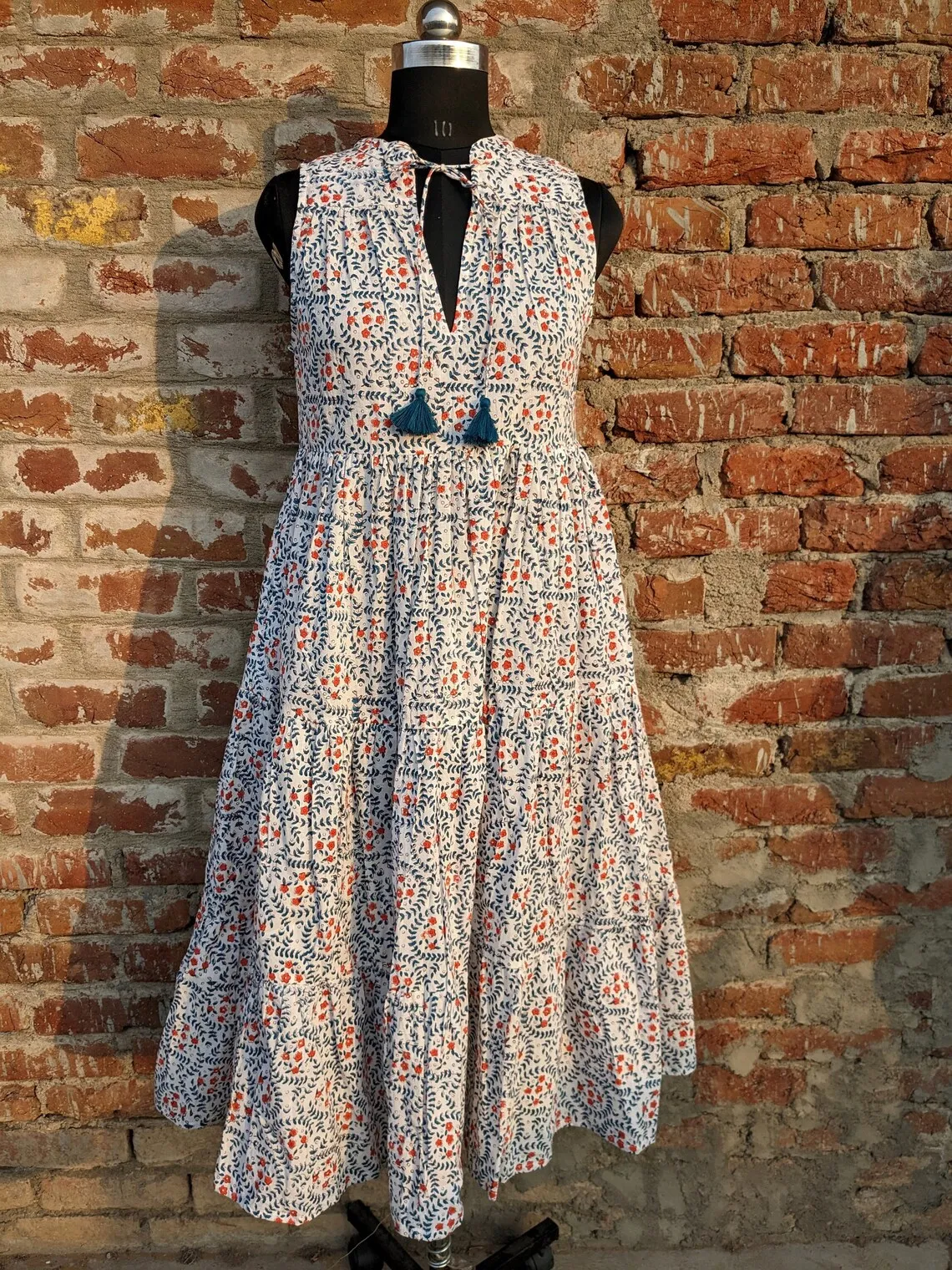 Women's Maxi-Length Cotton Dress with Hand-Block Printed Solid Pattern Sustainable for Autumn/Summer Season