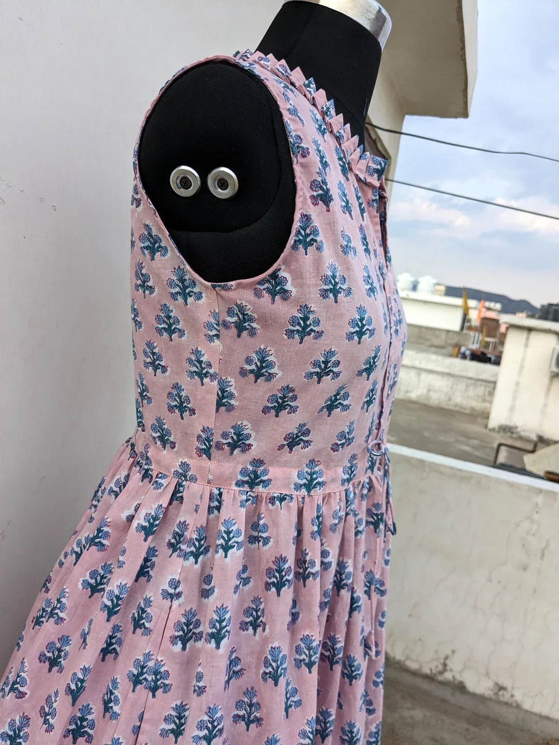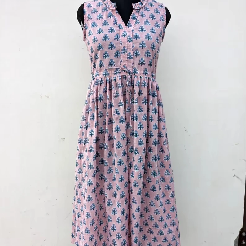 Hand Block Printed Cotton Maxi Dress Floral Handmade Summer and Autumn on Nonwoven Weaving Method Long Maxi Dress