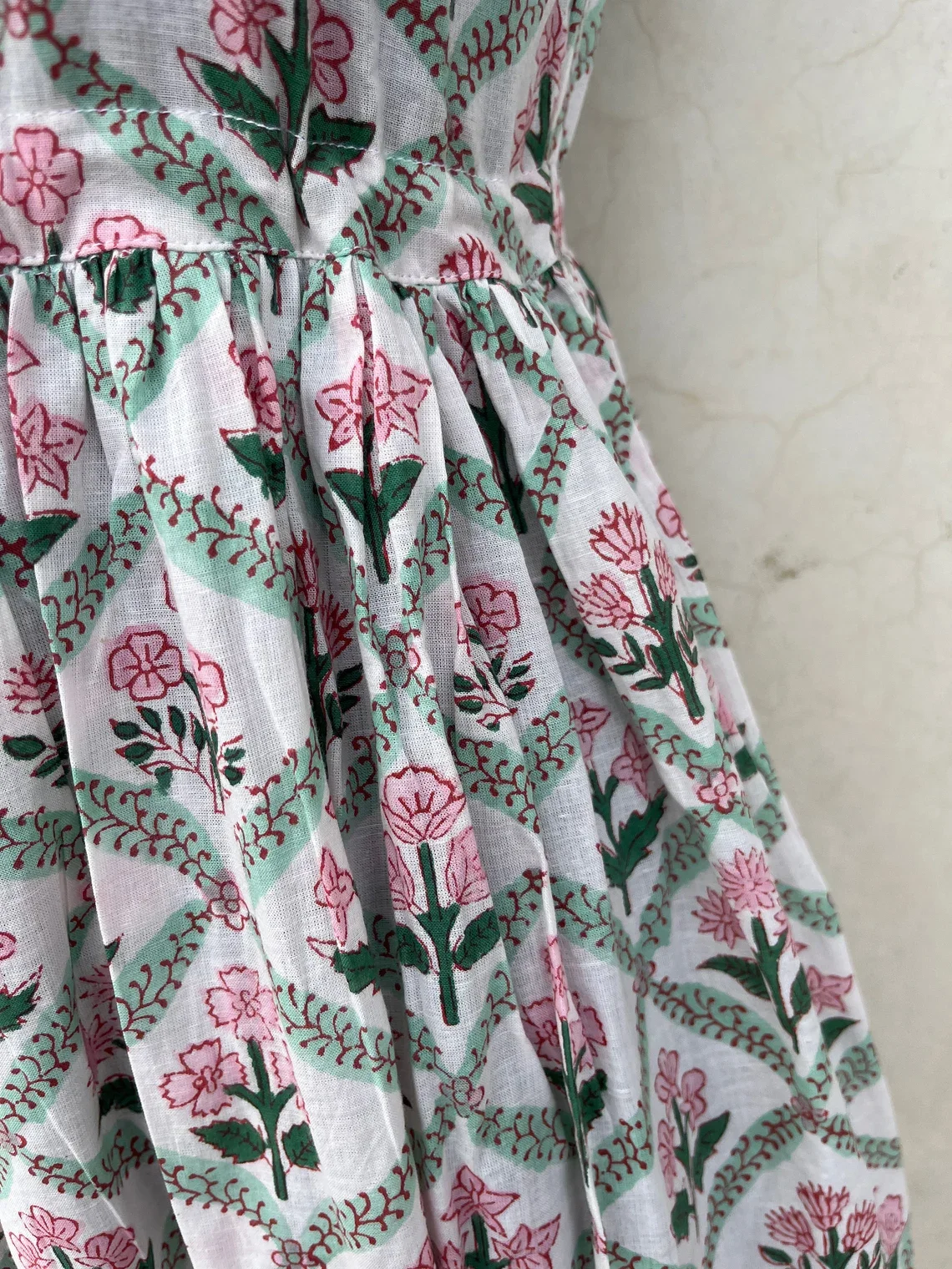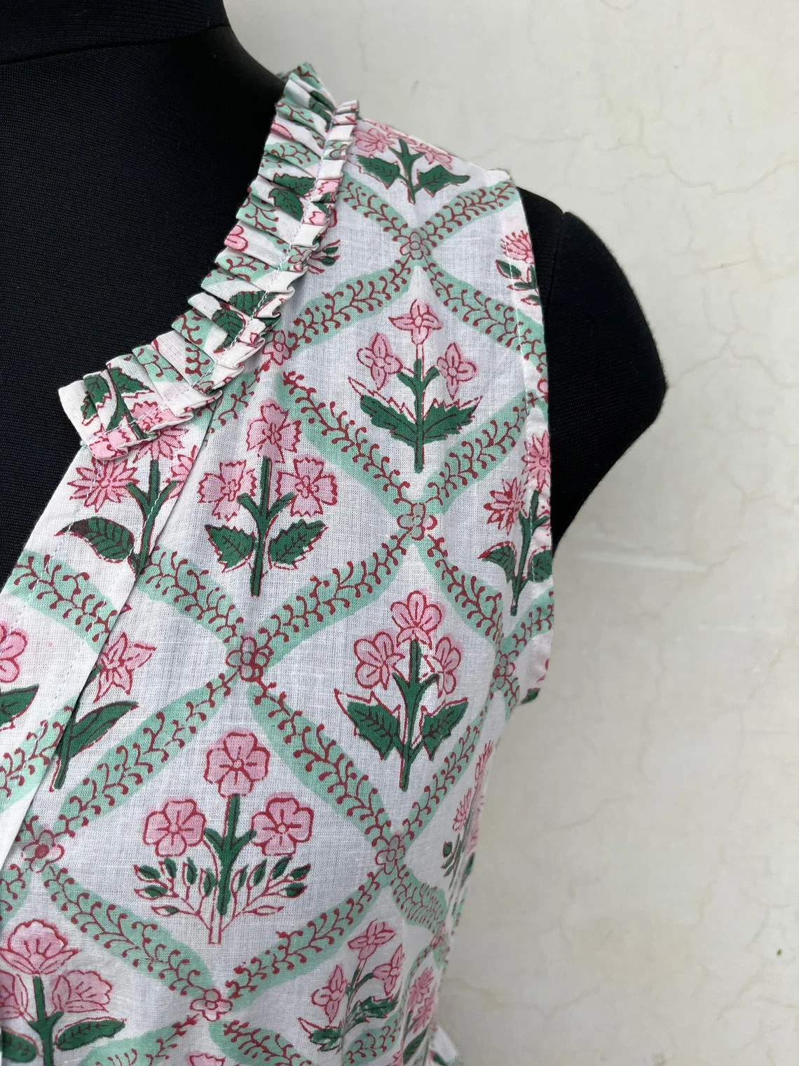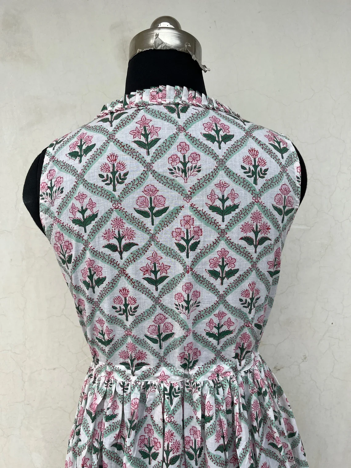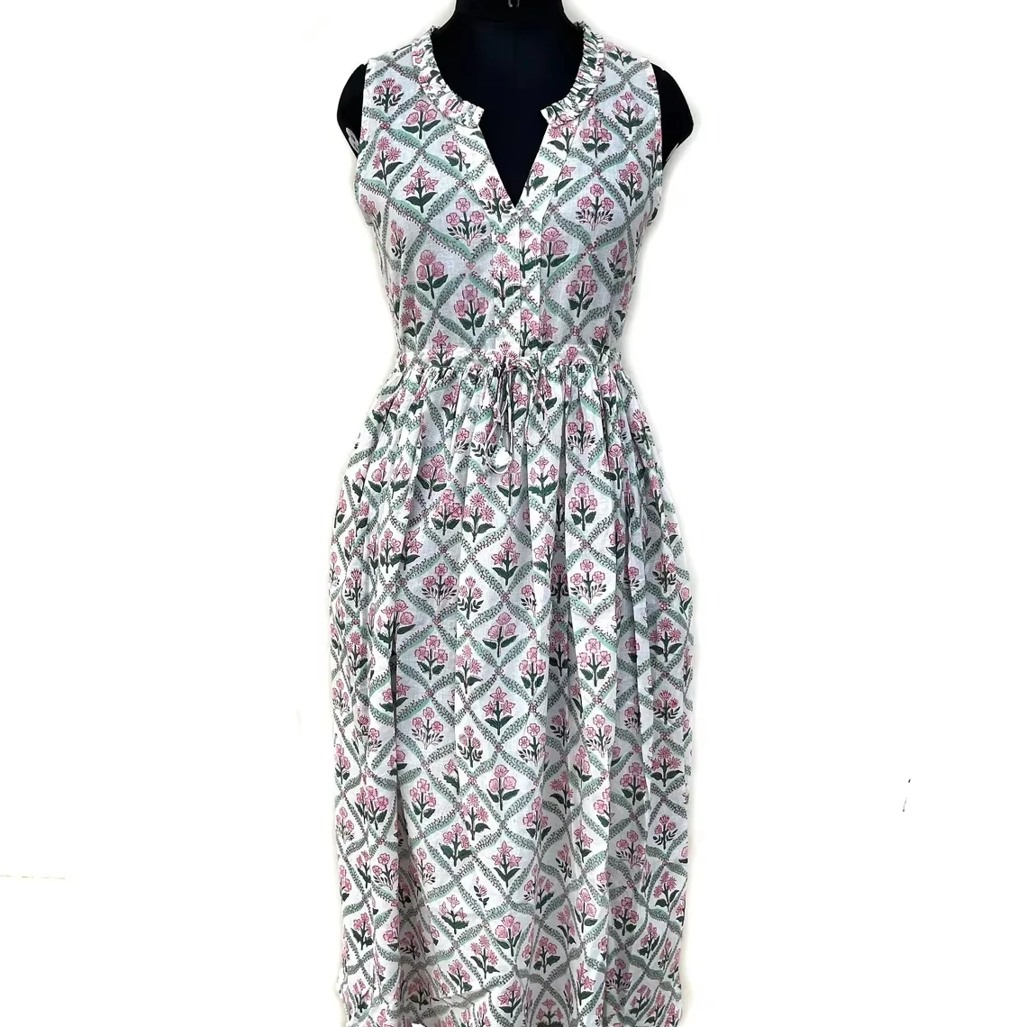 Beautiful Summer Cotton Hand Print Dress Hand Block Dress V-neck Sleeveless Floral Print Cotton Long Maxi Dress For Women
