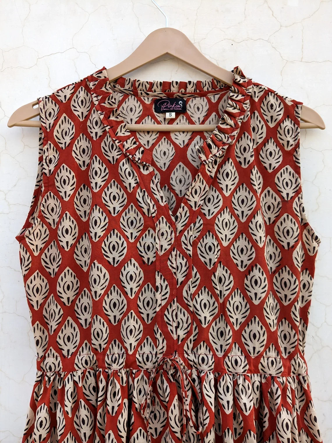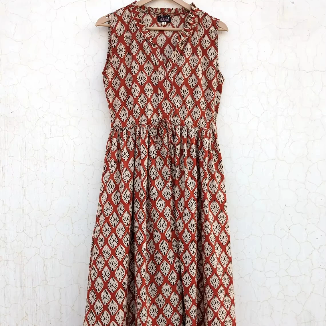 Hand Block Printed Maxi Dress Floral Cotton Sleeveless Summer/Winter/Autumn Solid Pattern Partywear Maxi Dress For Women