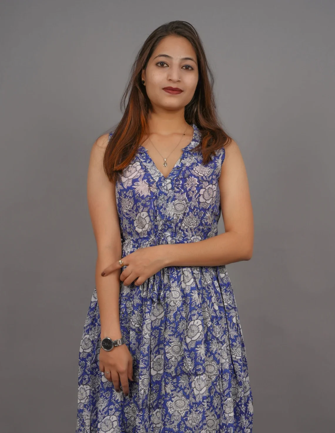 Hand Block Printed Cotton Dress Floral Print Maxi Length Sustainable Winter and Autumn