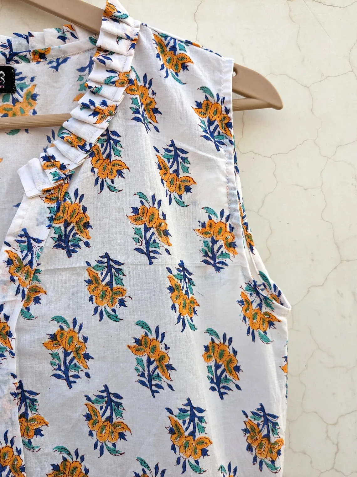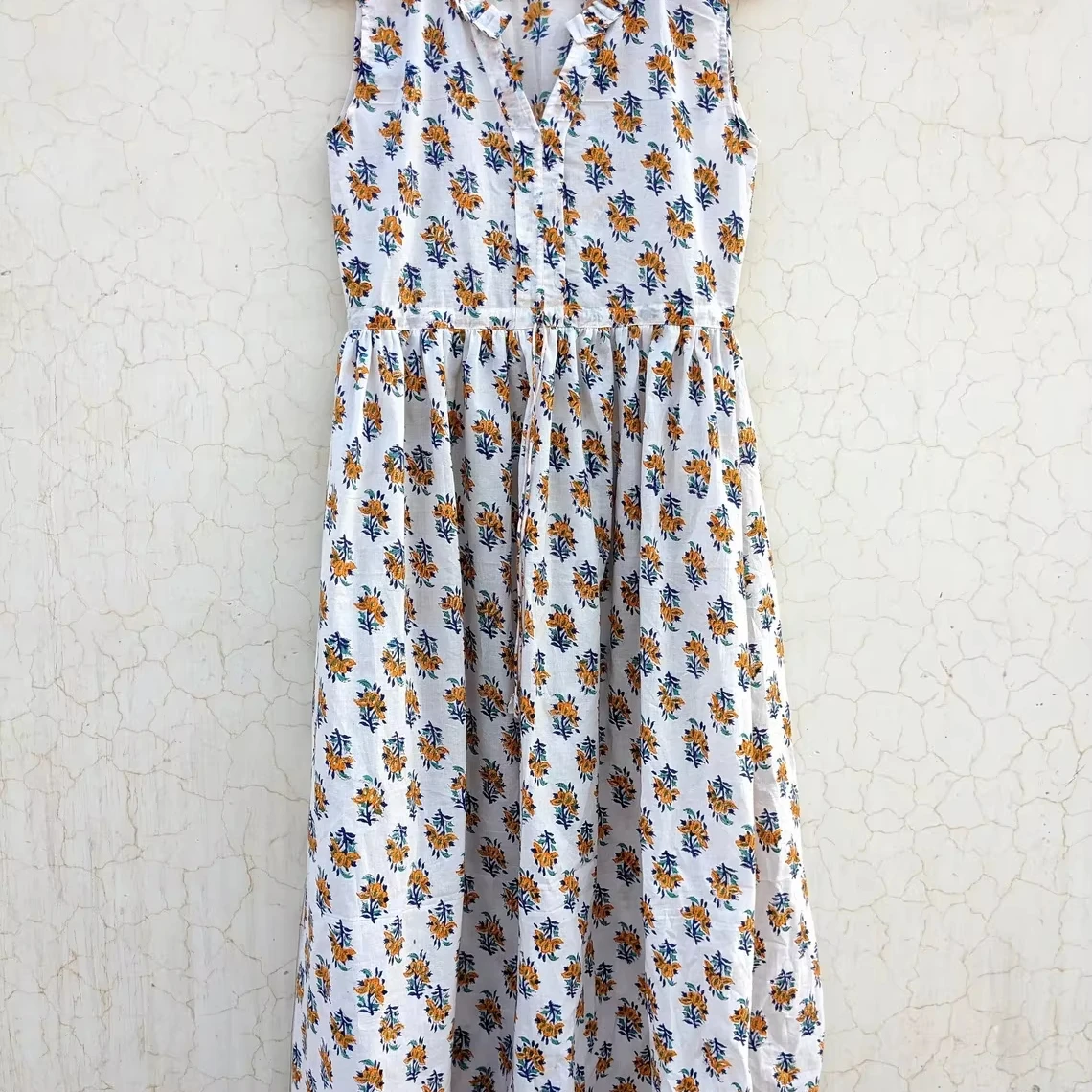 Hand Block Printed Sleeveless Summer Dress| Cotton Dress| Floral Print