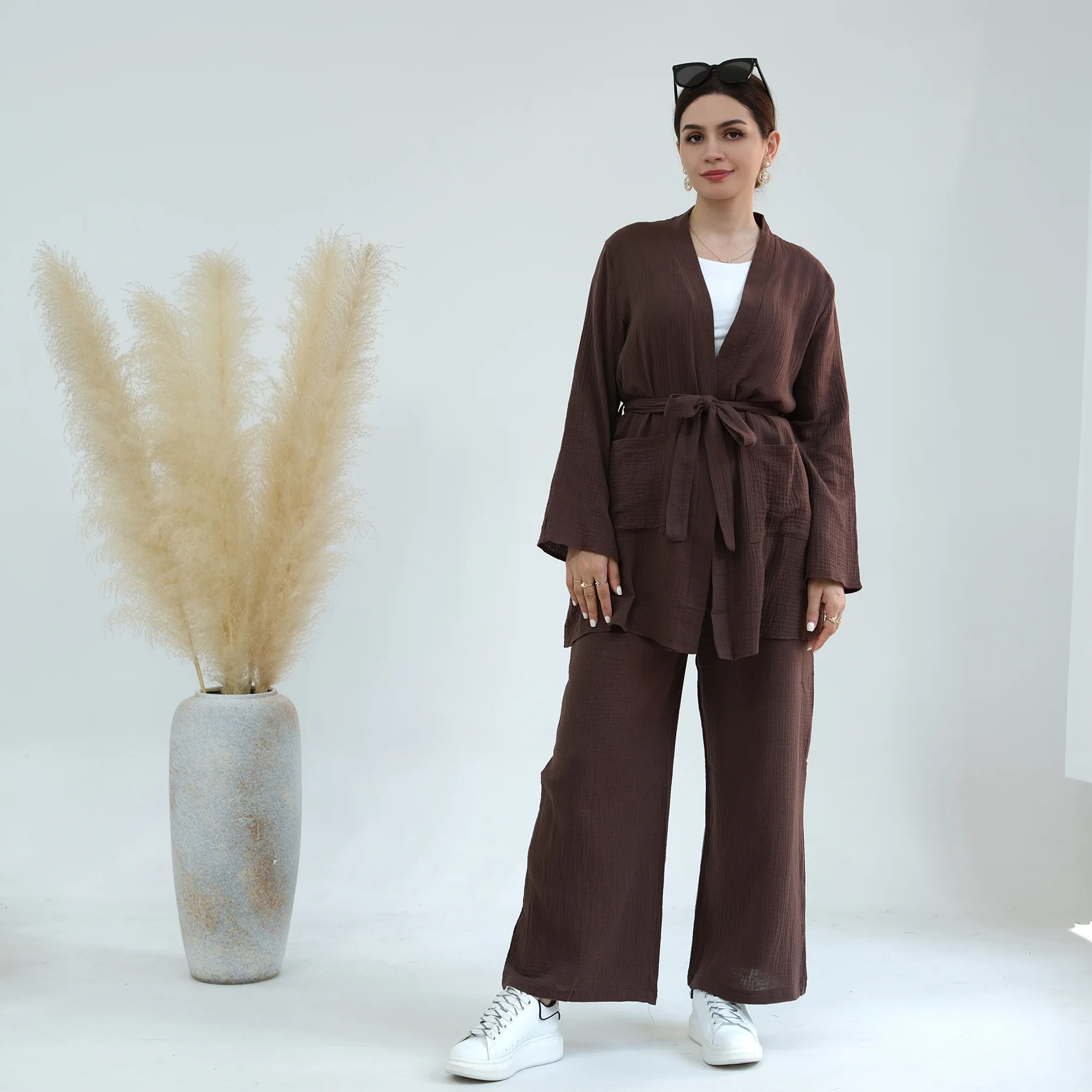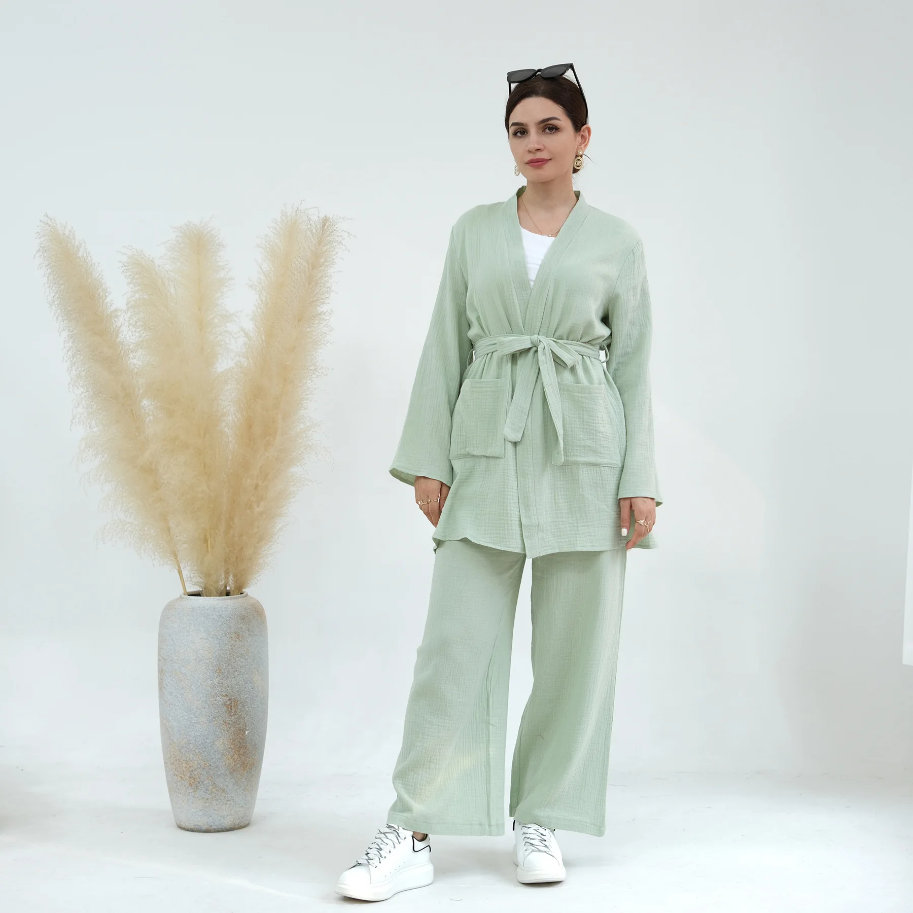 ODM Supply Women's Modest Islamic Abaya Breathable Cotton Floral Embroidery Sweetheart Neckline Sleeveless Ankle Length Casual