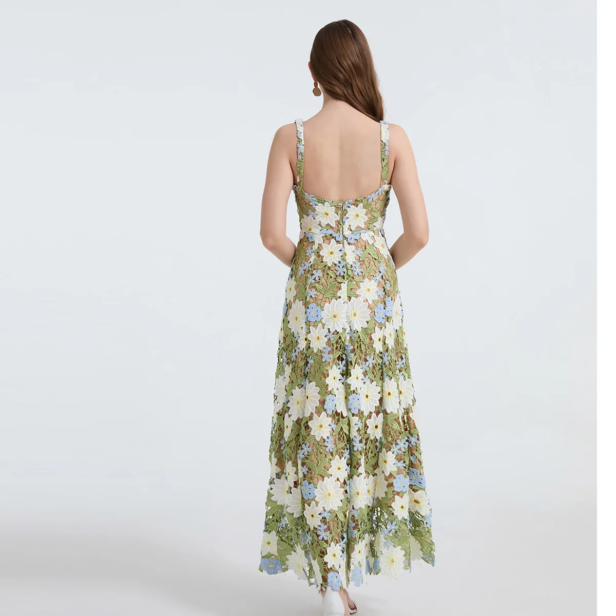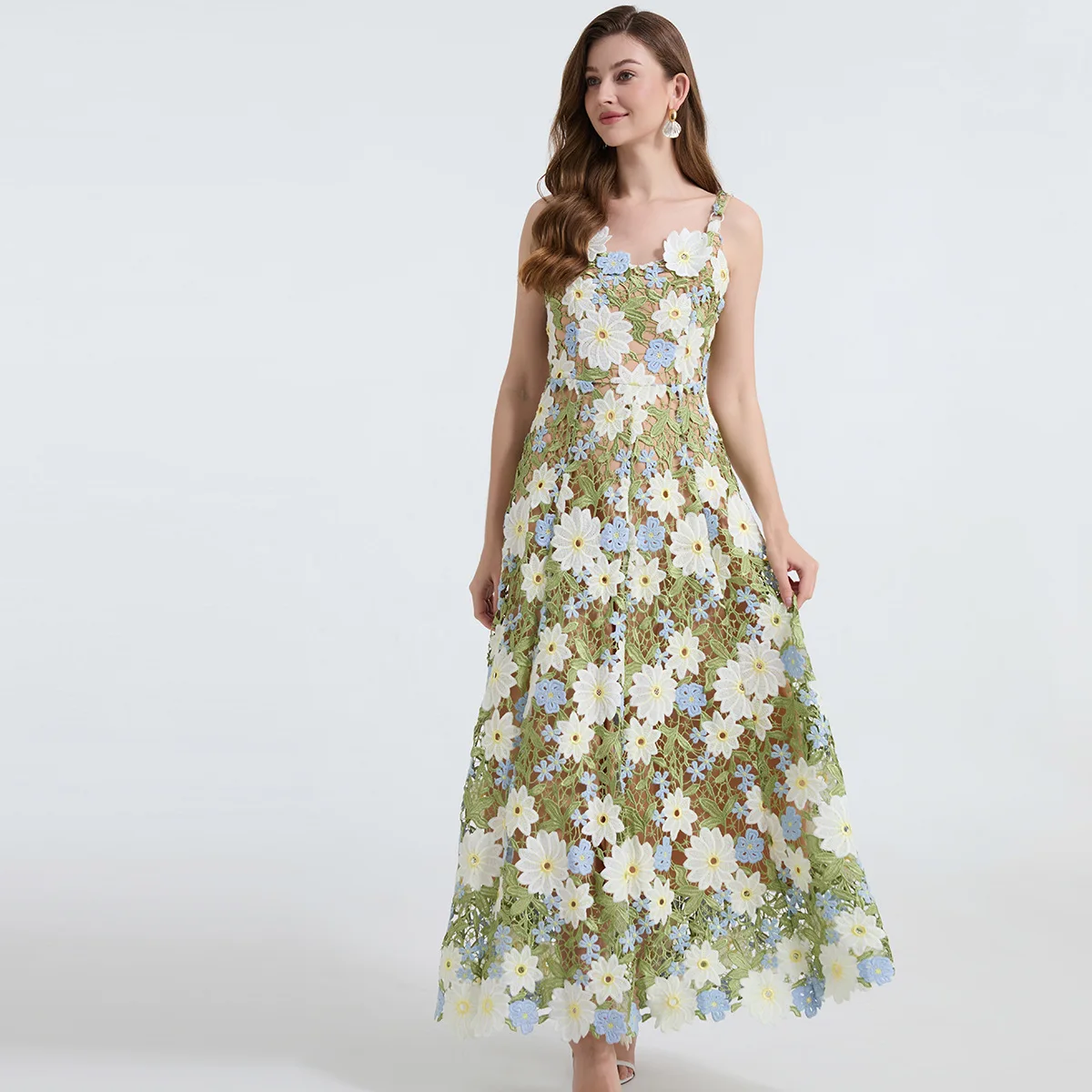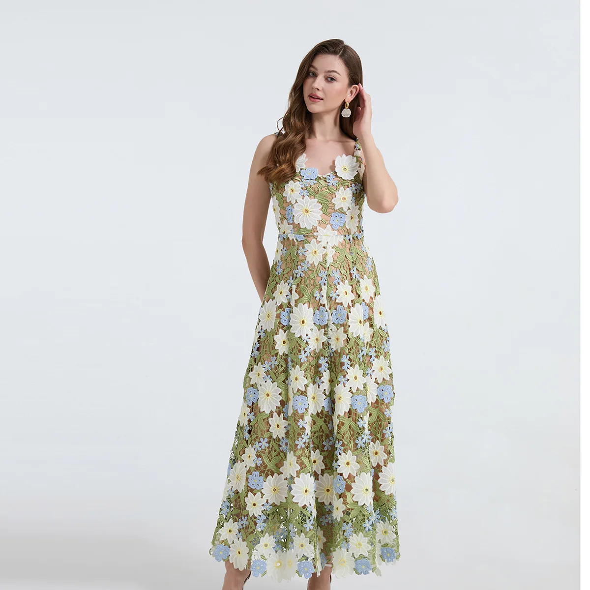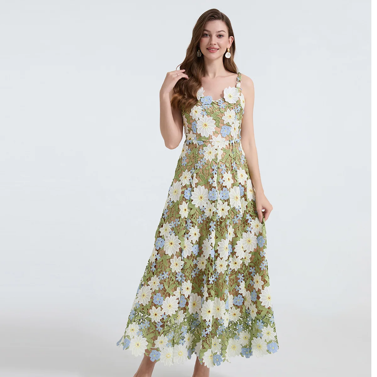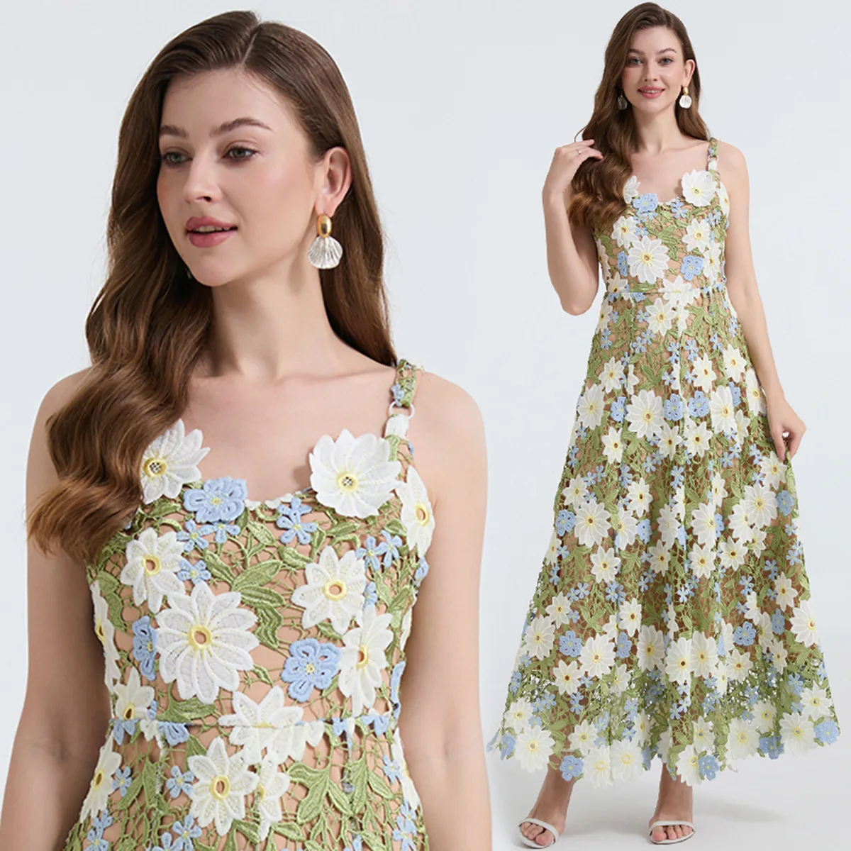 AE20260502 Summer Floral Natural Floor-Length A-Line Lace Digital Printing Embroidered Sexy Hollow-Out Large Swing Smart Casual