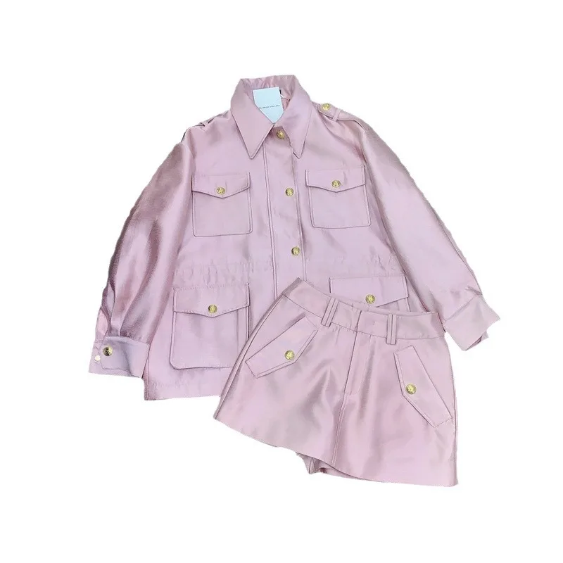 ANNASP Eco-friendly Breathable Women's Autumn Pink Suit Set Blazer Set 100% Polyester Silk-like